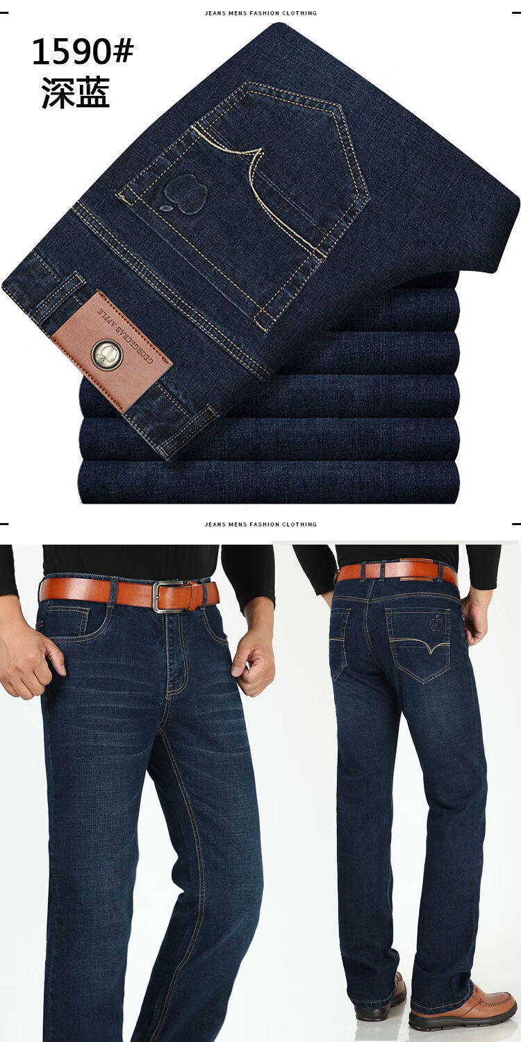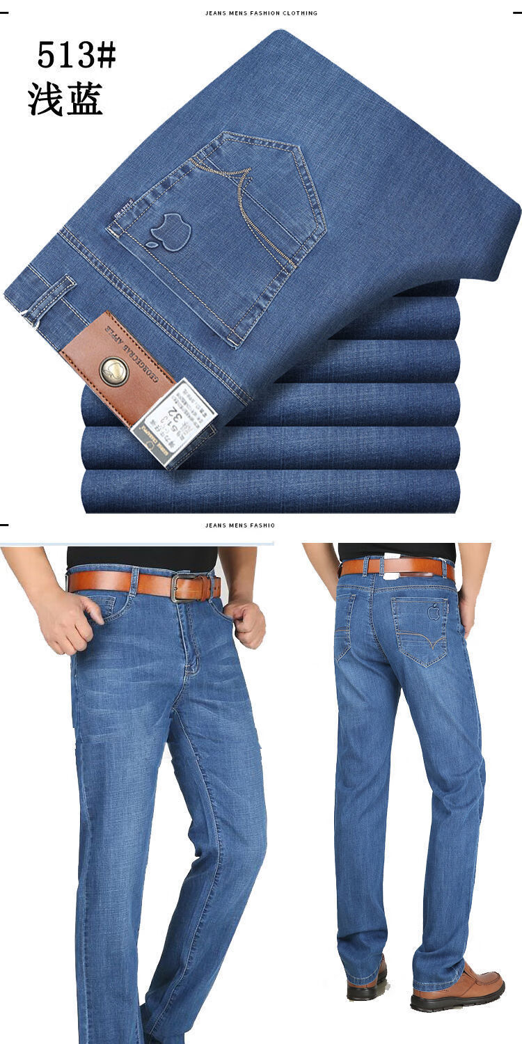 AEMAPE American Apple Automne et Hiver Jeans Épais Stretch Ample Droit Taille Haute Pantalon Long Décontracté pour Homme Printemps et Automne 5155 Bleu Clair Stretch (Boucle Antivol) 36 Taille 2'9 Taille