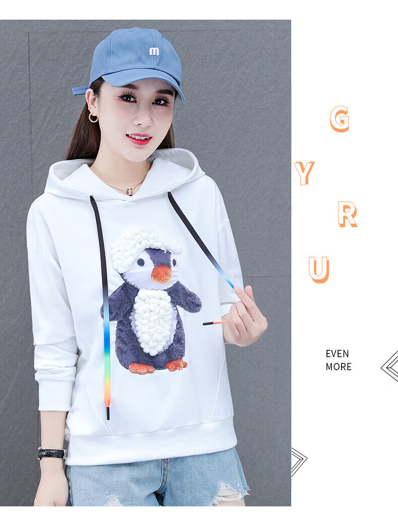 啄木鸟(TUCANO)春季薄款卡通卫衣女士连帽春秋装2025年新款宽松休闲女装外套上衣 9276白色 M
