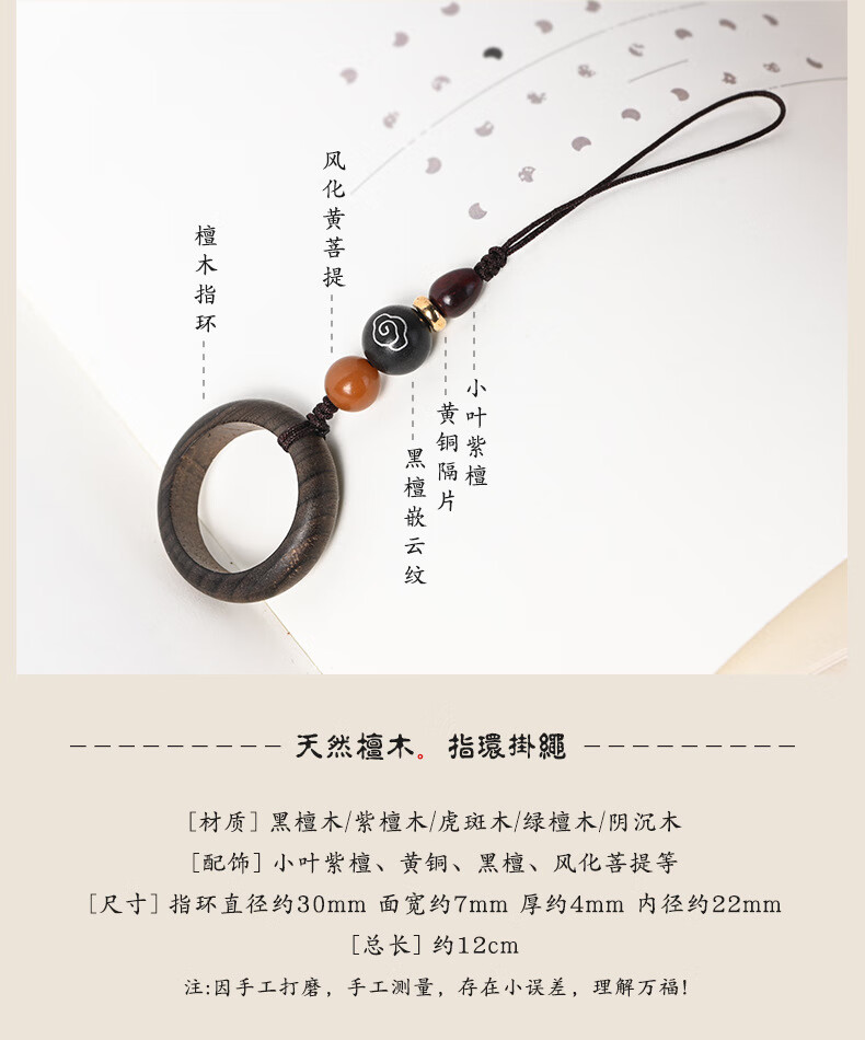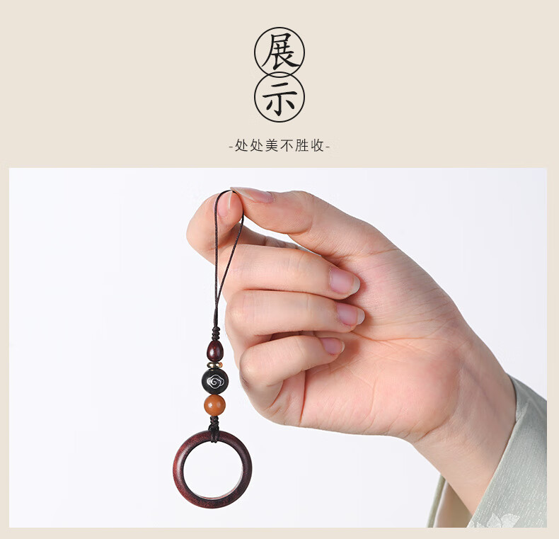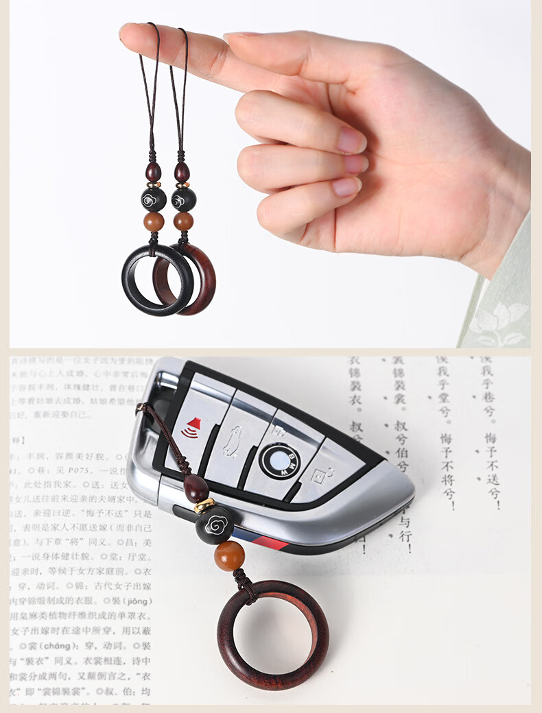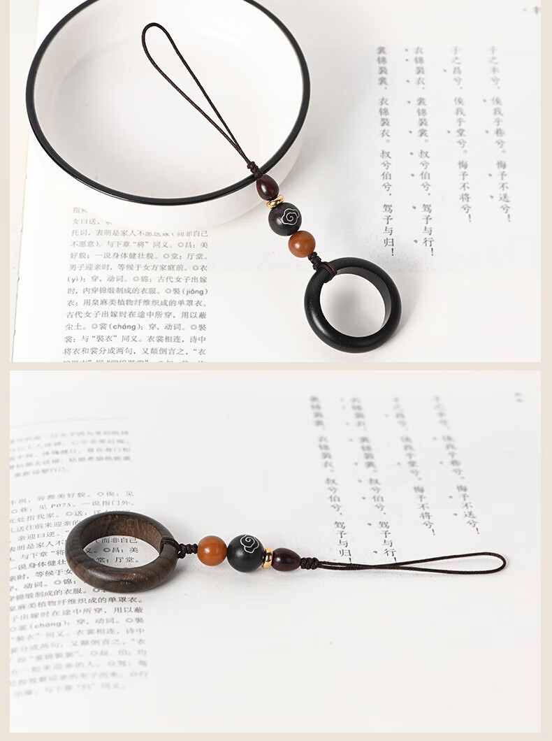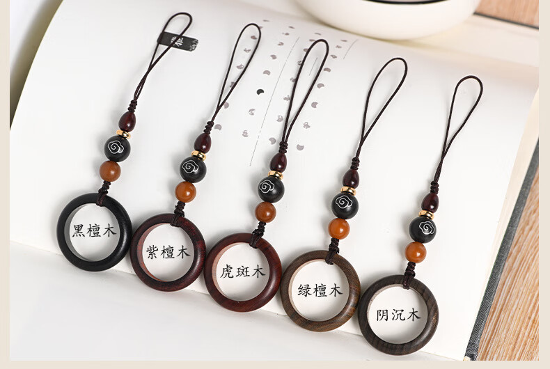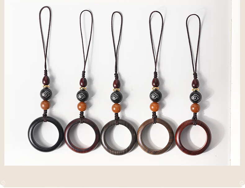 Wuzangtang | Porte-clés pendentif de téléphone portable simple de style ancien, court, en cuivre pur, boucle d'anneau en bois de santal, lanière anti-perte, anneau en bois de rose