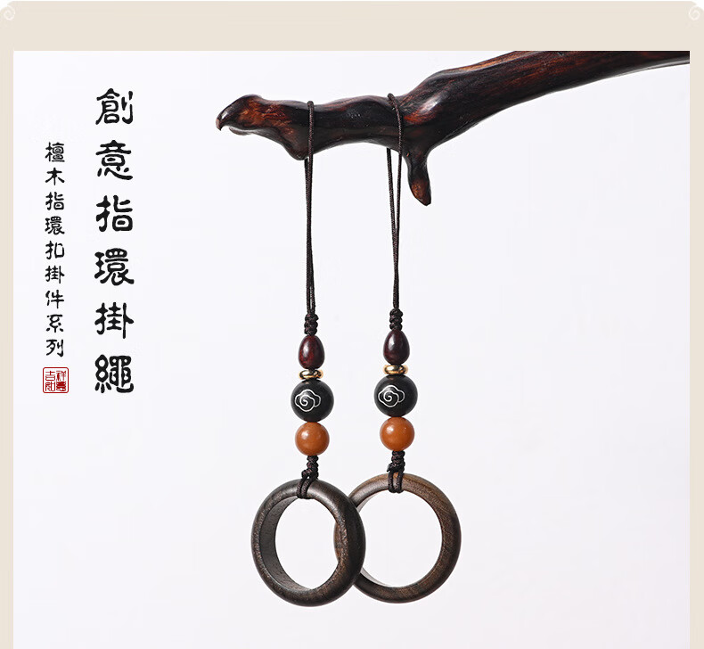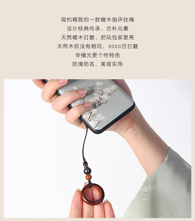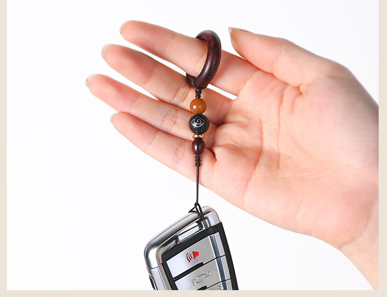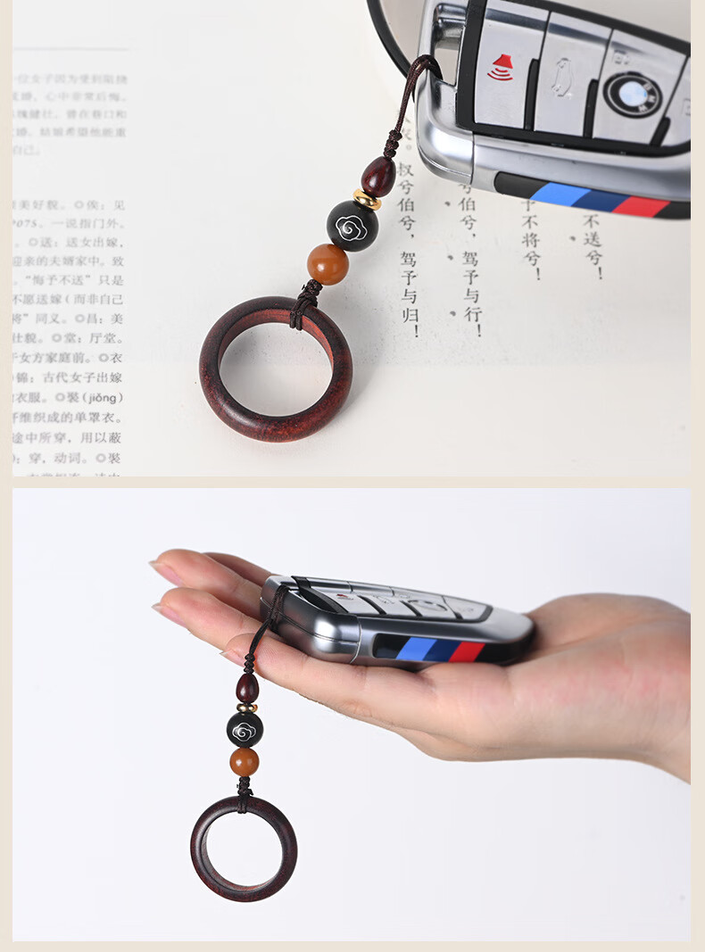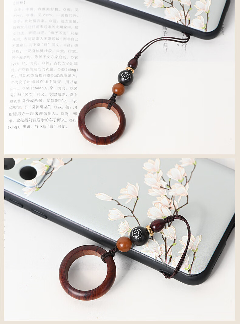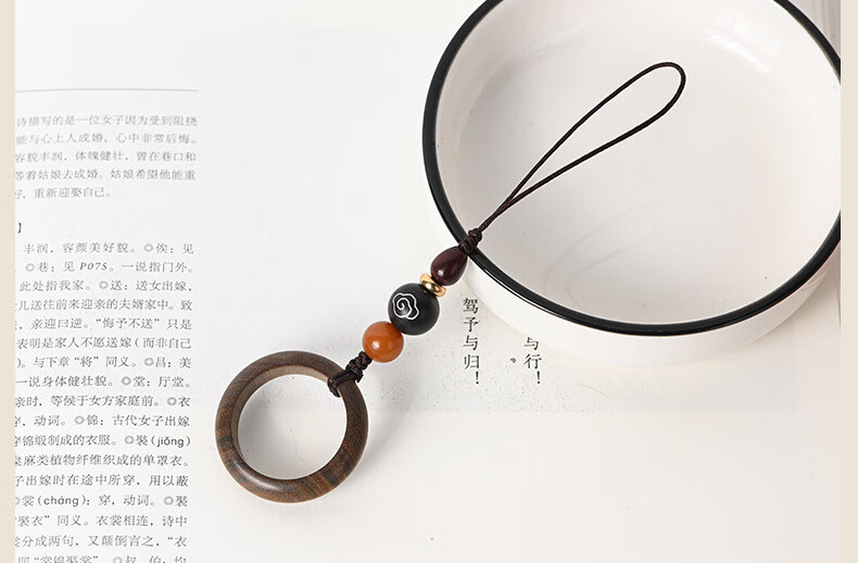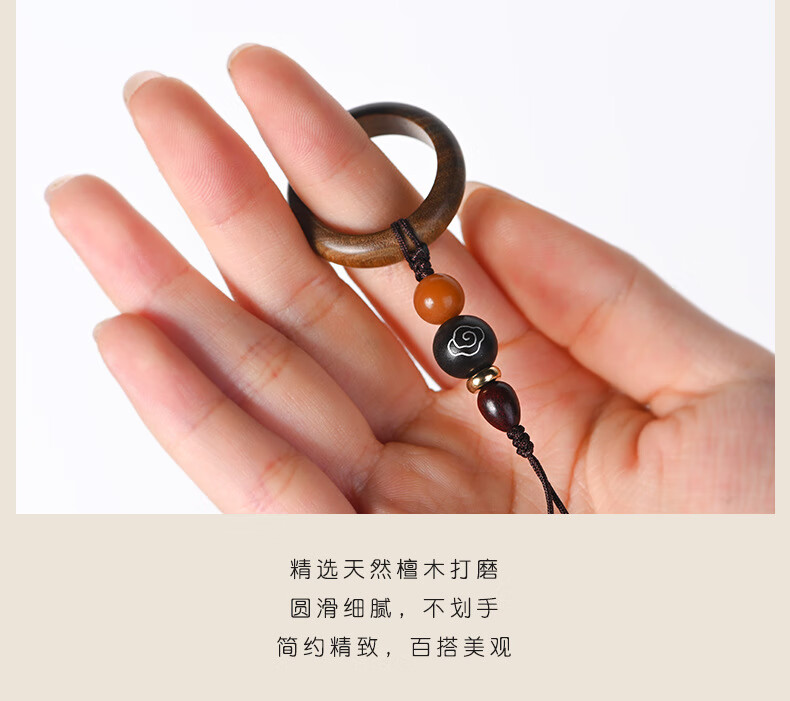 Wuzangtang | Porte-clés pendentif de téléphone portable simple de style ancien, court, en cuivre pur, boucle d'anneau en bois de santal, lanière anti-perte, anneau en bois de rose