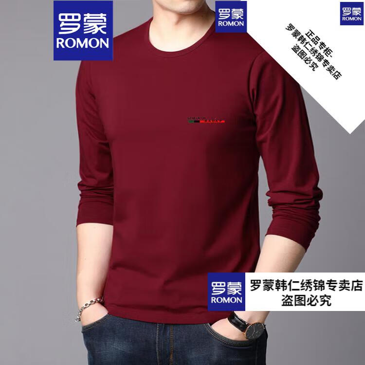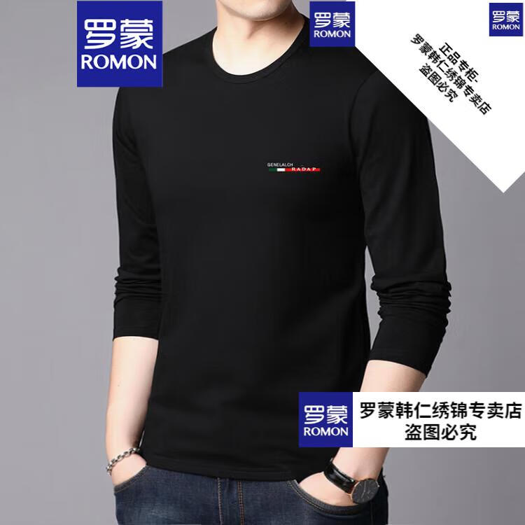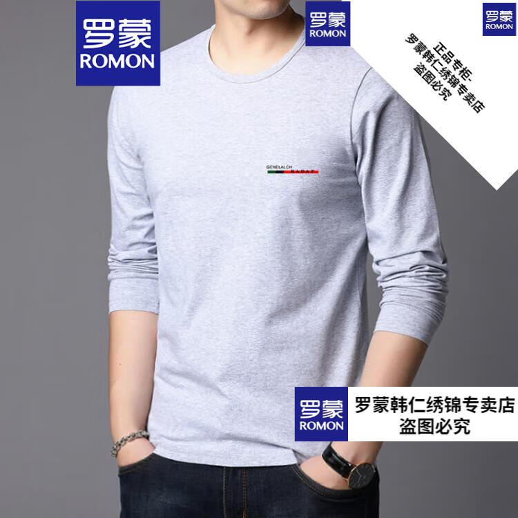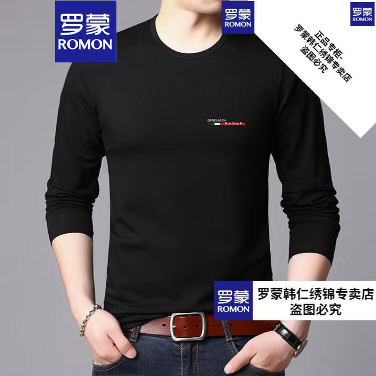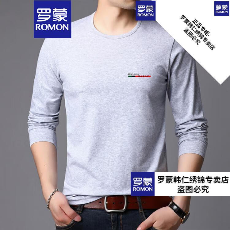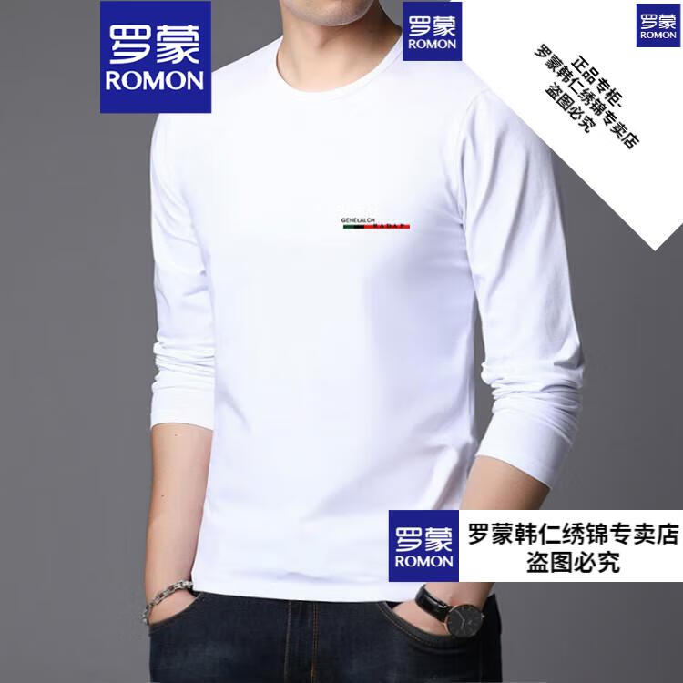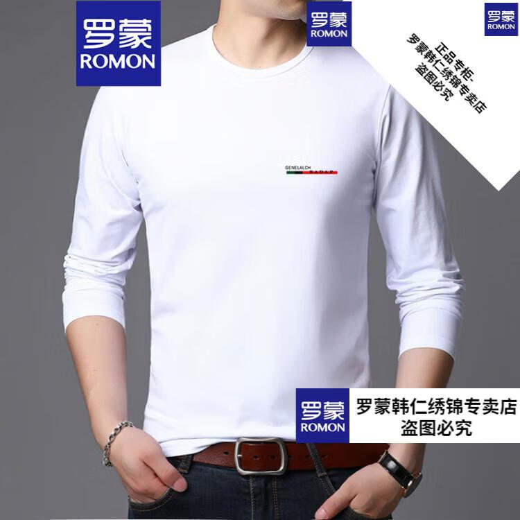 ROMON pure cotton men's long-sleeved T-shirt bottoming shirt spring and autumn thin section young and middle-aged black men's autumn top white item number M723 L suitable for 120-135 Jin Jin equals 0.5 kg.