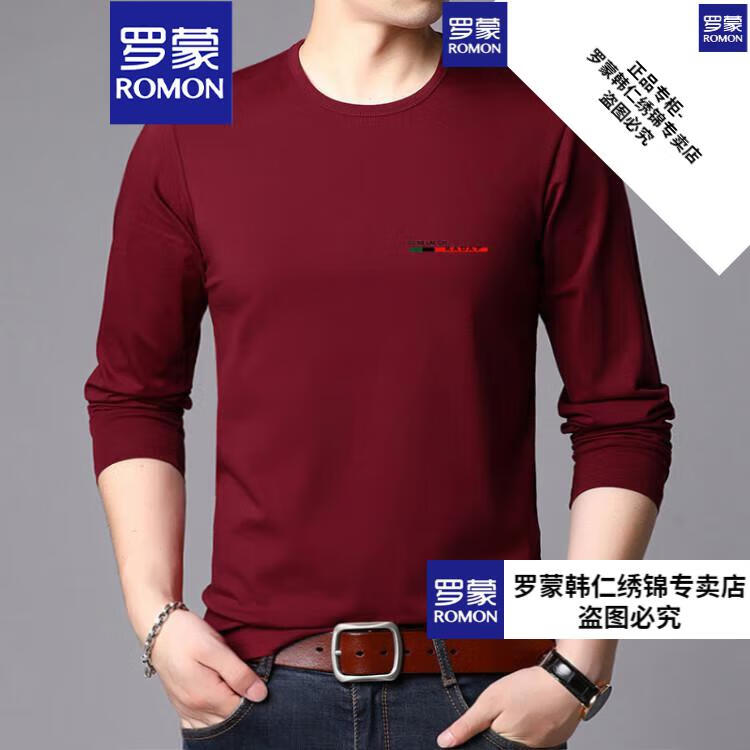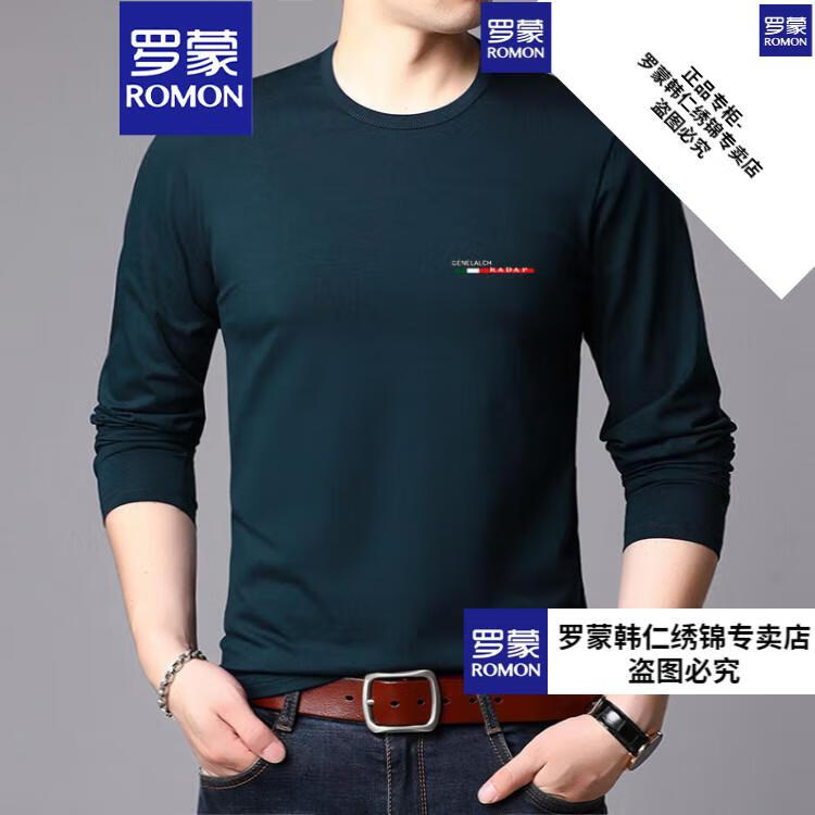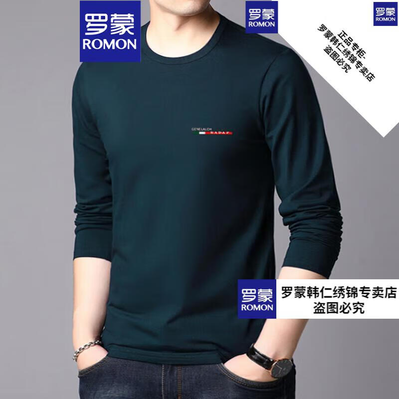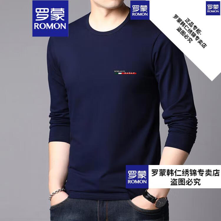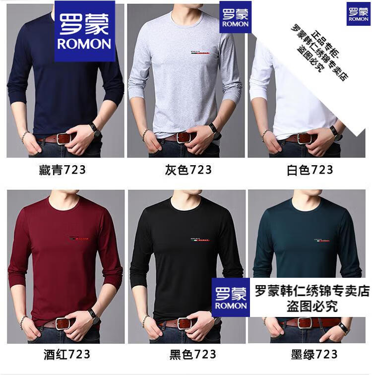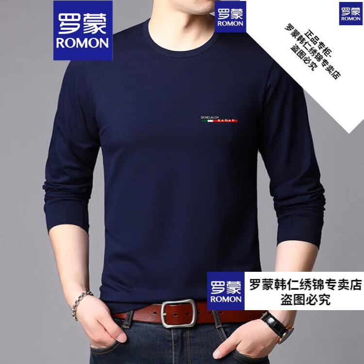 ROMON pure cotton men's long-sleeved T-shirt bottoming shirt spring and autumn thin section young and middle-aged black men's autumn top white item number M723 L suitable for 120-135 Jin Jin equals 0.5 kg.