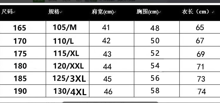 China (cm) 160-165/84-86 165-170 / 88-90 167-172 / 92-96 168-173 / 98-102 170-176 / 106-110