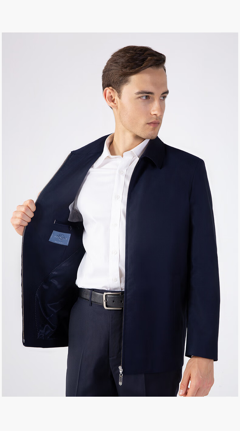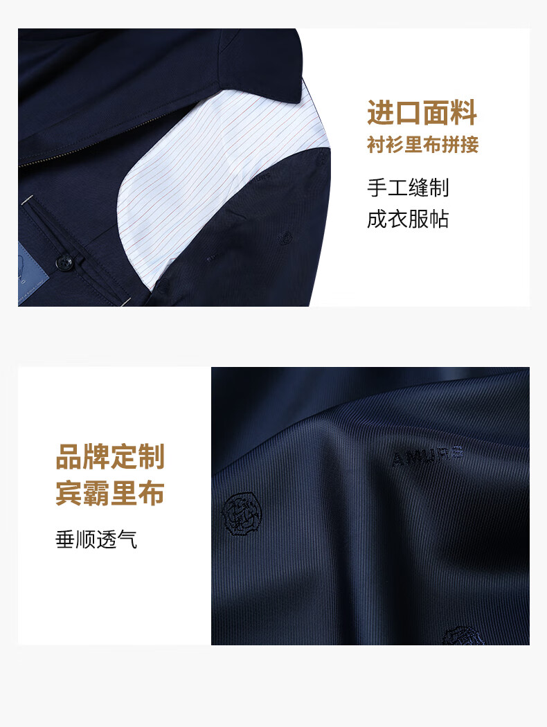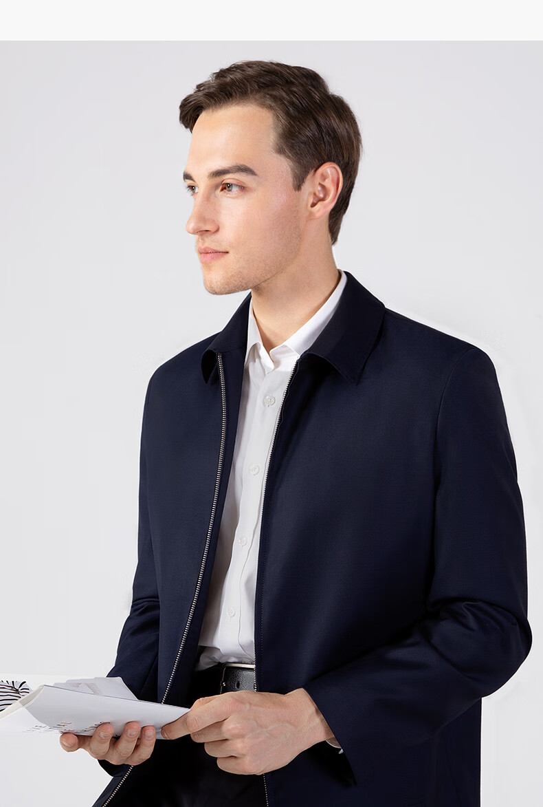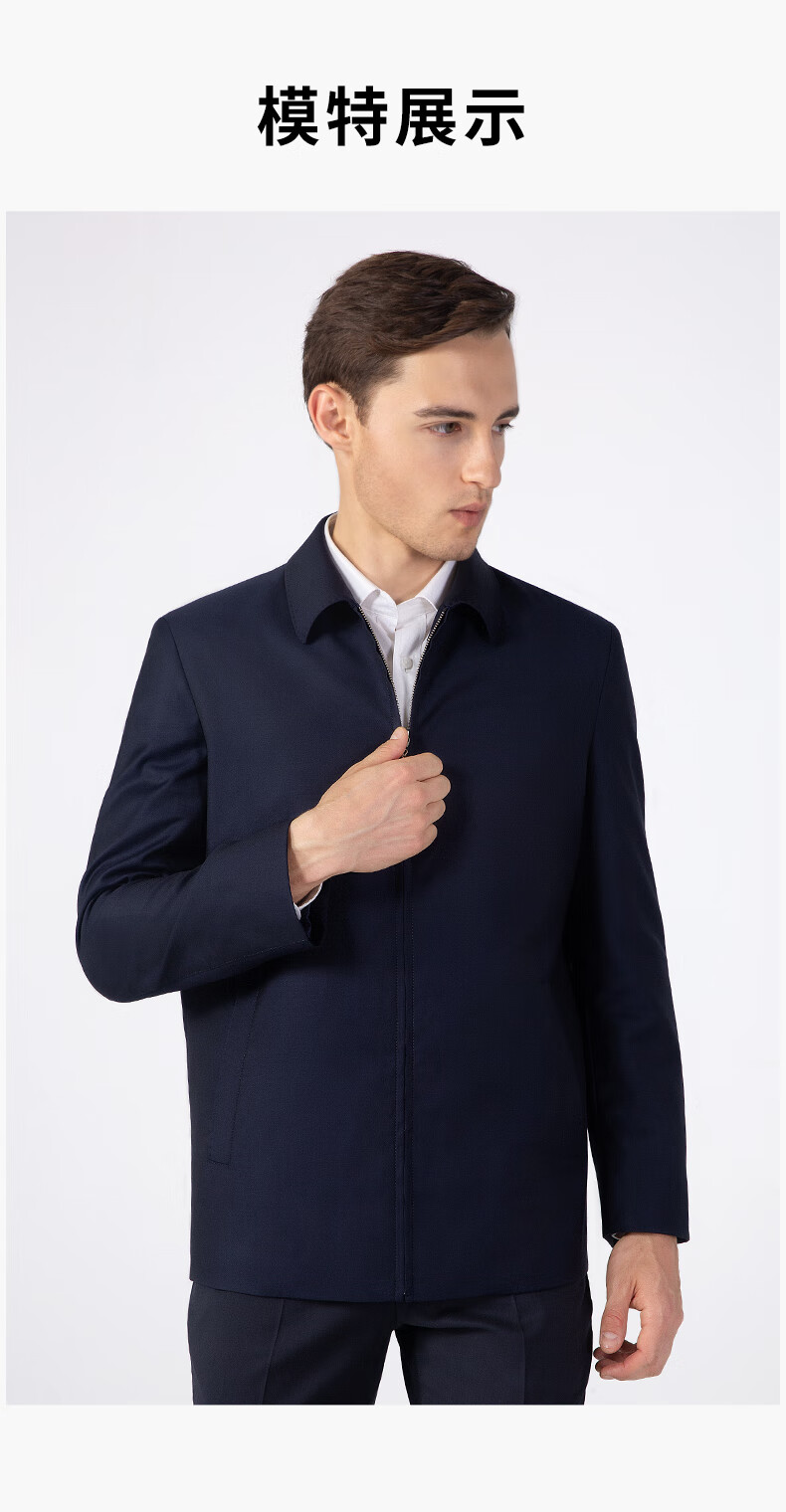 AMURS爱缪斯进口纯羊毛夹克高端男士商务外套秋季大码翻领干部服装 藏青 S(125~135斤穿)