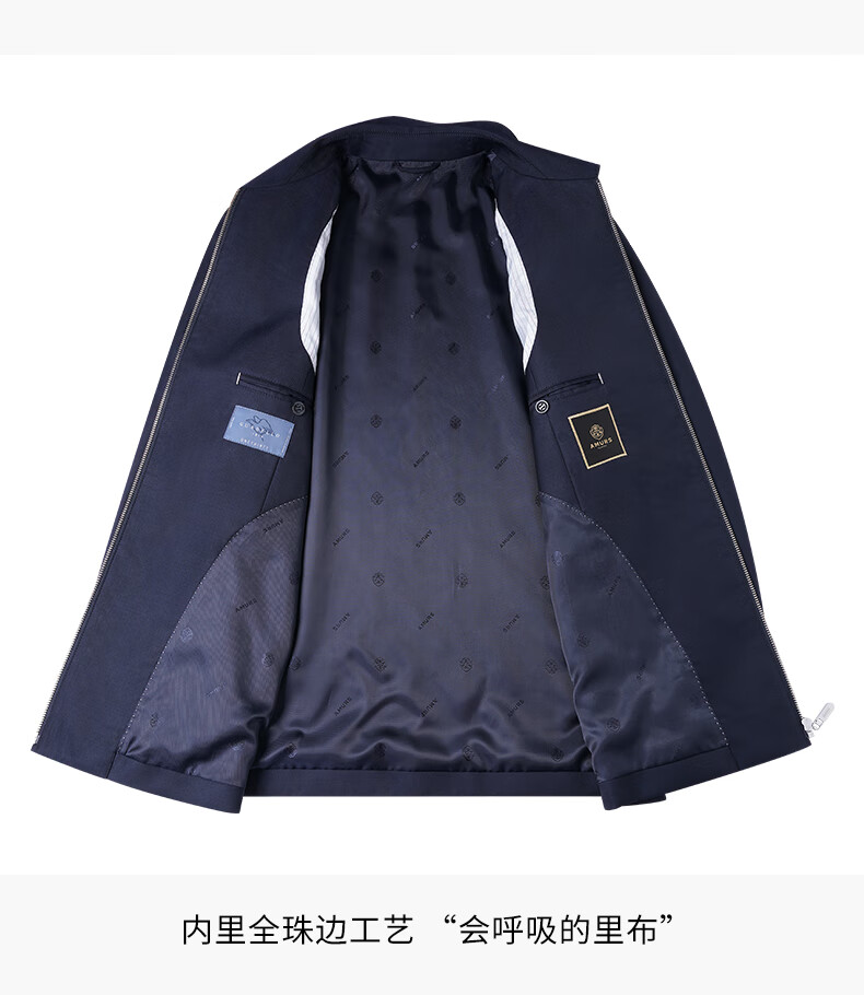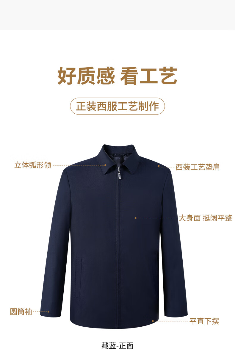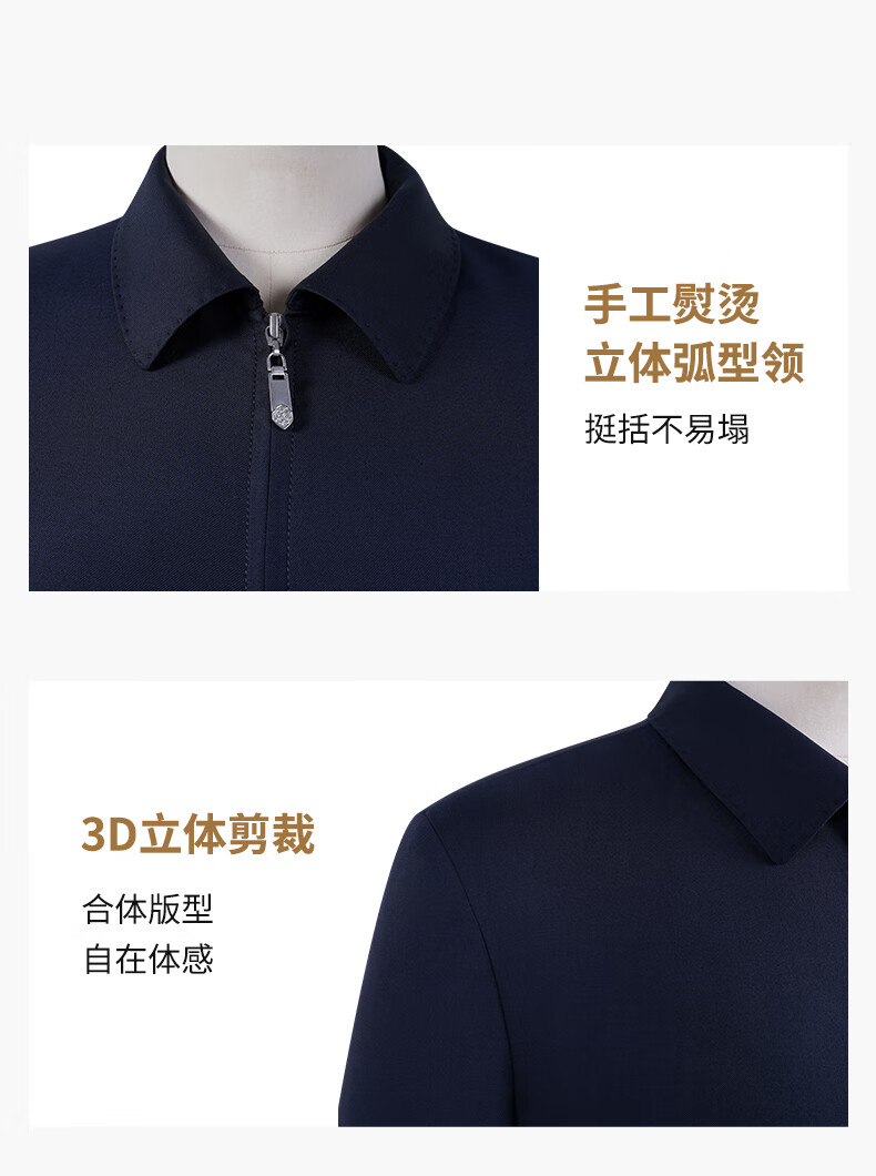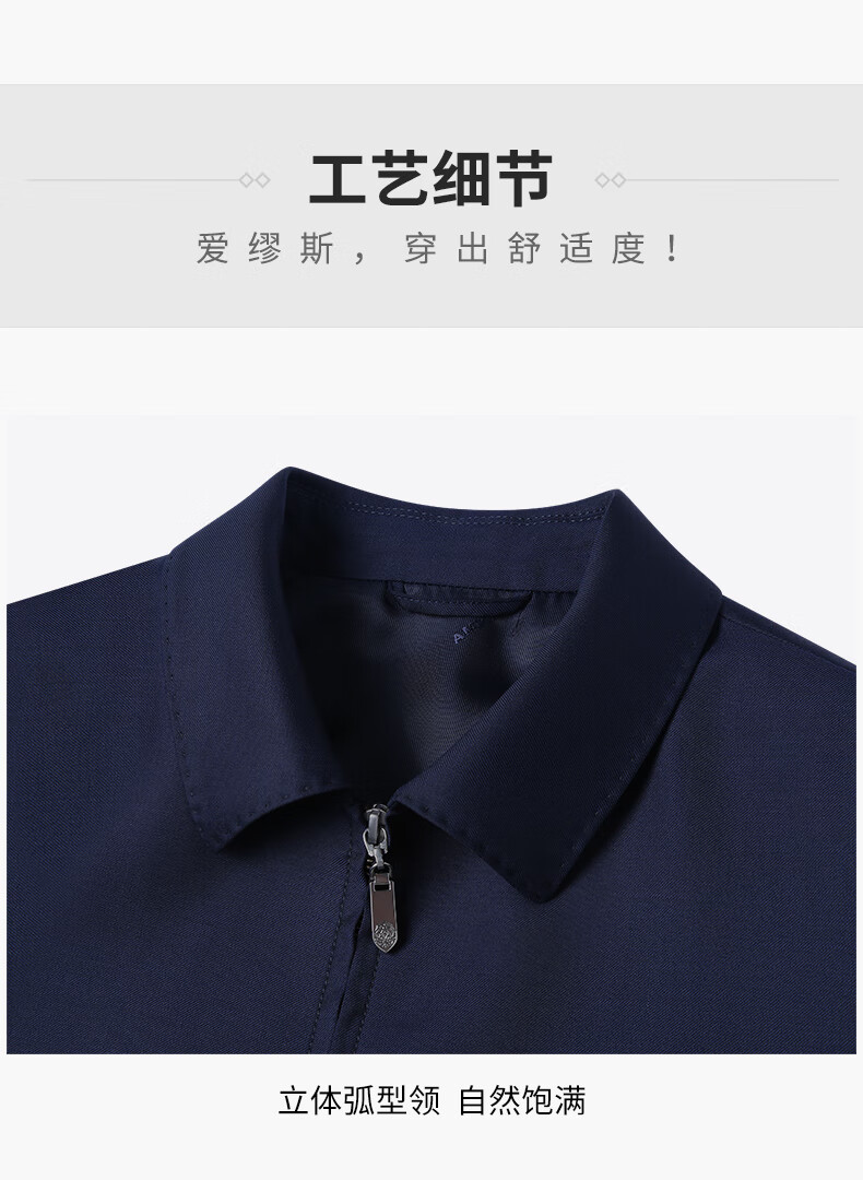 AMURS爱缪斯进口纯羊毛夹克高端男士商务外套秋季大码翻领干部服装 藏青 S(125~135斤穿)