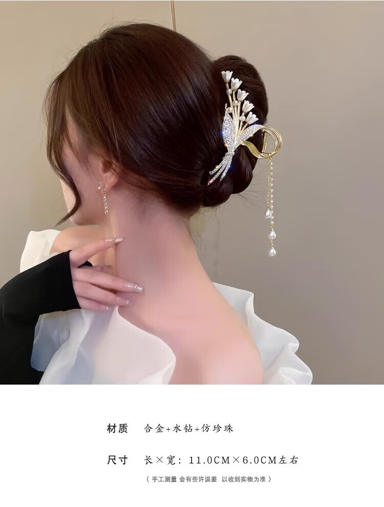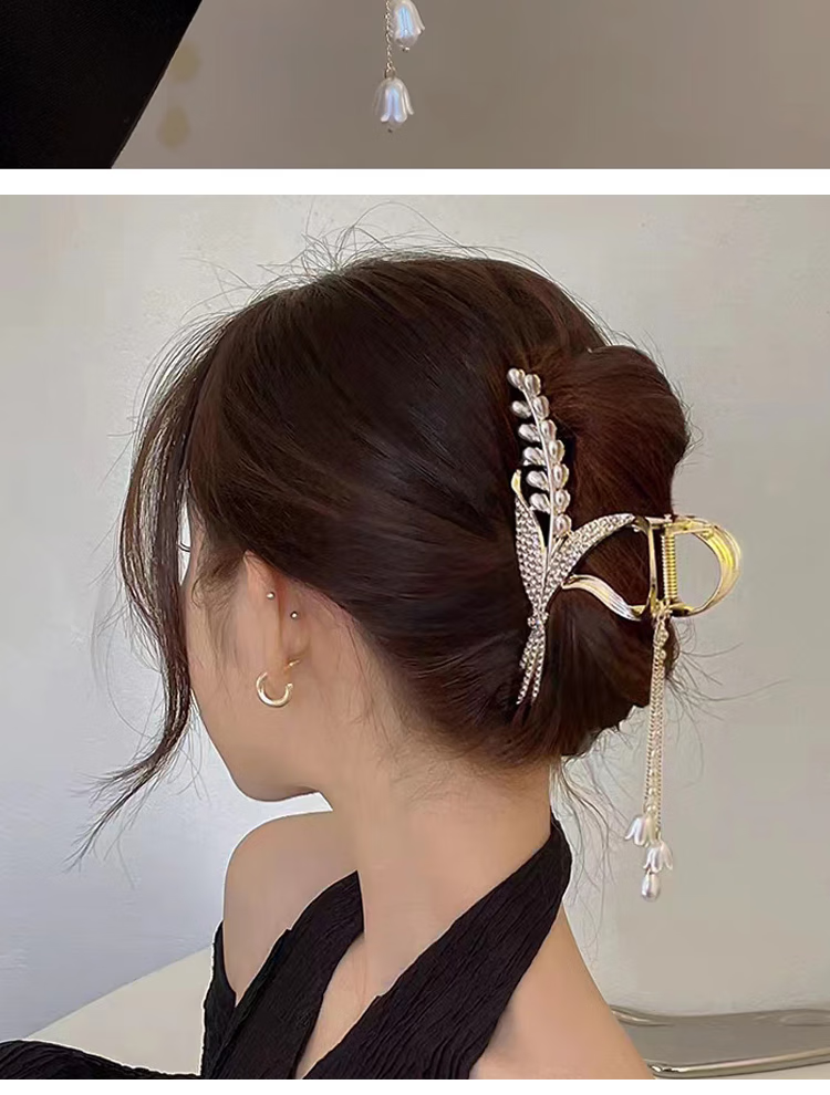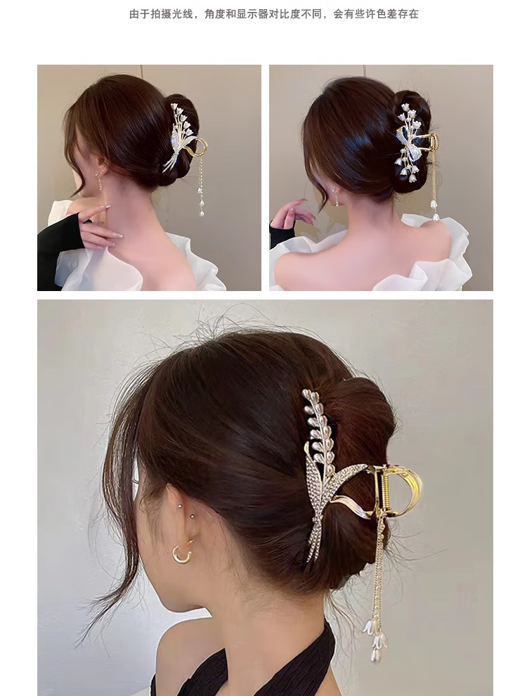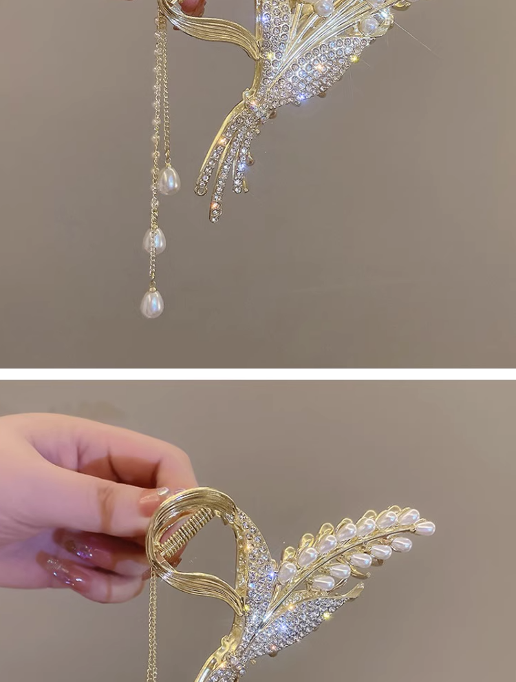 古耐高端麦穗发夹后脑勺2025新款发卡头饰女士鲨鱼夹大号盘发抓夹子 麦穗流苏发夹三件套