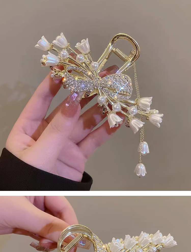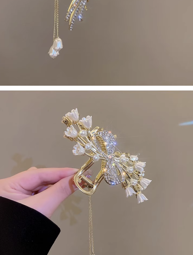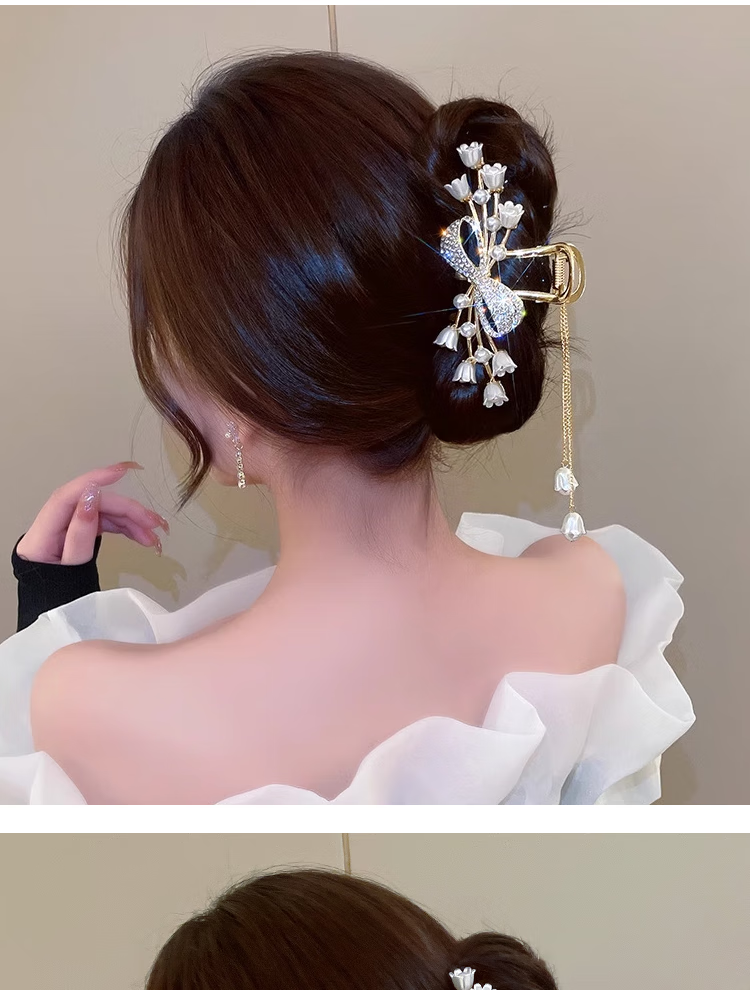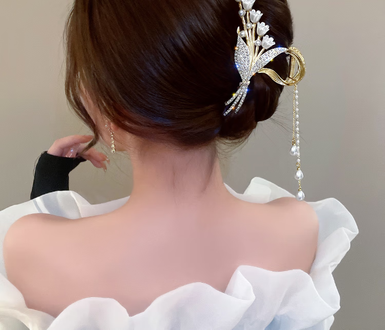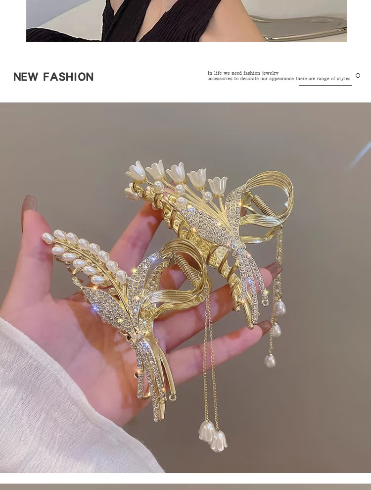 古耐高端麦穗发夹后脑勺2025新款发卡头饰女士鲨鱼夹大号盘发抓夹子 麦穗流苏发夹三件套