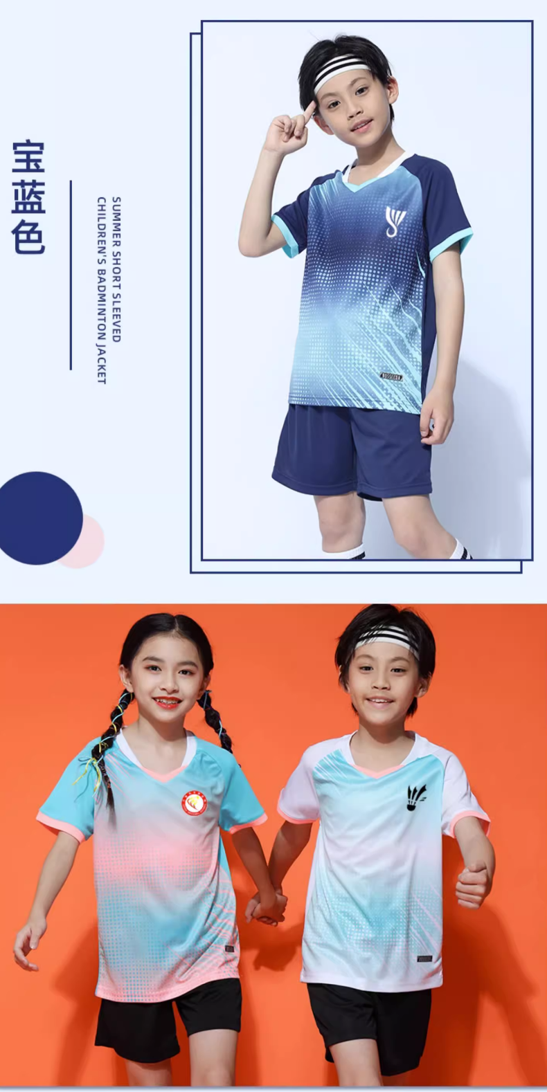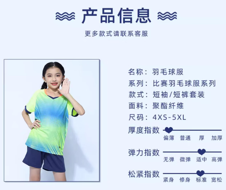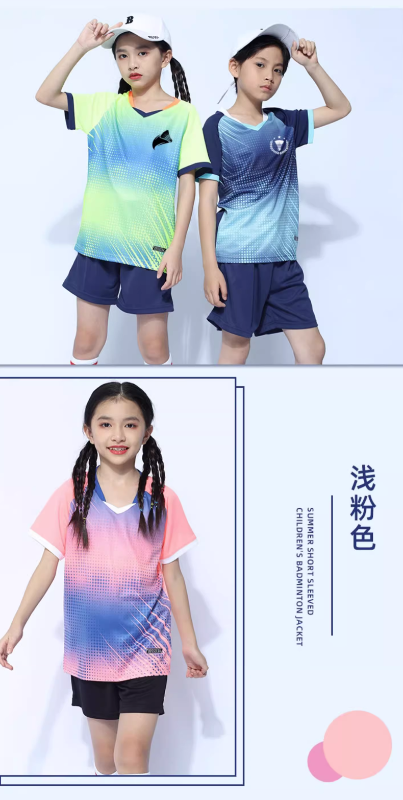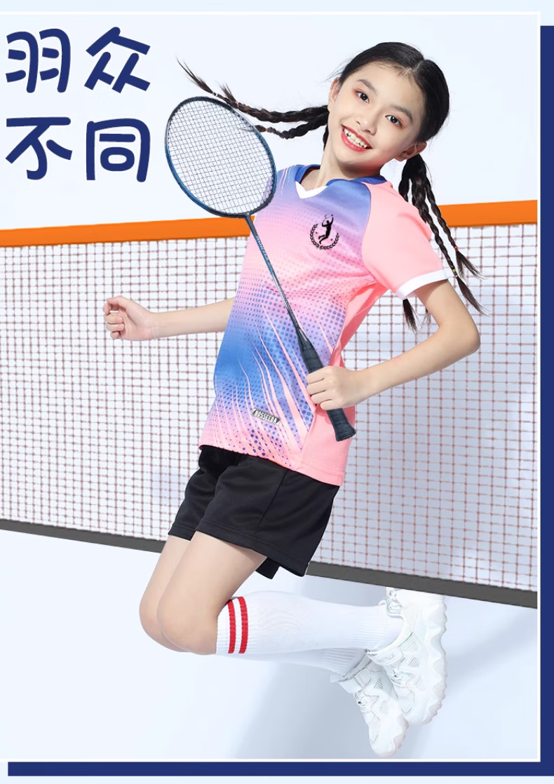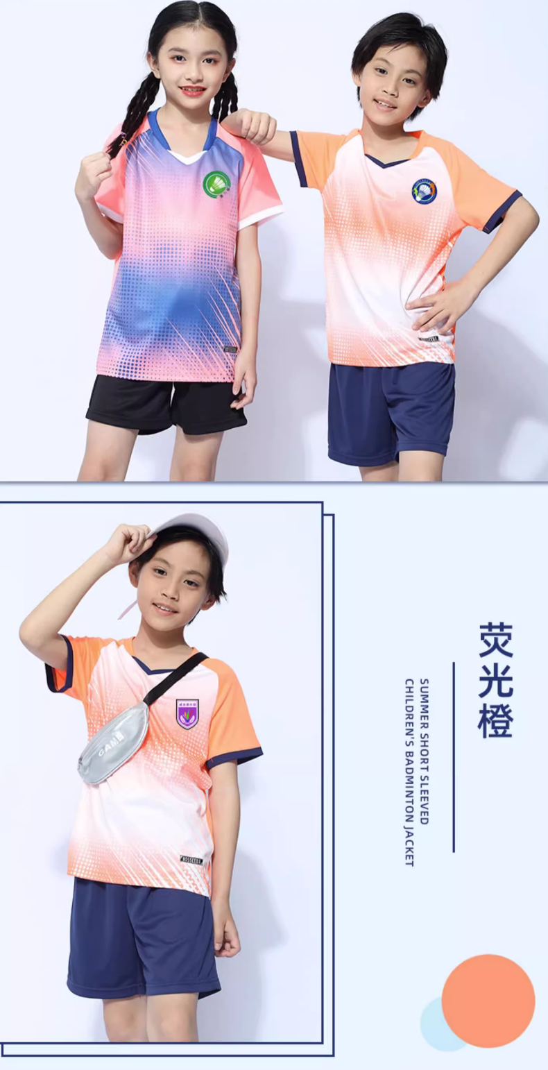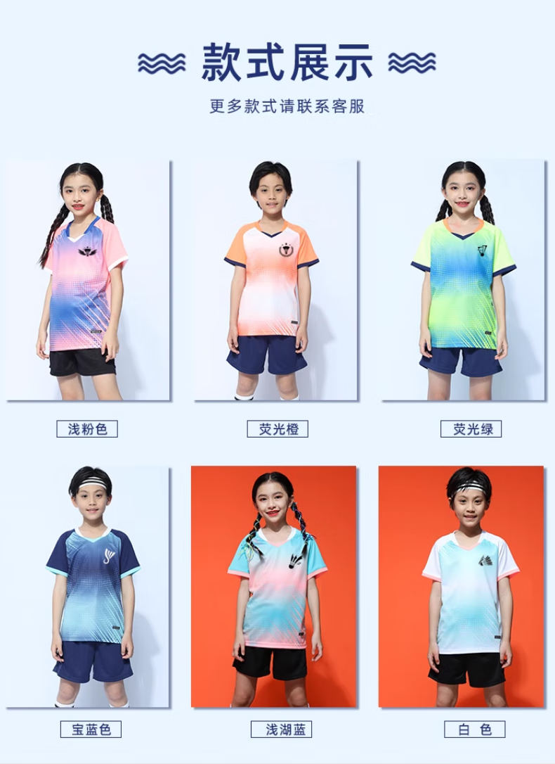 玉宇帆儿童羽毛球服套装男童女童网球乒乓球衣跳绳田径运动训练队服定制 5021宝蓝色套装(男女同款) XXS 身高130-140cm 50-60斤