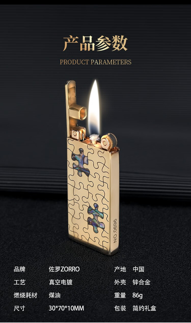 佐罗佐罗zorro煤油打火机男复古黄铜砂轮送男友七夕礼物超薄升降机753 拼图银色(送全套配件)