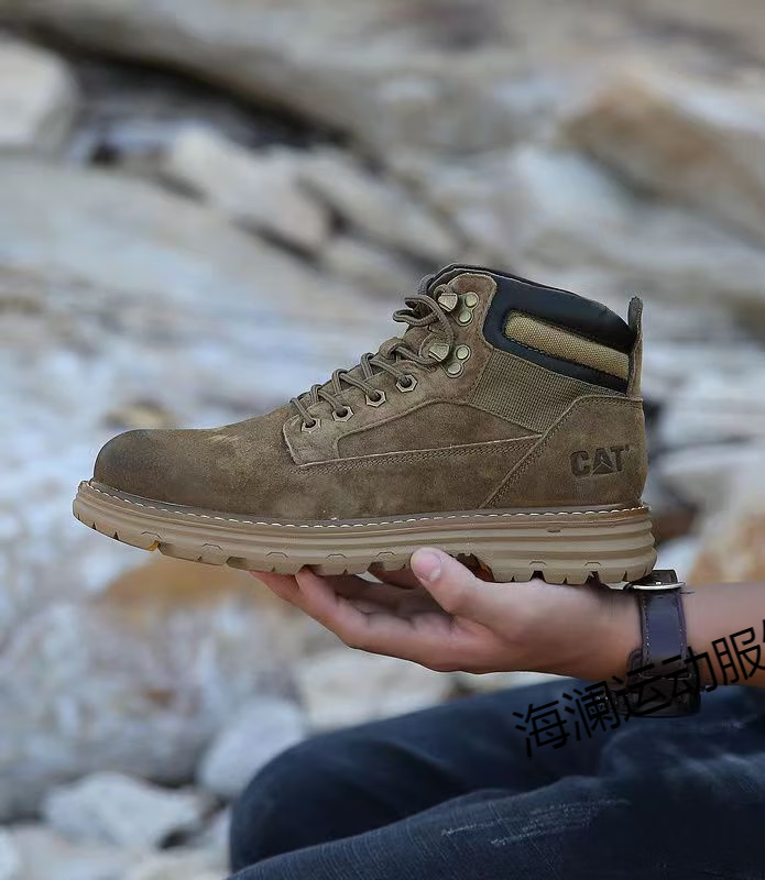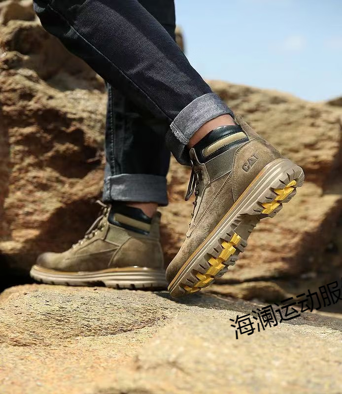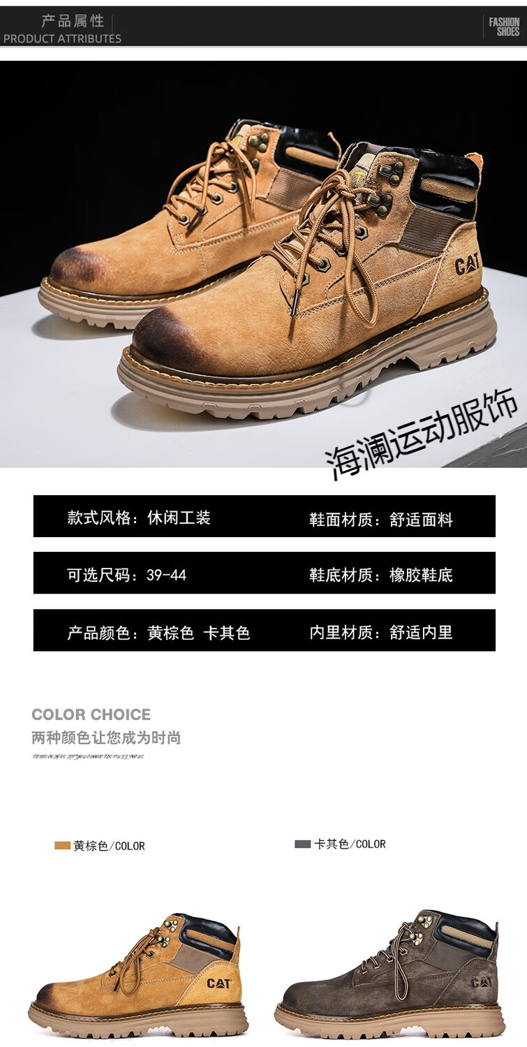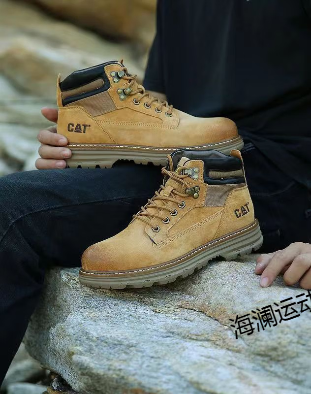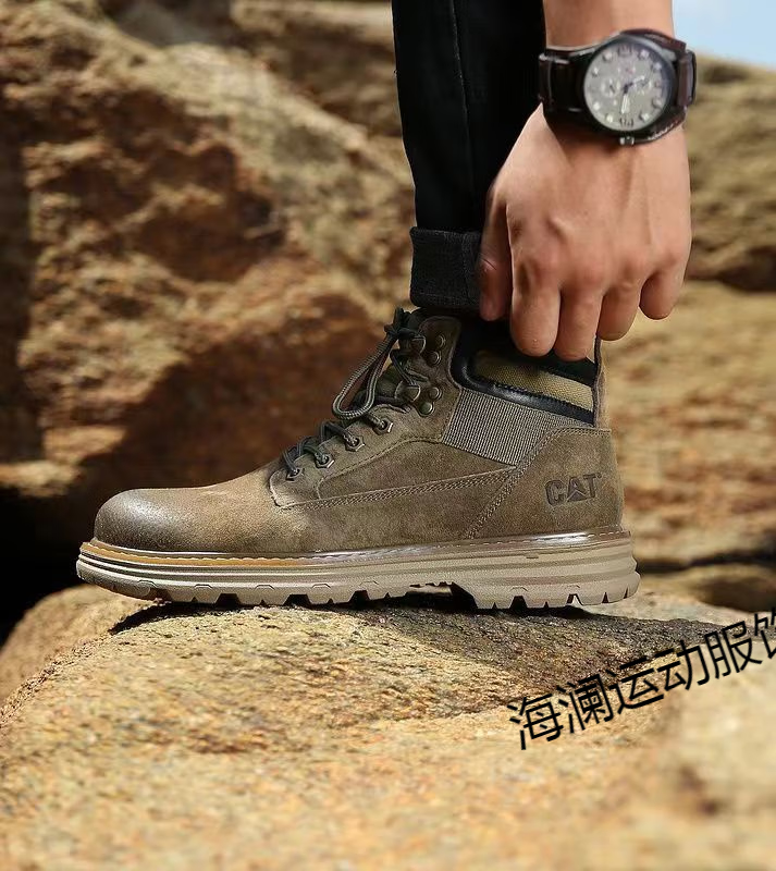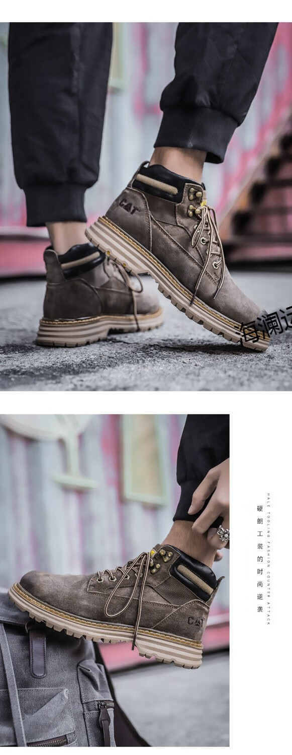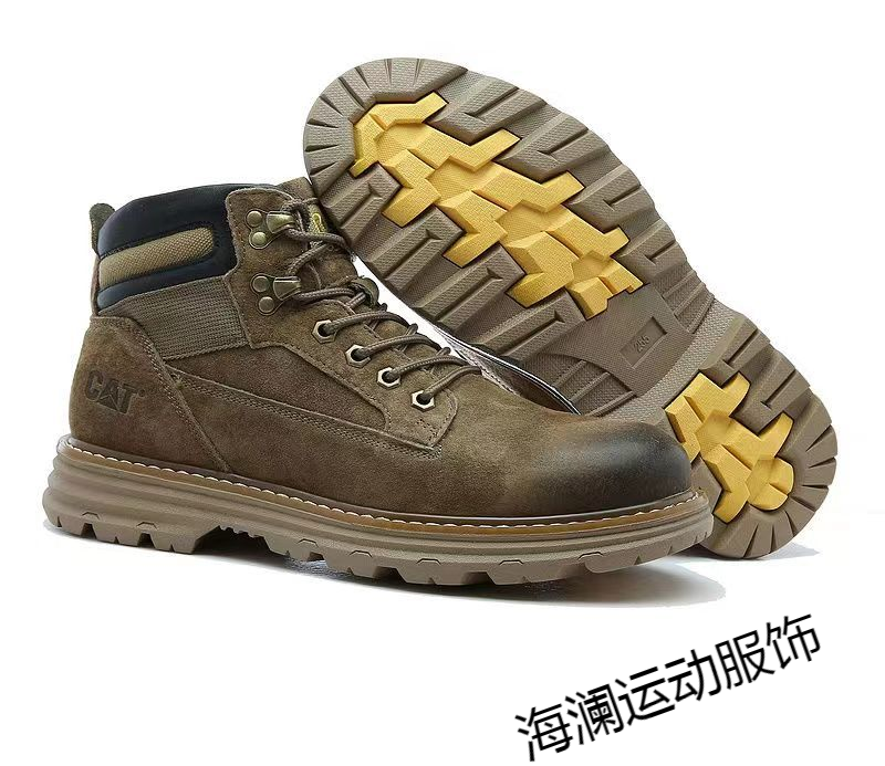 卡特cat男鞋中高帮马丁靴防滑耐磨户外登山鞋真皮复古英伦风工装靴 黄棕色 41