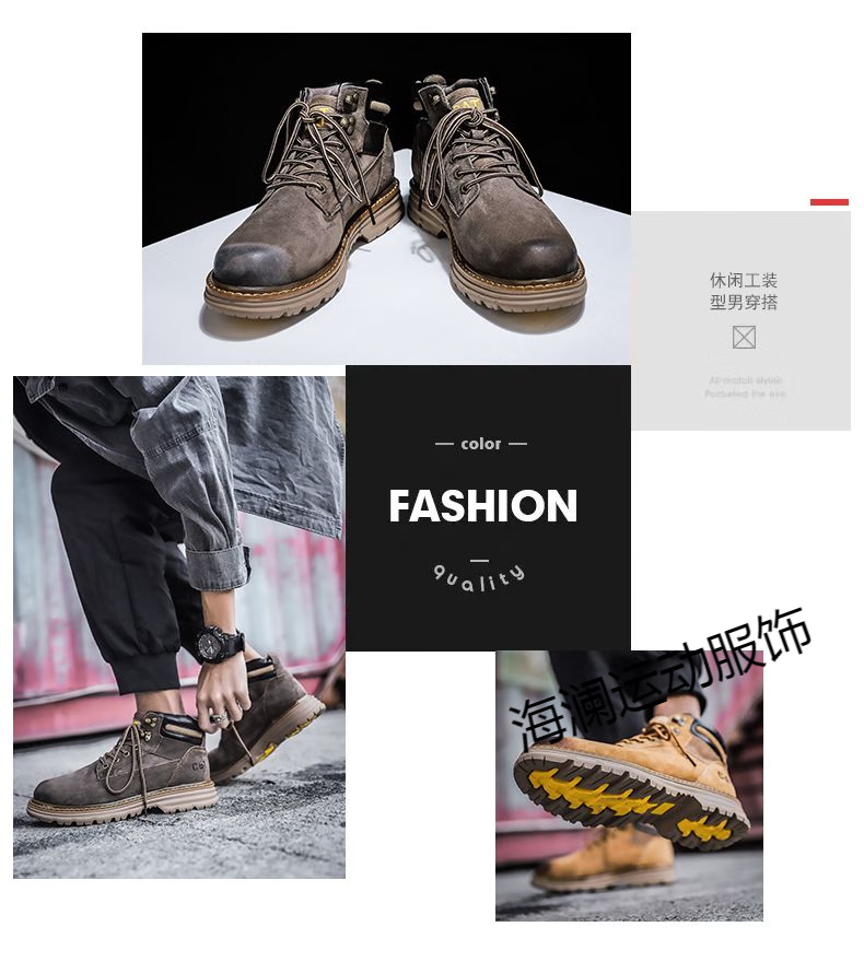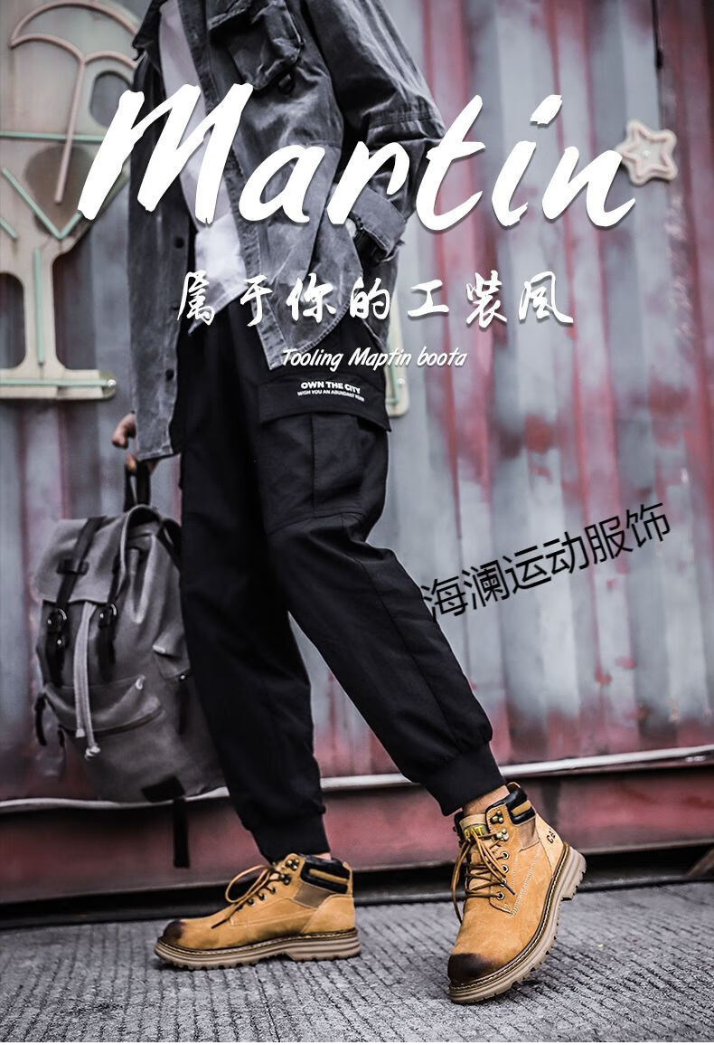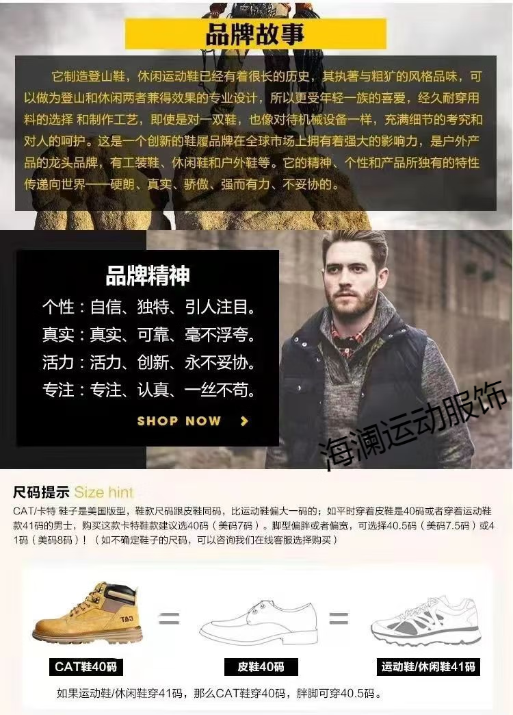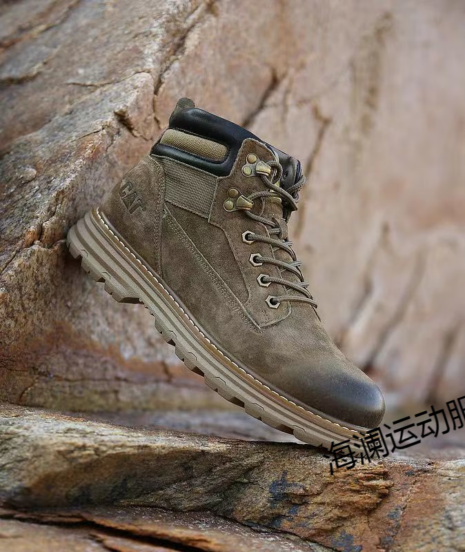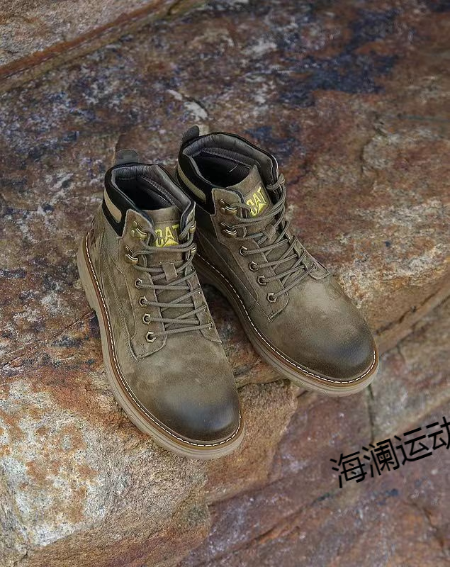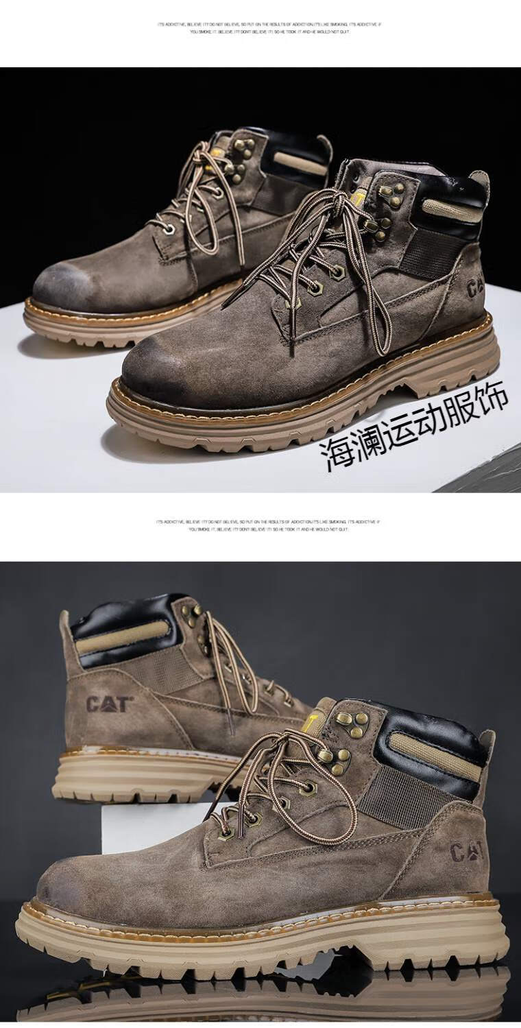 卡特cat男鞋中高帮马丁靴防滑耐磨户外登山鞋真皮复古英伦风工装靴 黄棕色 41