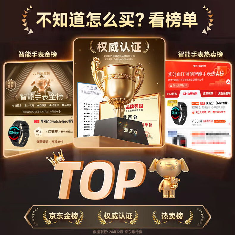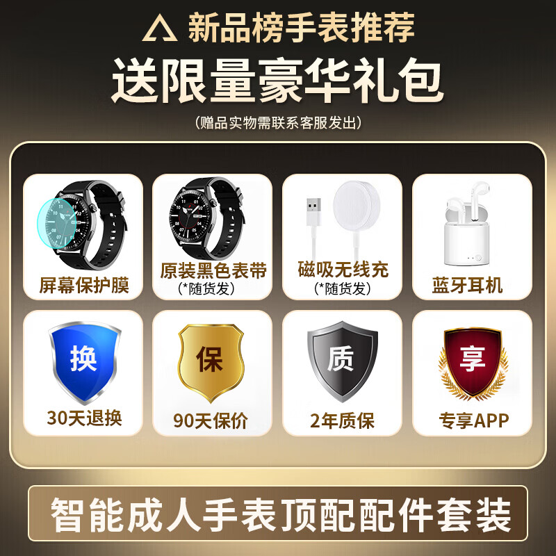 爱百分 【25新智能】华强北智能手表watch4pro进口品质长续航真心率血氧血压运动蓝牙通话学生成人男 高配版【蓝牙通话+真心率血压血氧+NFC+支付】 进口品质+双表带