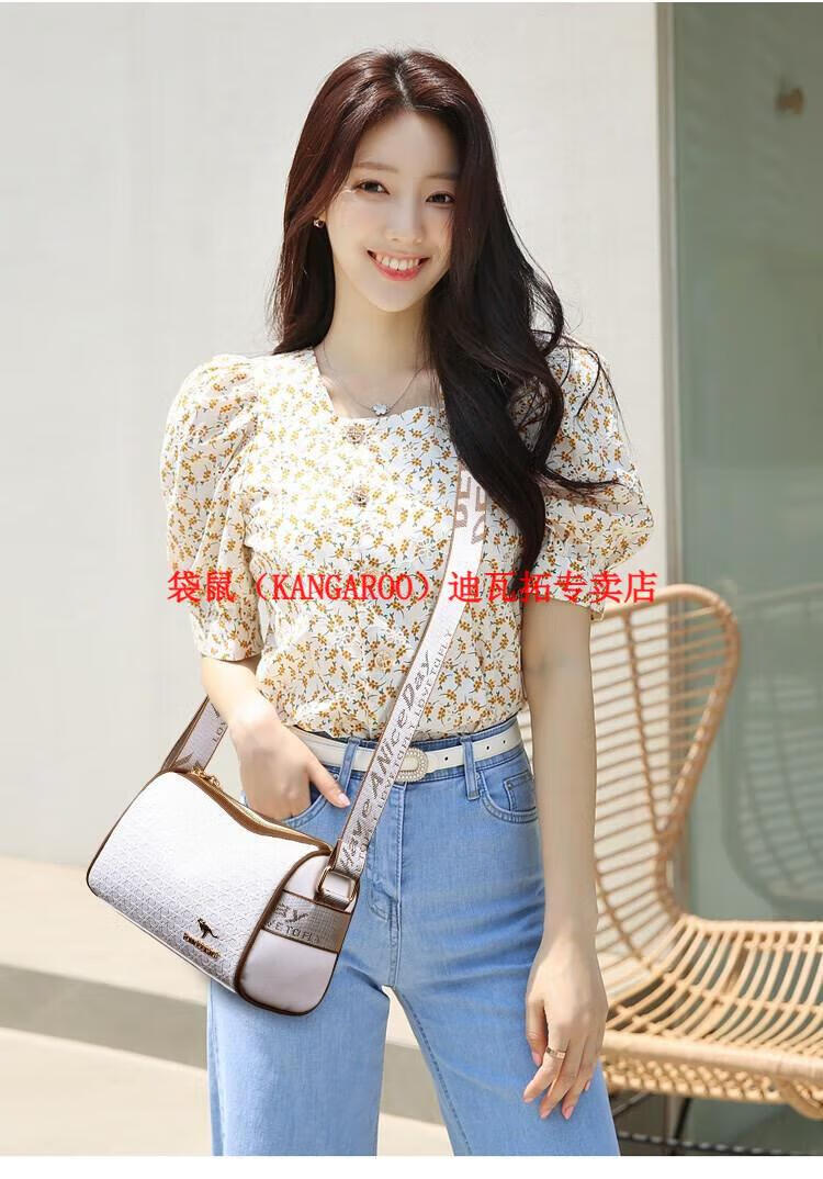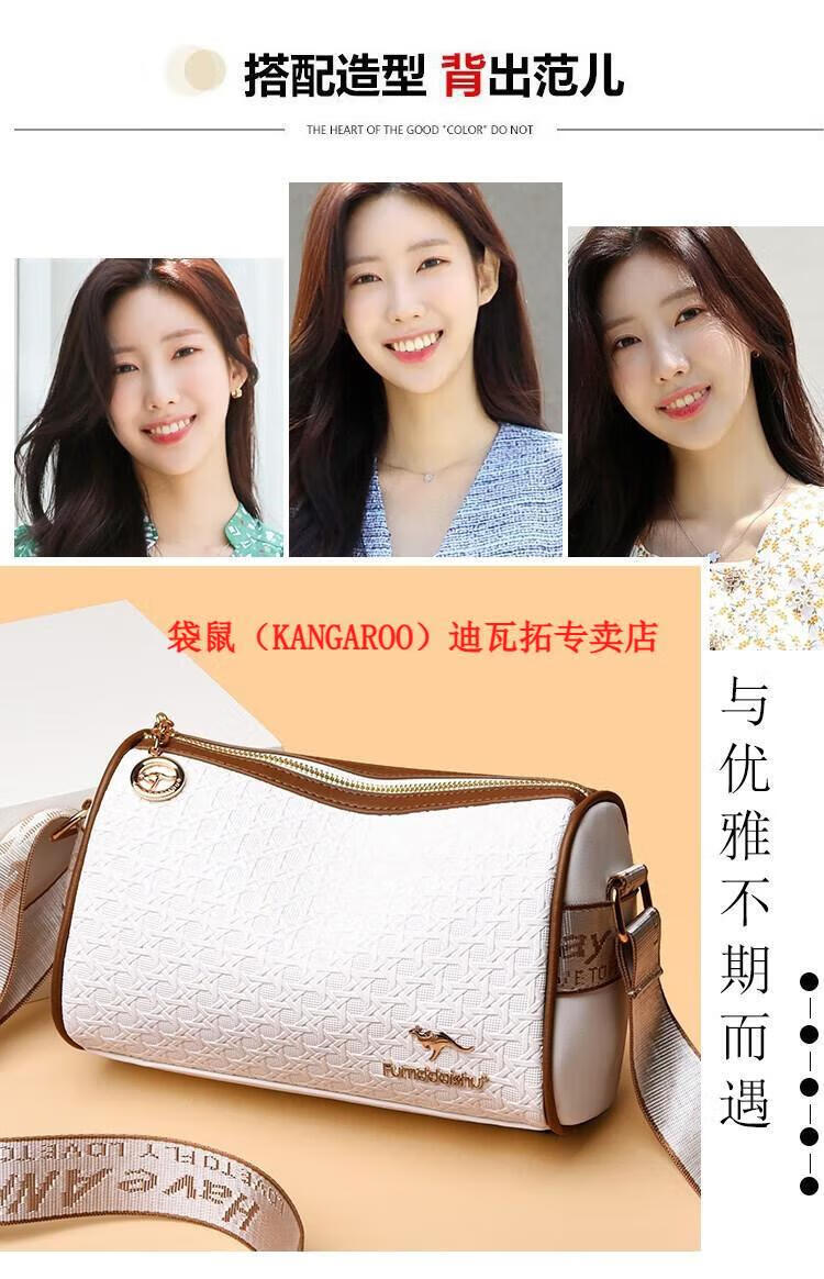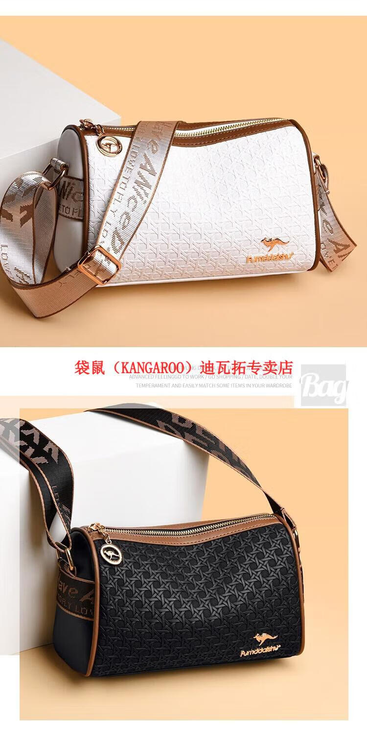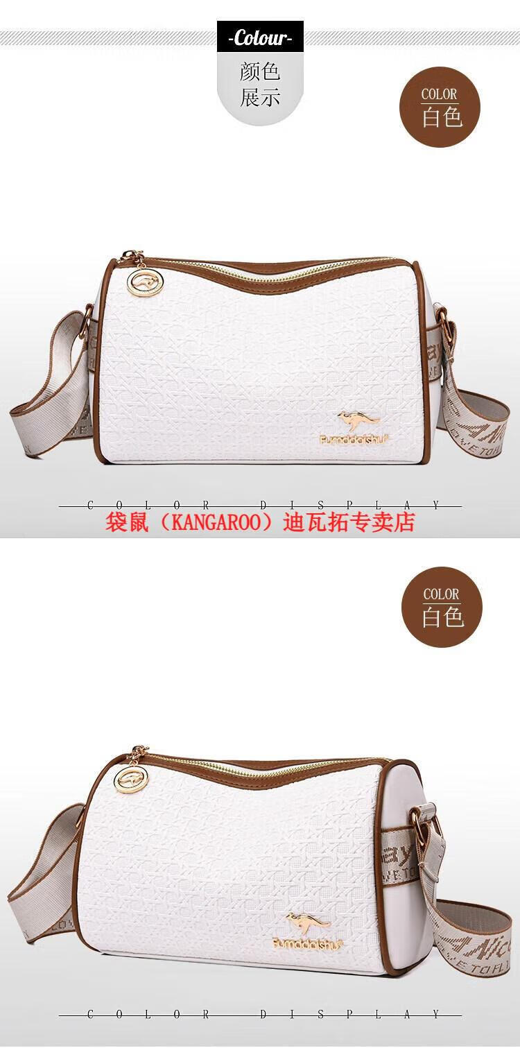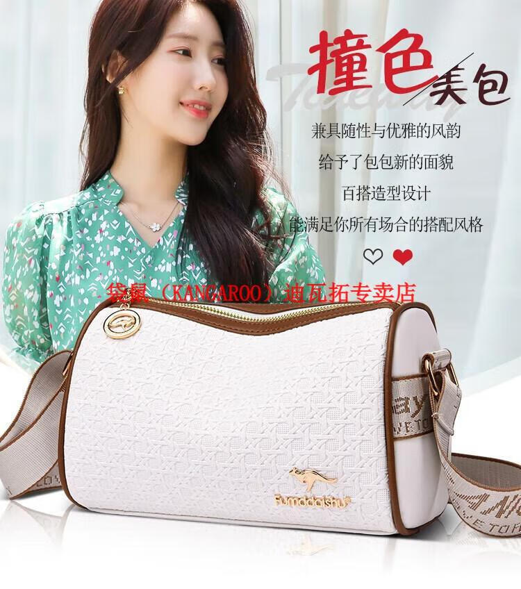 袋鼠(KANGAROO)2025女包圆筒包包女真皮新款枕头包大容量女士百搭单肩斜挎包 米白色