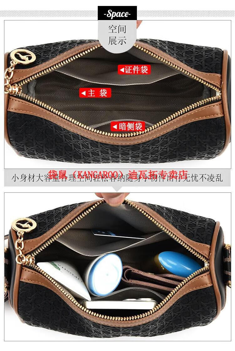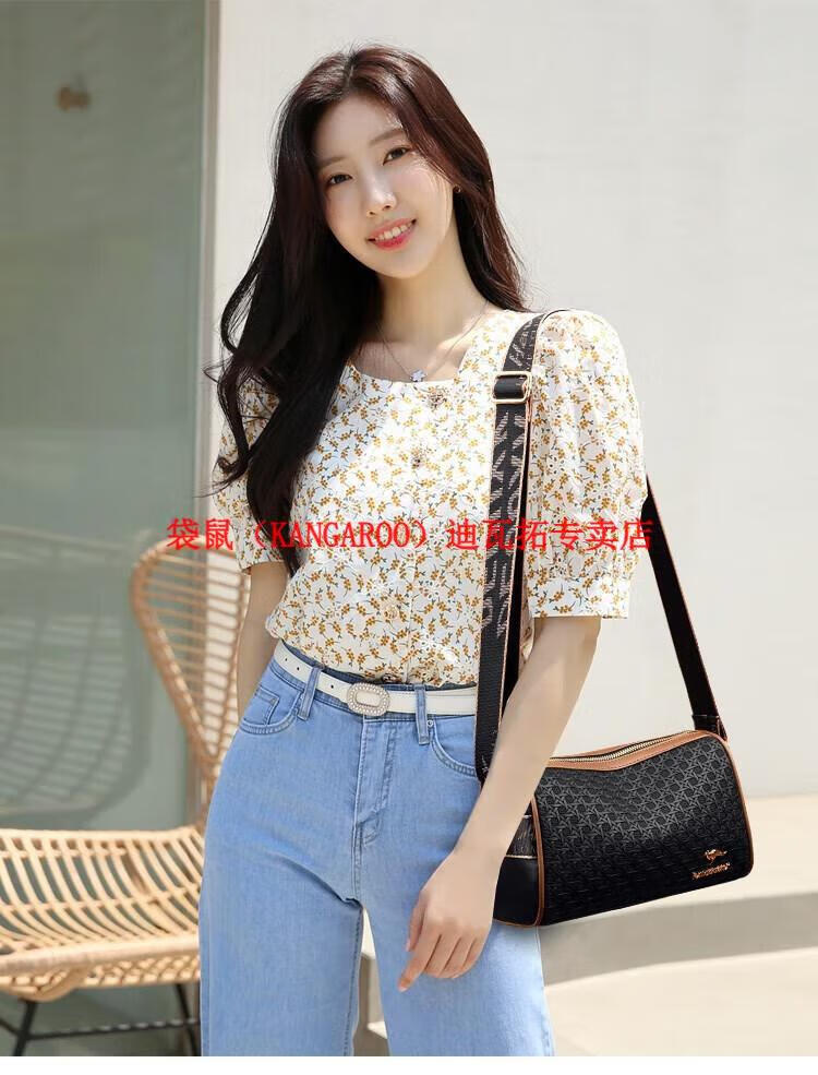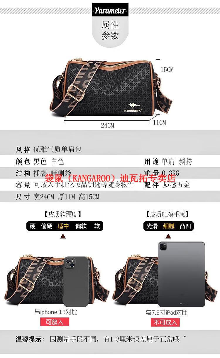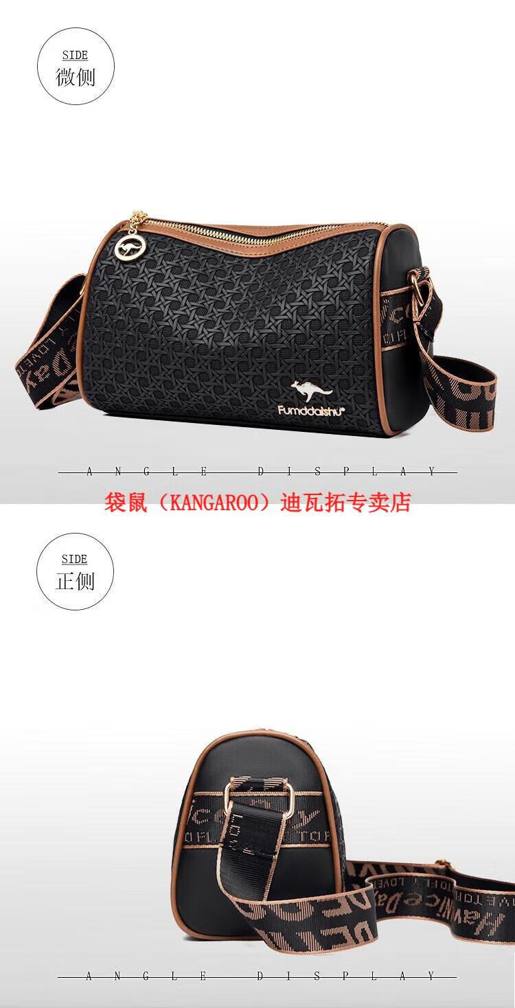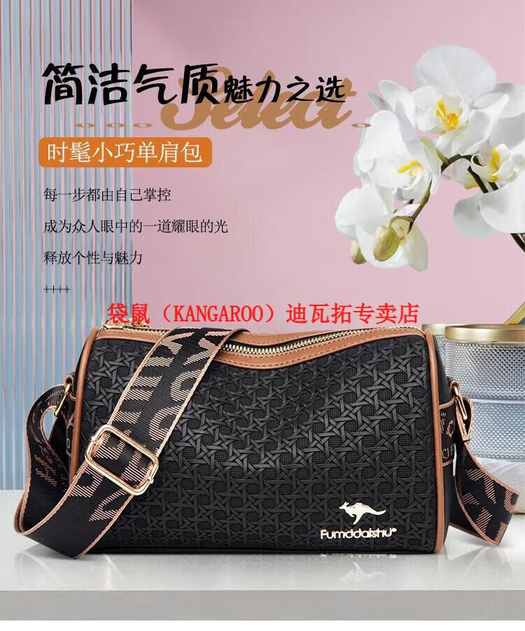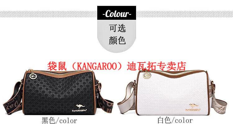袋鼠(KANGAROO)2025女包圆筒包包女真皮新款枕头包大容量女士百搭单肩斜挎包 米白色