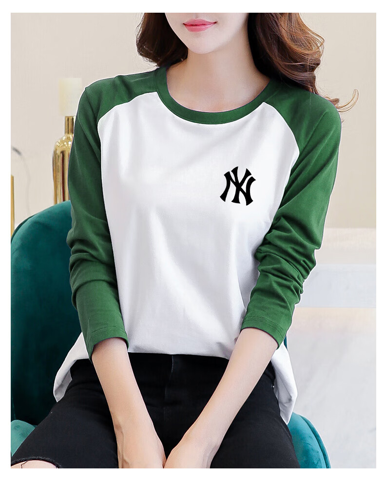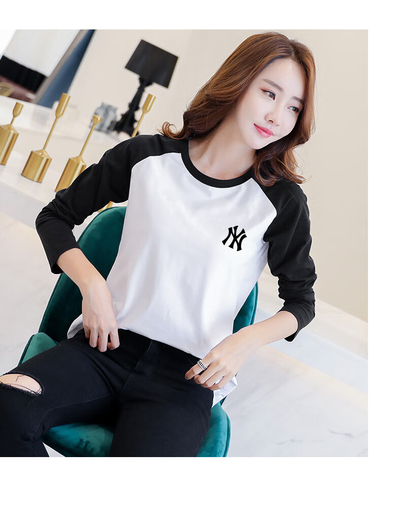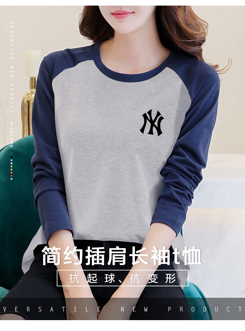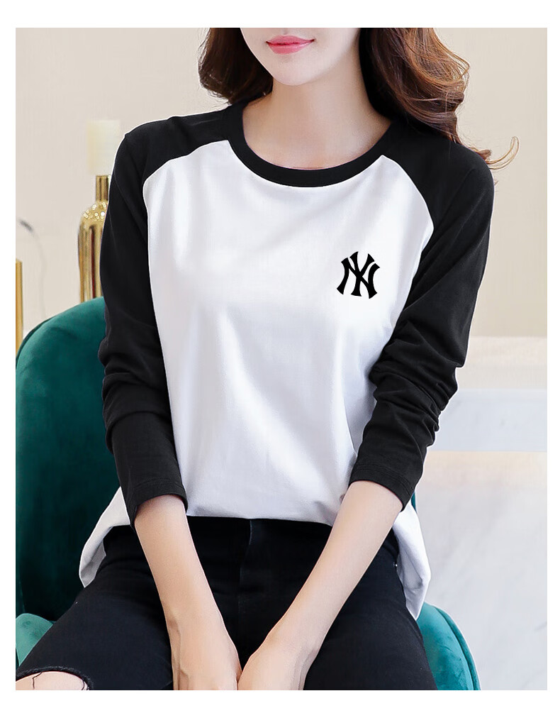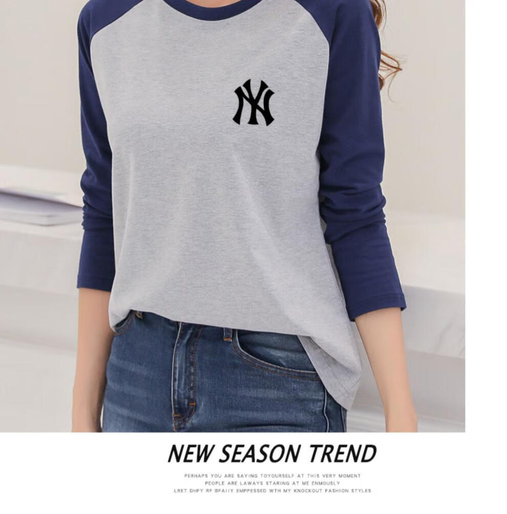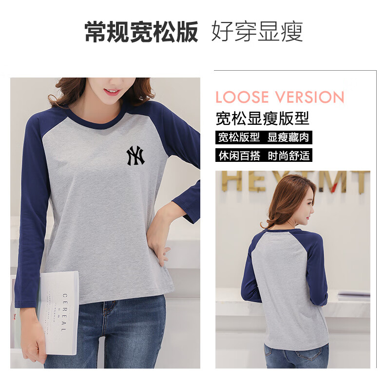 LOVER RUCCI French European women's long-sleeved versatile loose raglan sleeve T-shirt spring and autumn new pure cotton T-shirt women's casual gray blue sleeves (regular style) black picture, right chest L