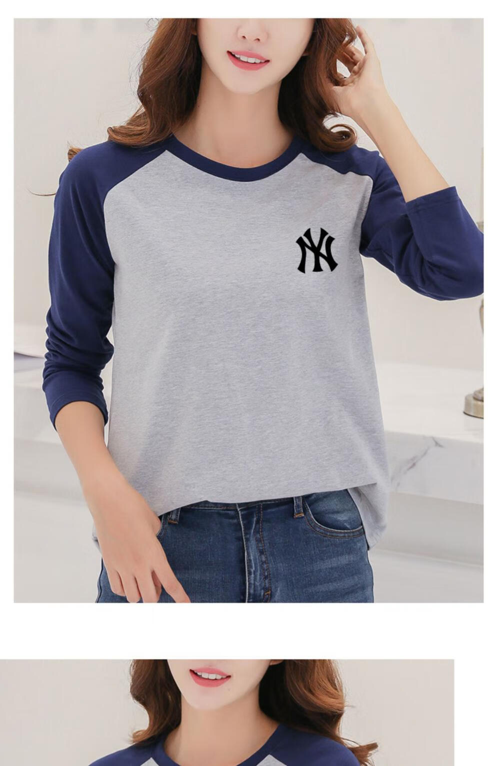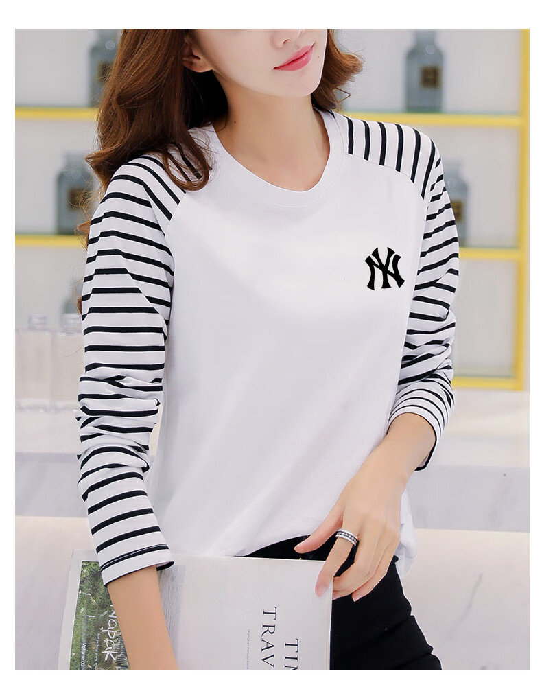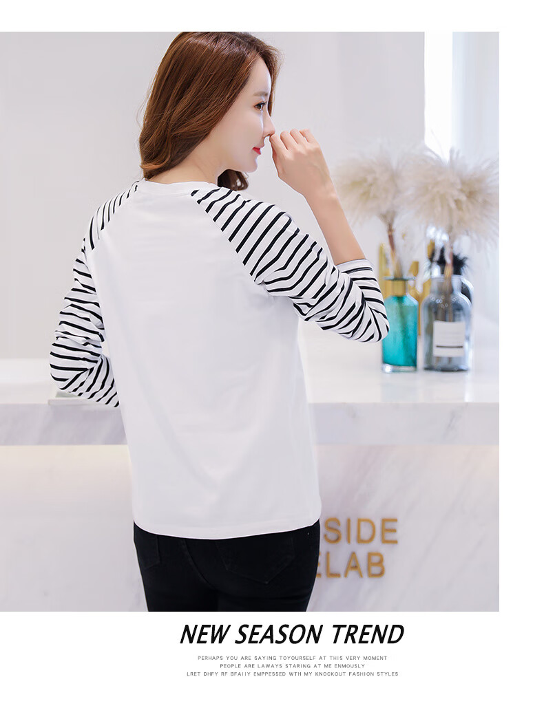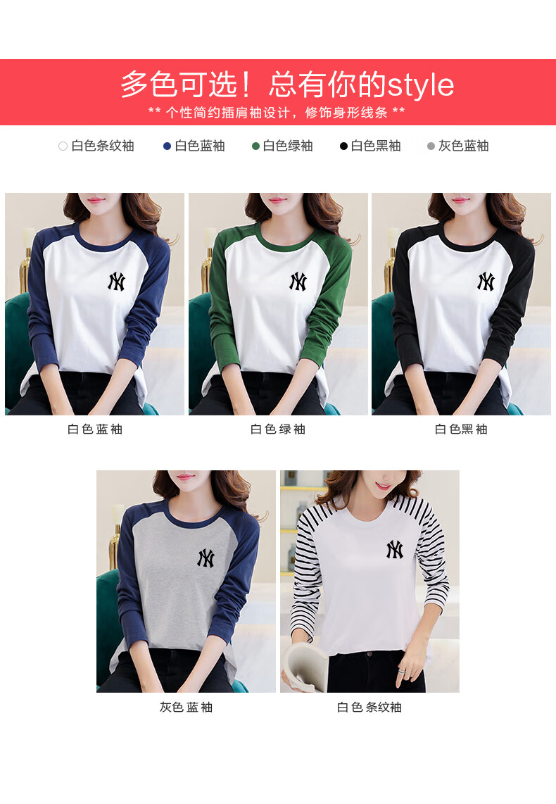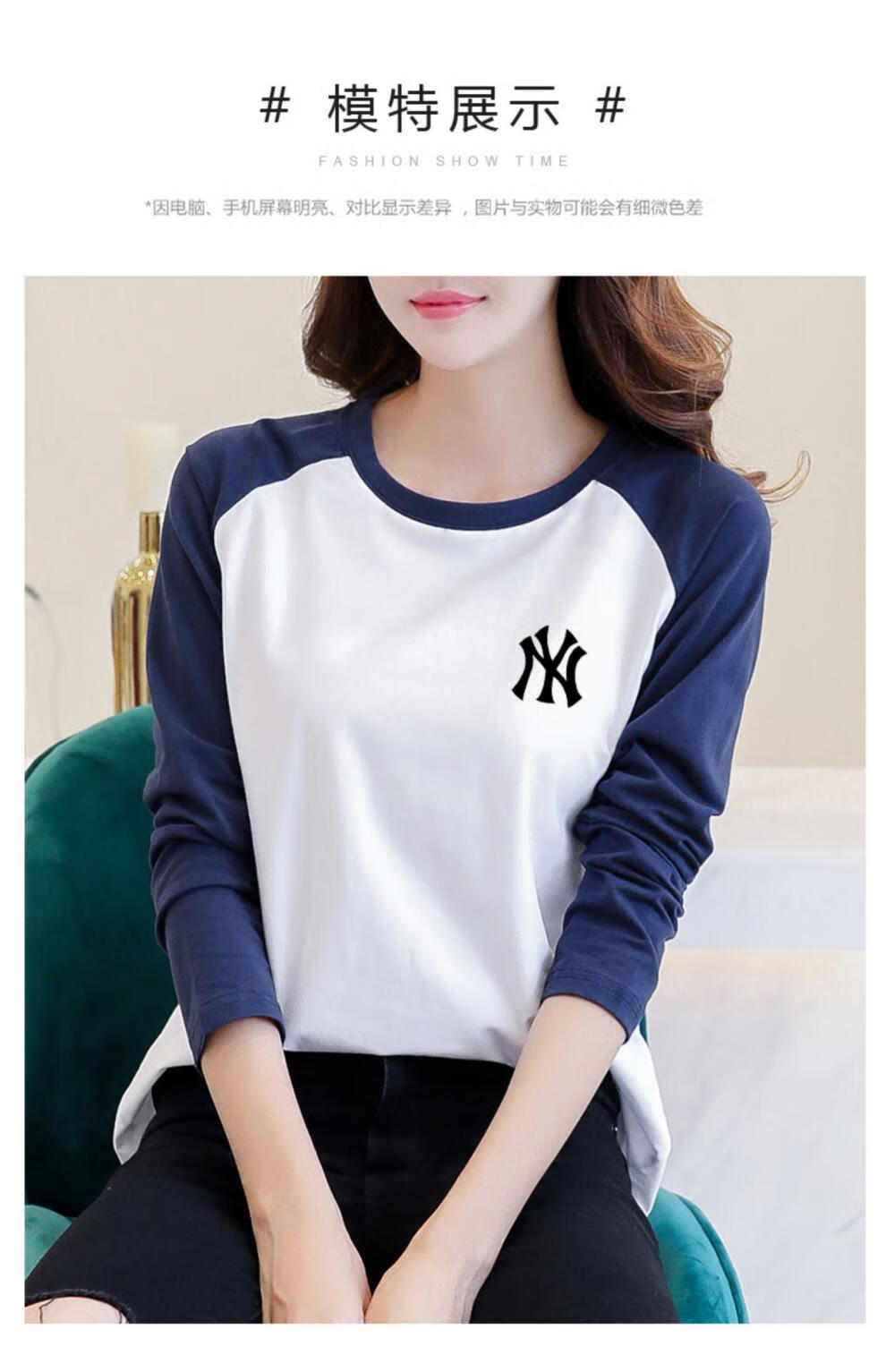 LOVER RUCCI French European women's long-sleeved versatile loose raglan sleeve T-shirt spring and autumn new pure cotton T-shirt women's casual gray blue sleeves (regular style) black picture, right chest L