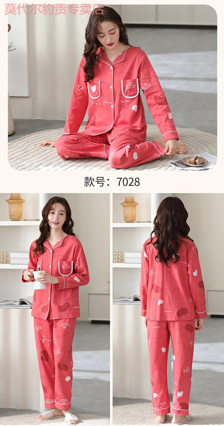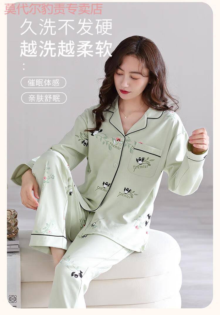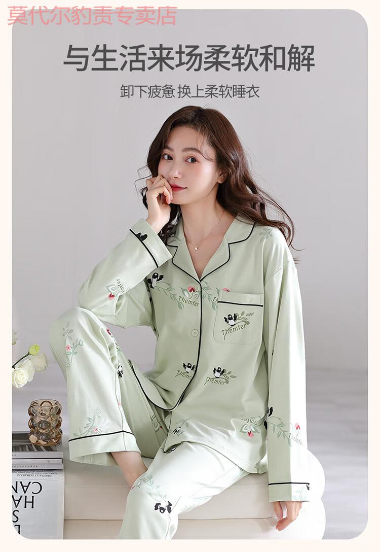 莫代尔纯棉睡衣时尚洋气全棉布料两件套2025春秋款女针织长袖女士春季 YM7027 M (160)