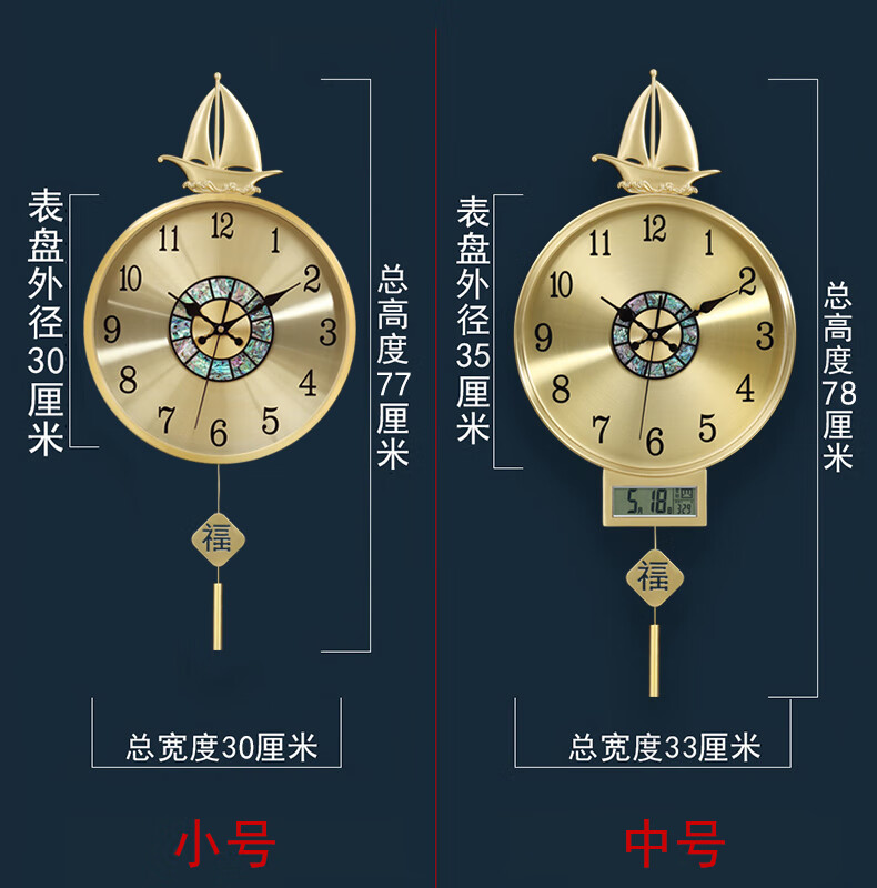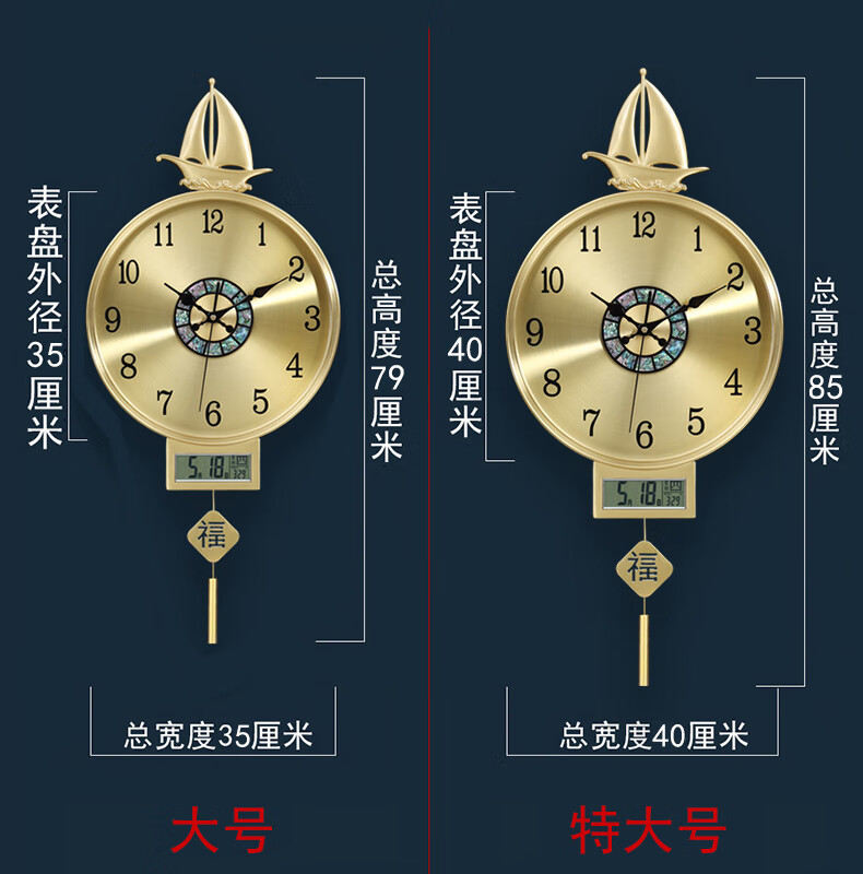 凯琴新中式黄铜装饰挂钟现代简约轻奢钟表帆船客厅装饰钟家居装饰时钟 黄铜大号9275无日历-金色表盘 整点音乐报时机芯(保10年)