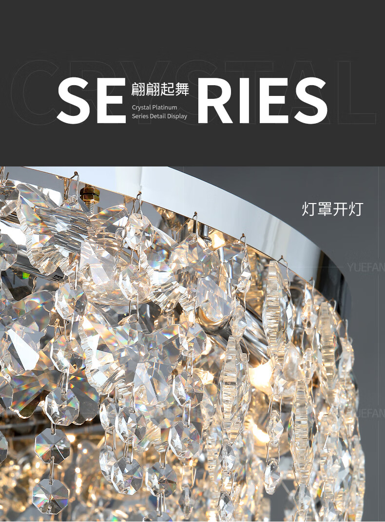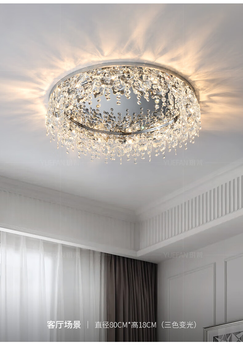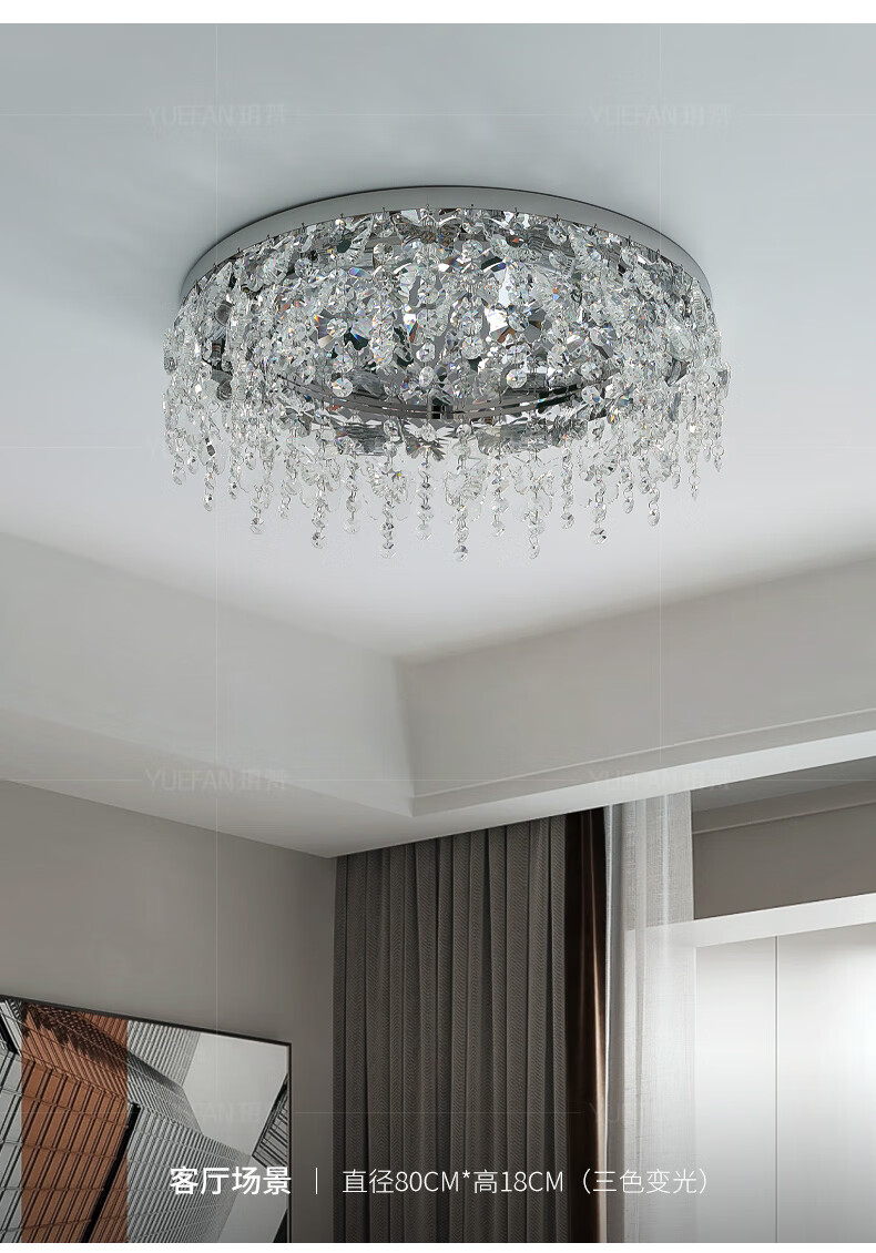 玥梵(YUEFAN)新款现代轻奢客厅吸顶灯简约大气餐厅卧室房间水晶灯 144W 25㎡内适用 12240lm 直径80
