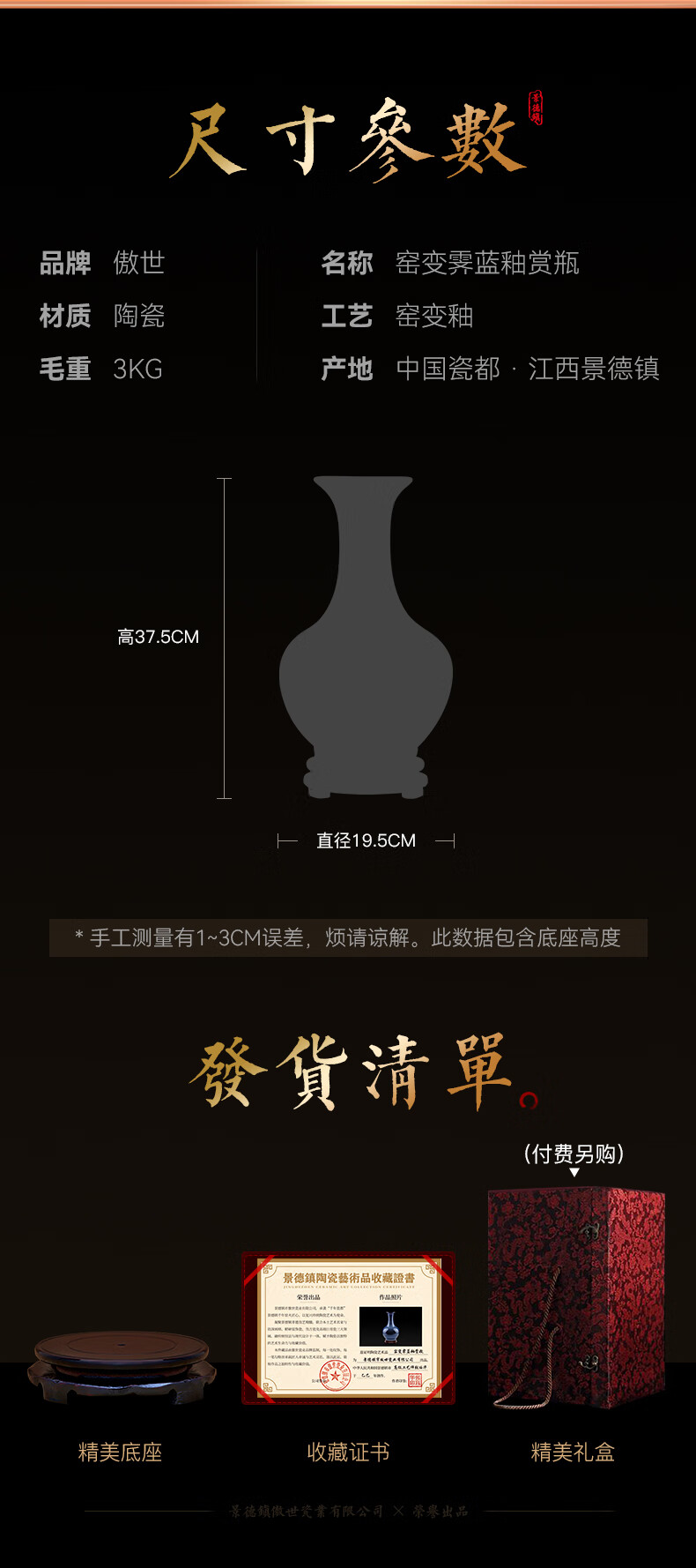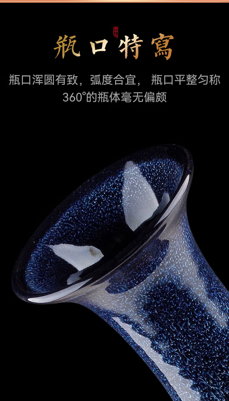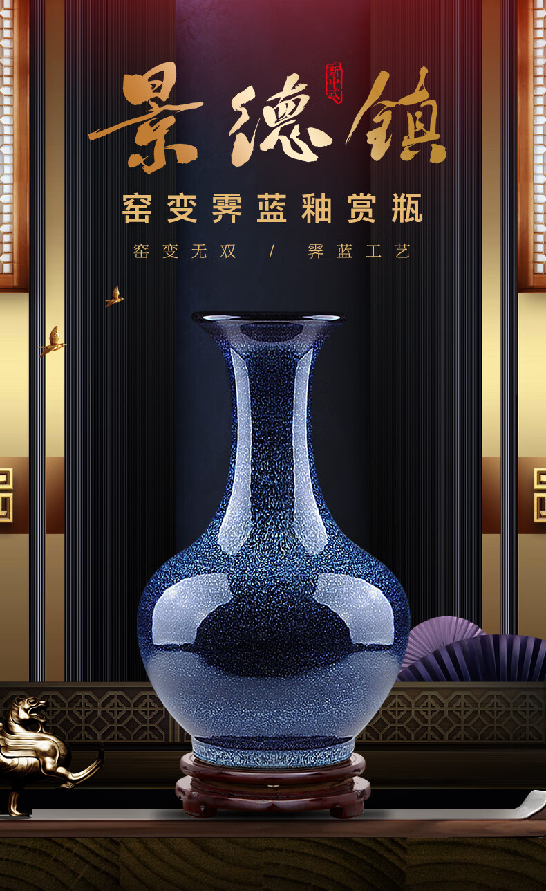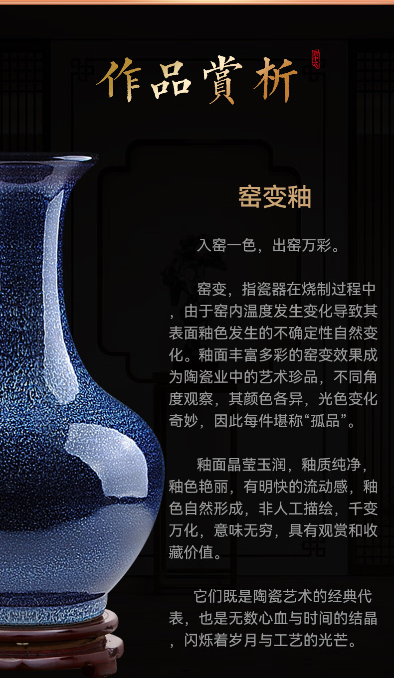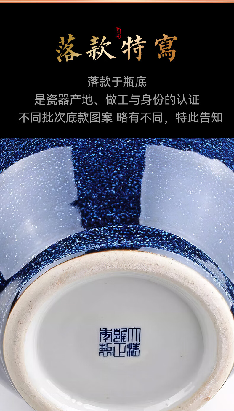 Orgulloso Jingdezhen Cerámica Nuevo jarrón de estilo chino Decoración de oficina Sala de estar Entrada Artesanía Soporte arqueológico Arte Regalo Horno Transformación Ji Blue Glaze Apreciación Jarrón + Base + Certificado