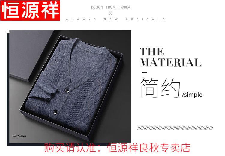 恒源祥高档品牌羊毛开衫男春秋中老年人爸爸装宽松大码长袖毛衣外套 灰色 165/84A