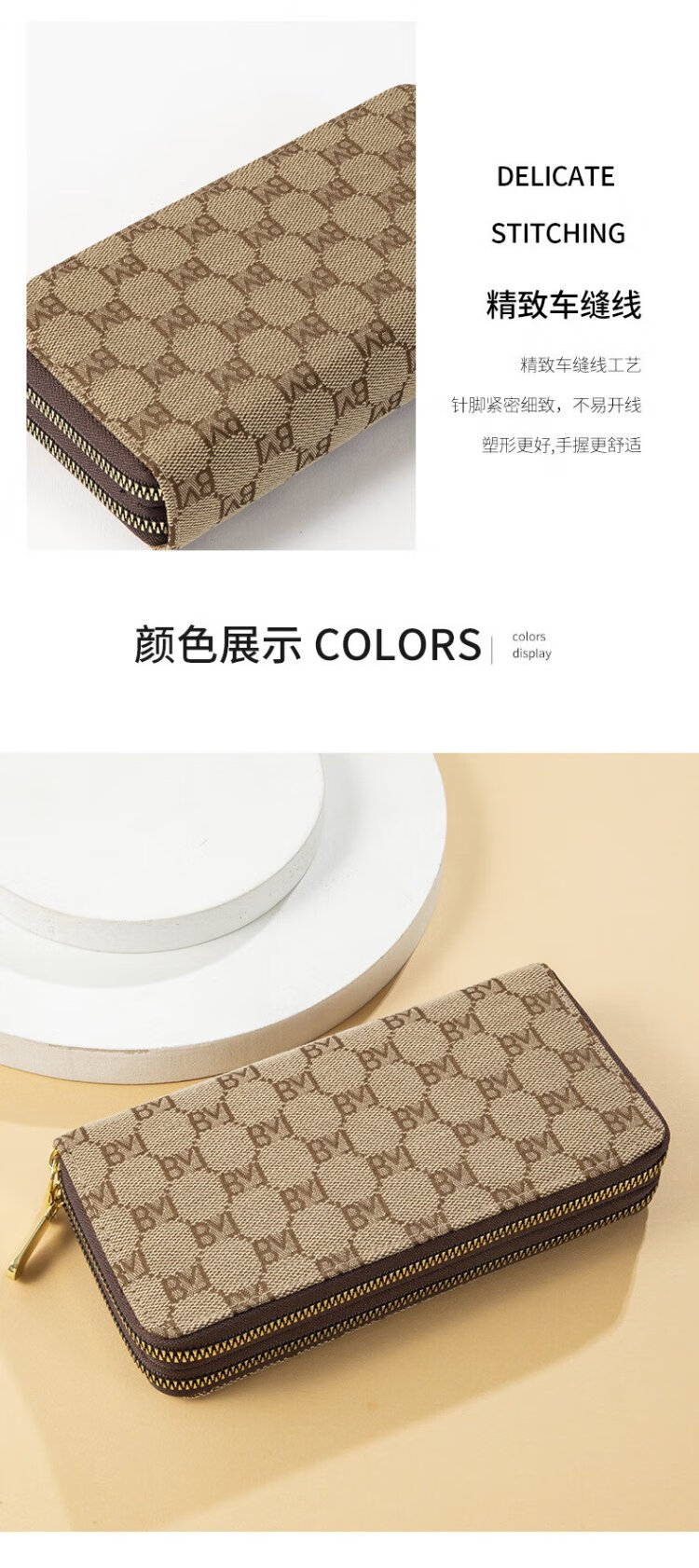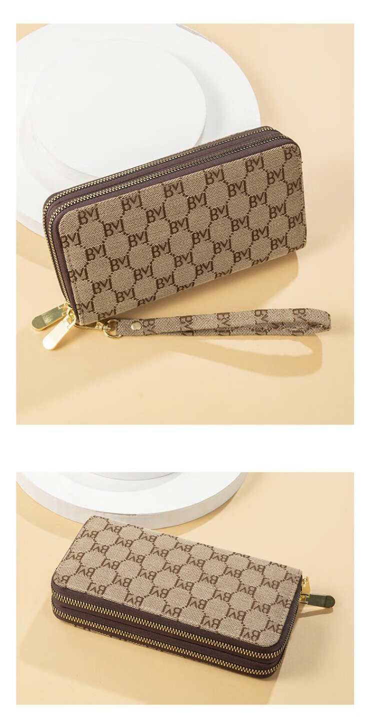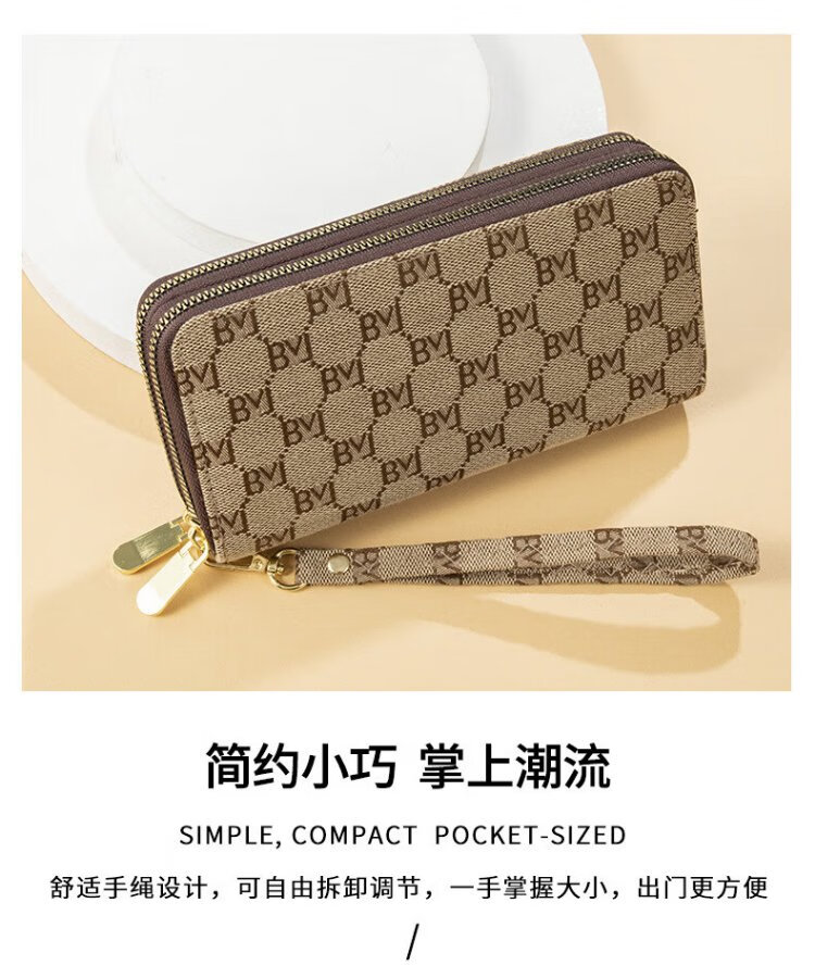 万佳臻双拉链钱包女长款卡包潮百搭手拿包轻巧钱票夹简约手包送女友礼物 【深咖色】