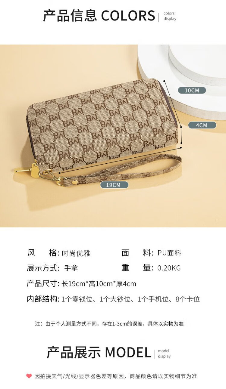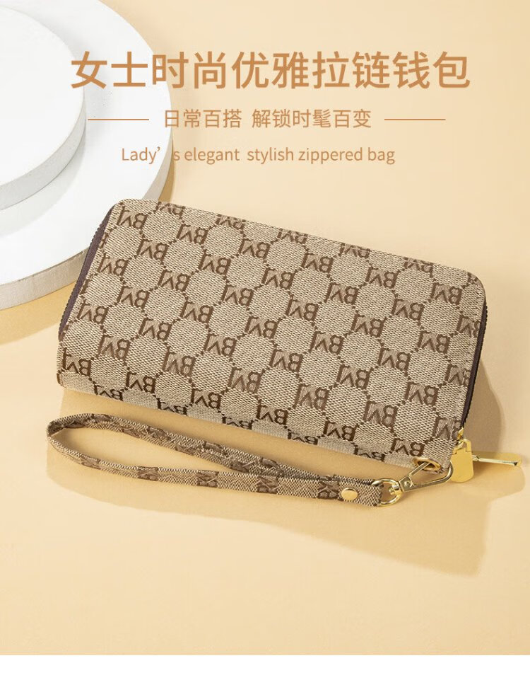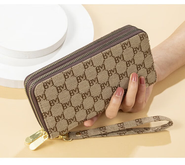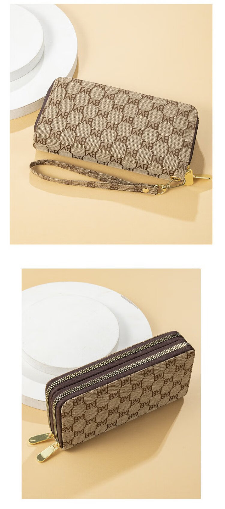 万佳臻双拉链钱包女长款卡包潮百搭手拿包轻巧钱票夹简约手包送女友礼物 【深咖色】