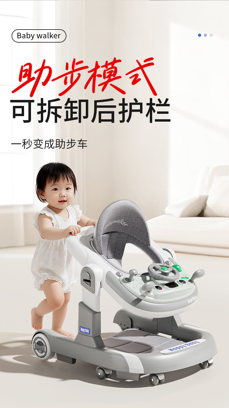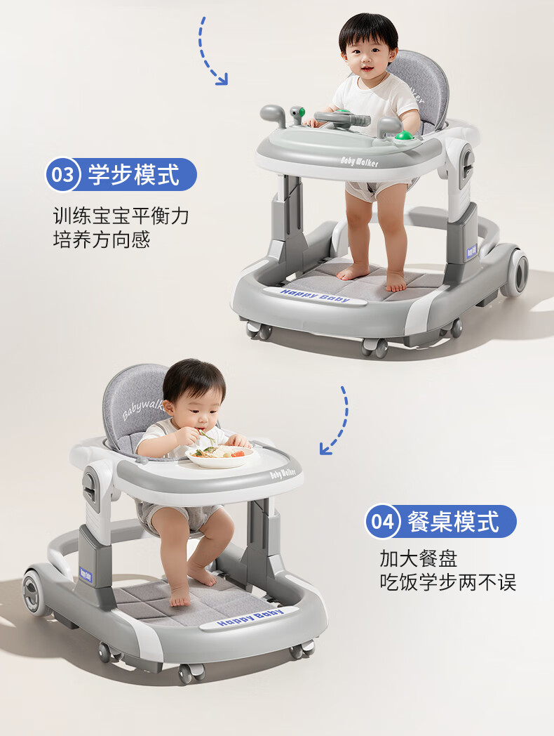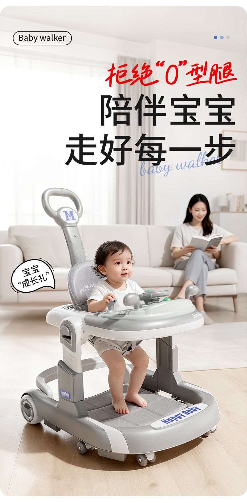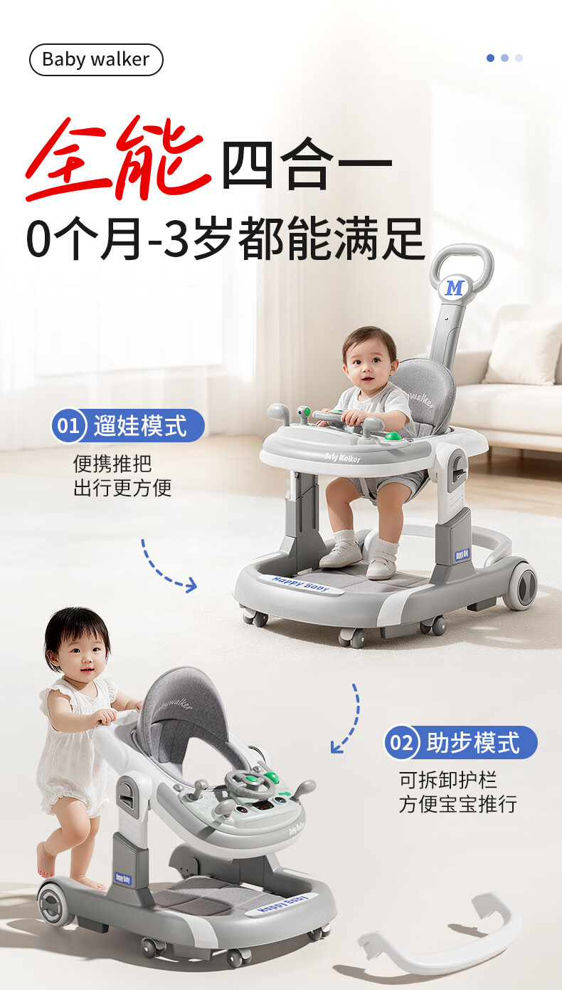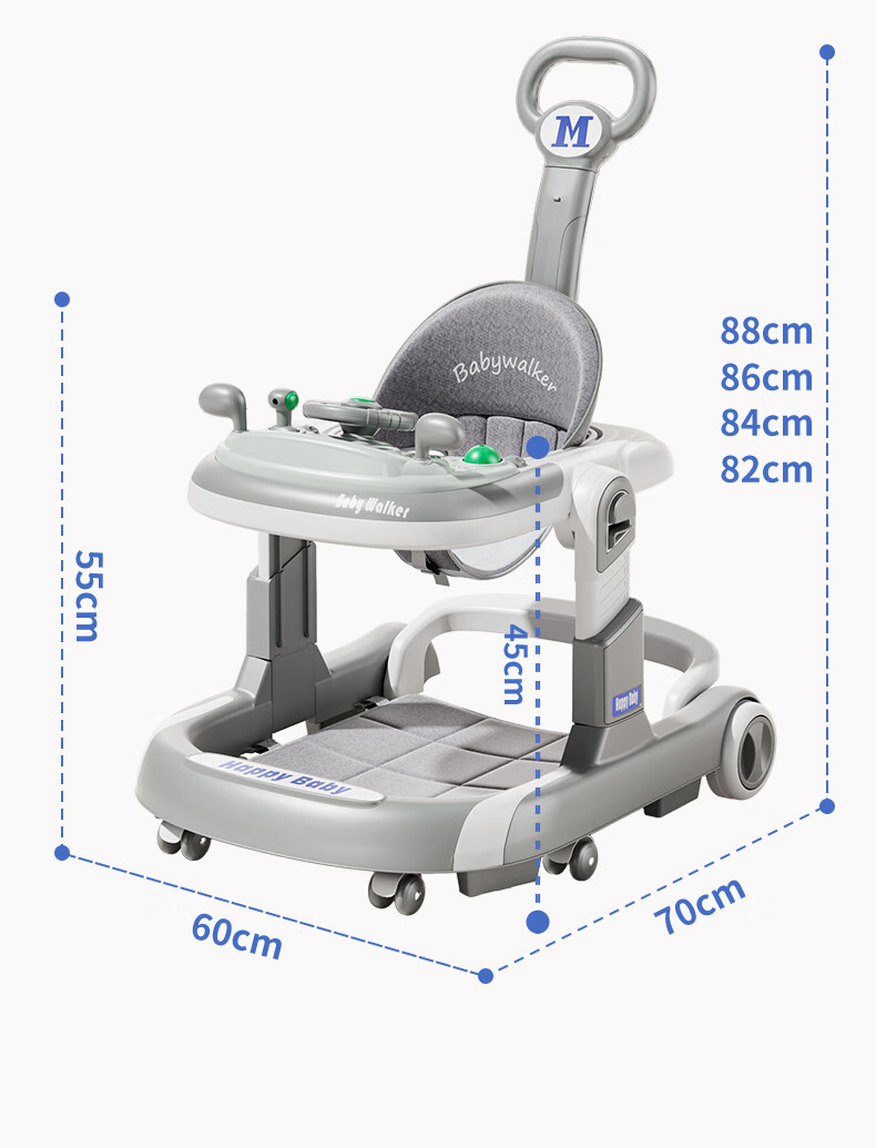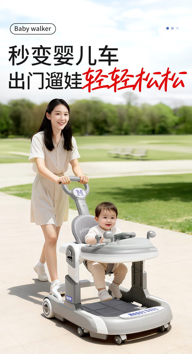 Cute stone walker rejects O-legs for babies 2025 multi-functional anti-rollover baby stroller for children, mica gray toddler + walker + push handle flagship model over 7 months/foldable/rejects O-legs