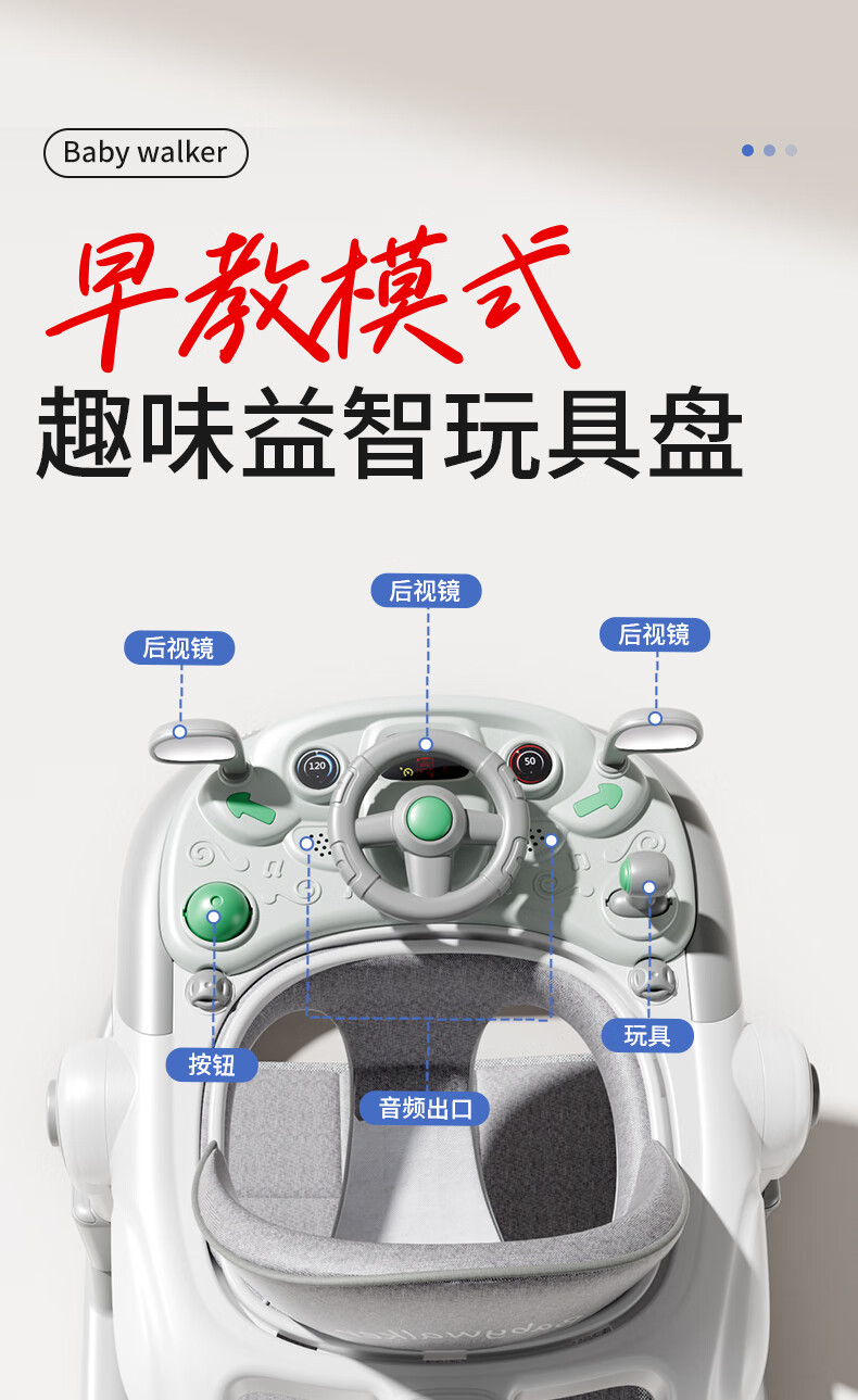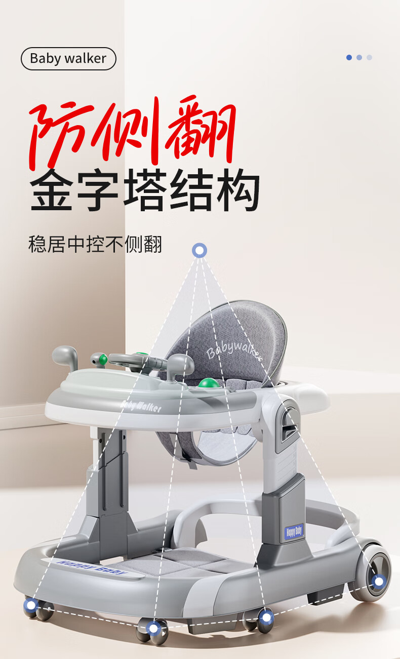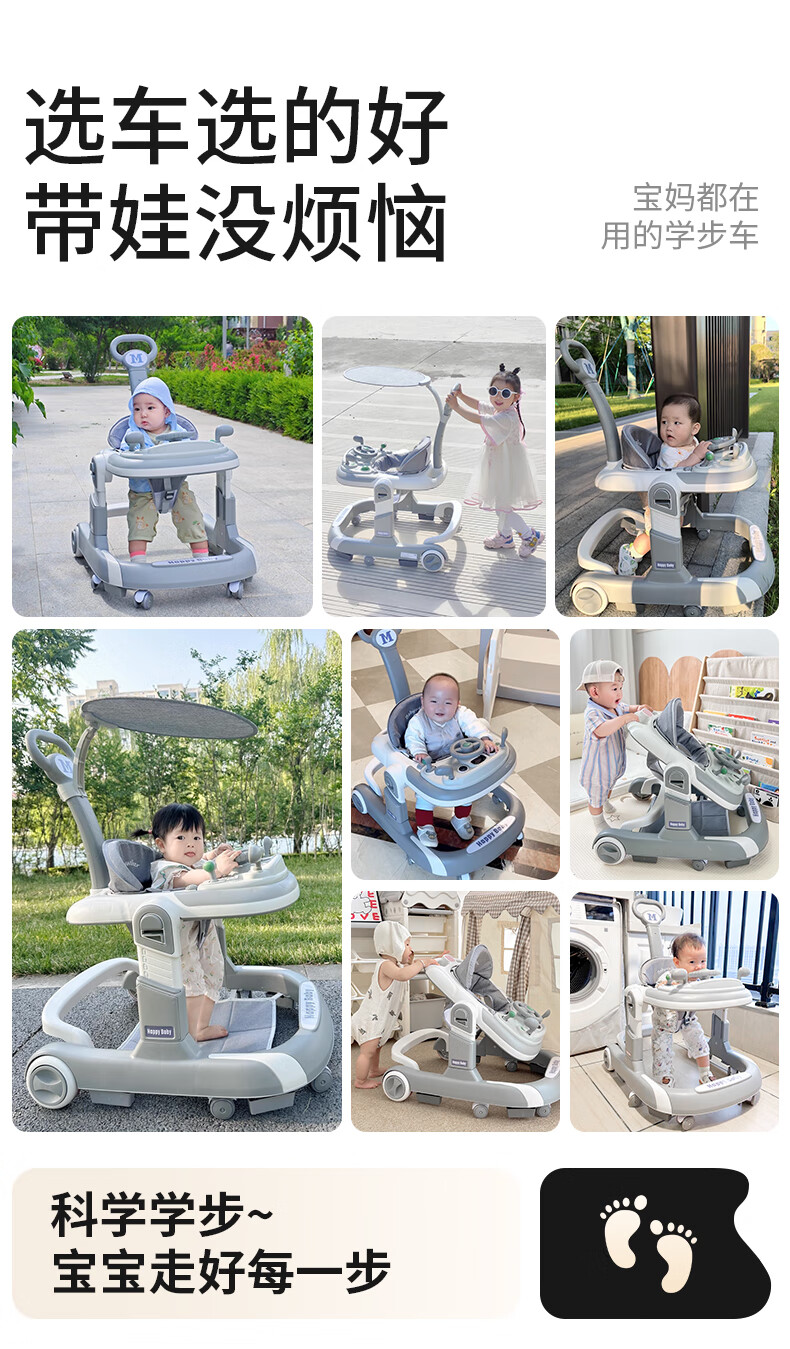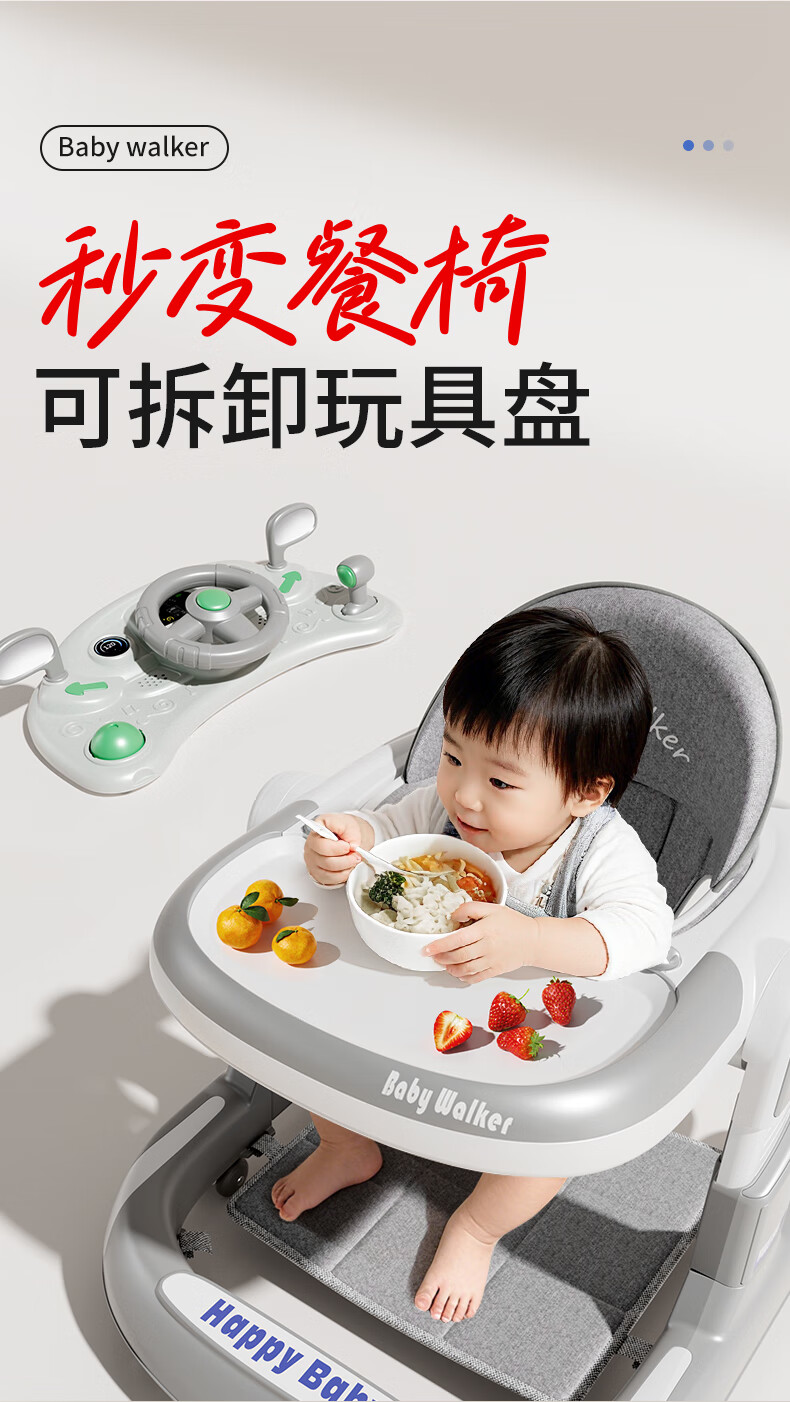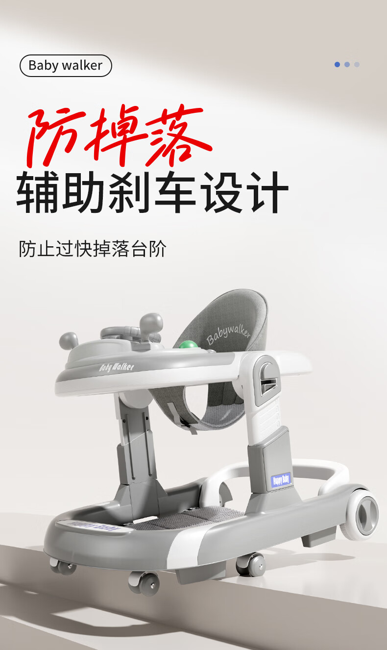 Cute stone walker rejects O-legs for babies 2025 multi-functional anti-rollover baby stroller for children, mica gray toddler + walker + push handle flagship model over 7 months/foldable/rejects O-legs