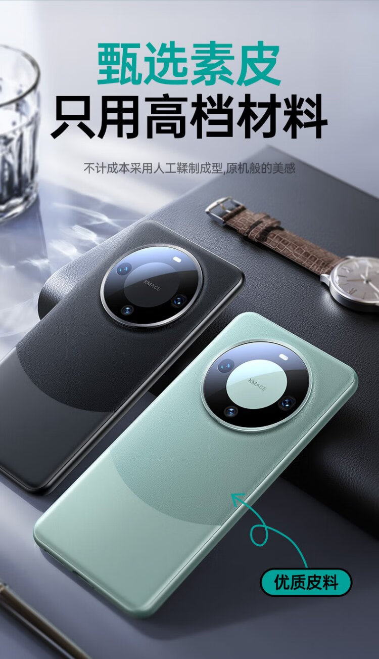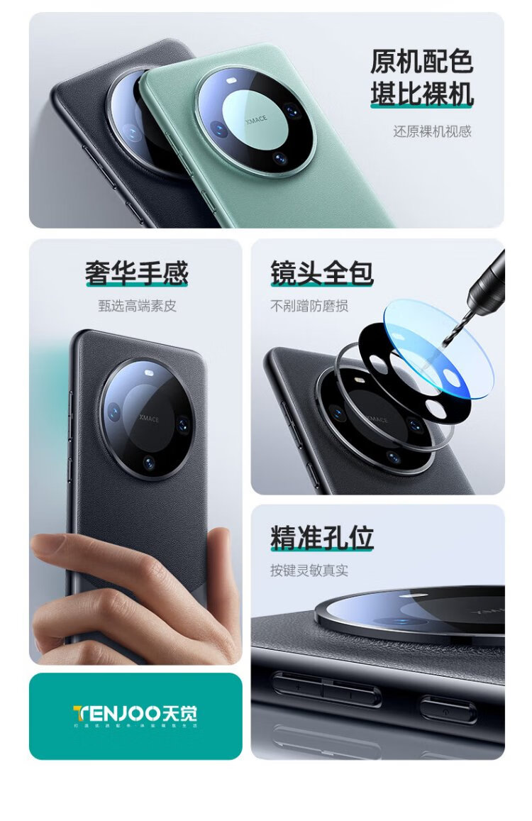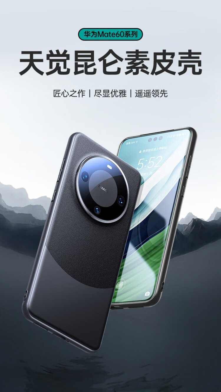 天觉【高端素皮】适用华为mate60pro手机壳 Mate60真素皮pro+保护套镜头全包超薄防摔商务男女款 Mate60pro/60pro+【雅丹黑】轻奢素皮