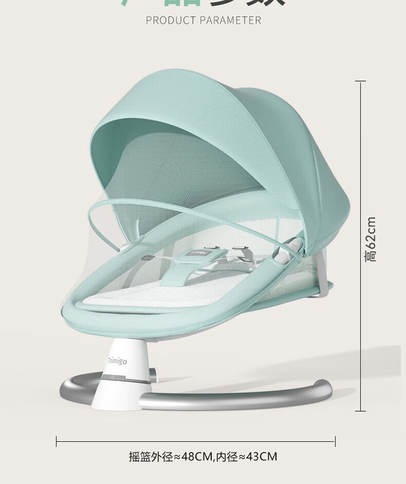Trimigo (Tai Mei Gao) elektrischer Baby-Schaukelstuhl, um Baby-Artefakt zu überreden, Baby-Wiege, 0–1 Jahre altes Baby, Vollmond-Geschenk zum Schlafen, Baby-Schaukelstuhl, Baby-Schaukelstuhl, Treffen, Geschenk, Vollmond-Geschenk, Baby-Zubehör, Geschenk, Moskitonetz + Teller + Puppe + Kopfstütze + Bluetooth-Musik
