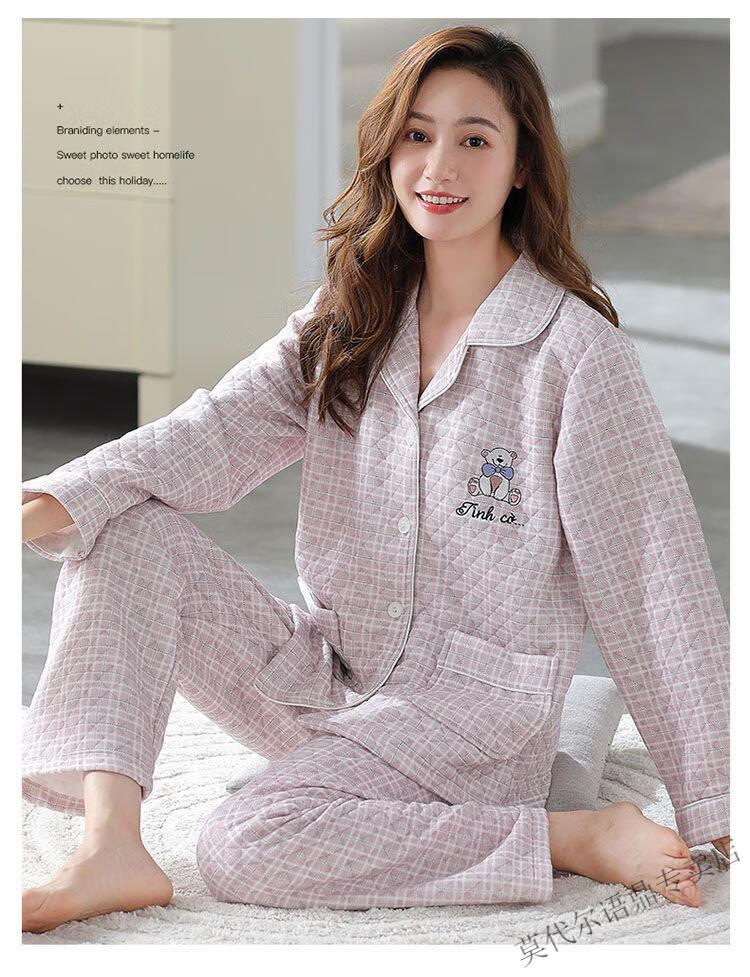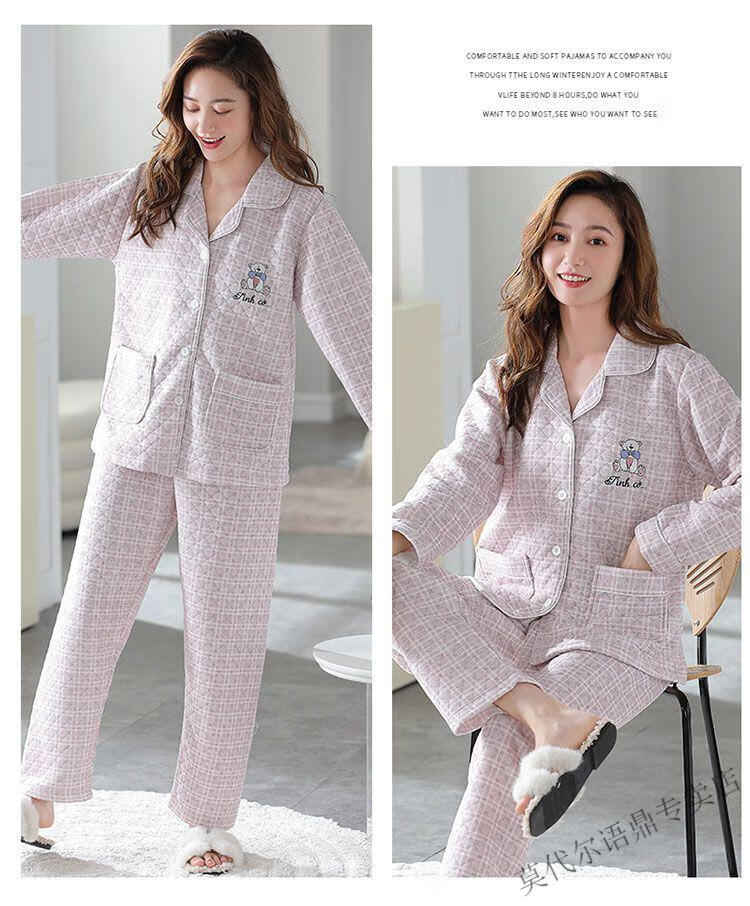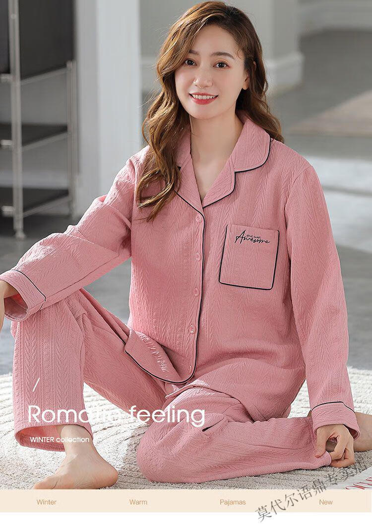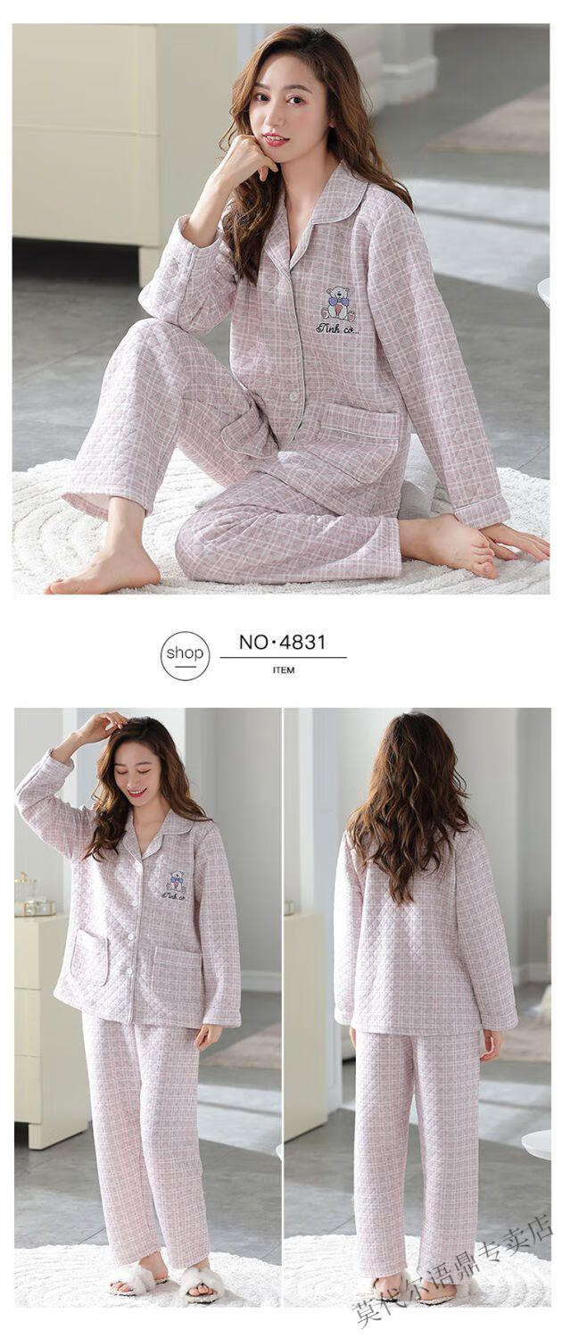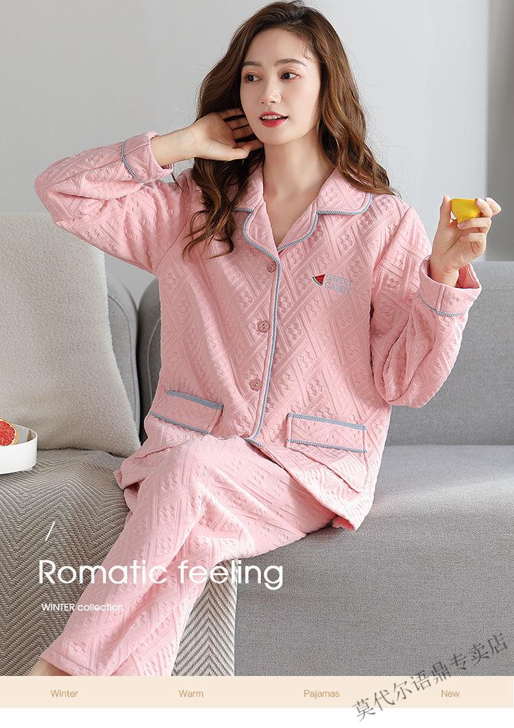 莫代尔三层空气棉夹层睡衣女士秋冬加厚纯棉保暖长袖开衫家居服两件套装 4839#西瓜粉 2XL 建议130-150斤