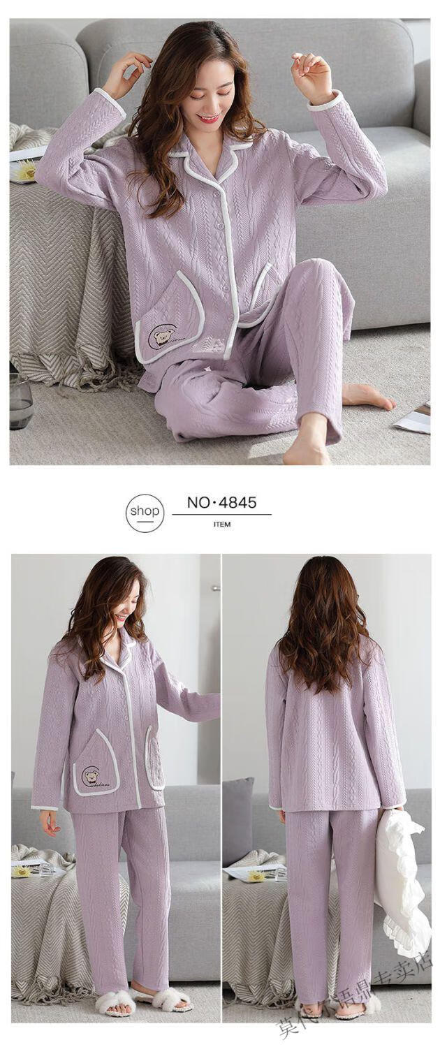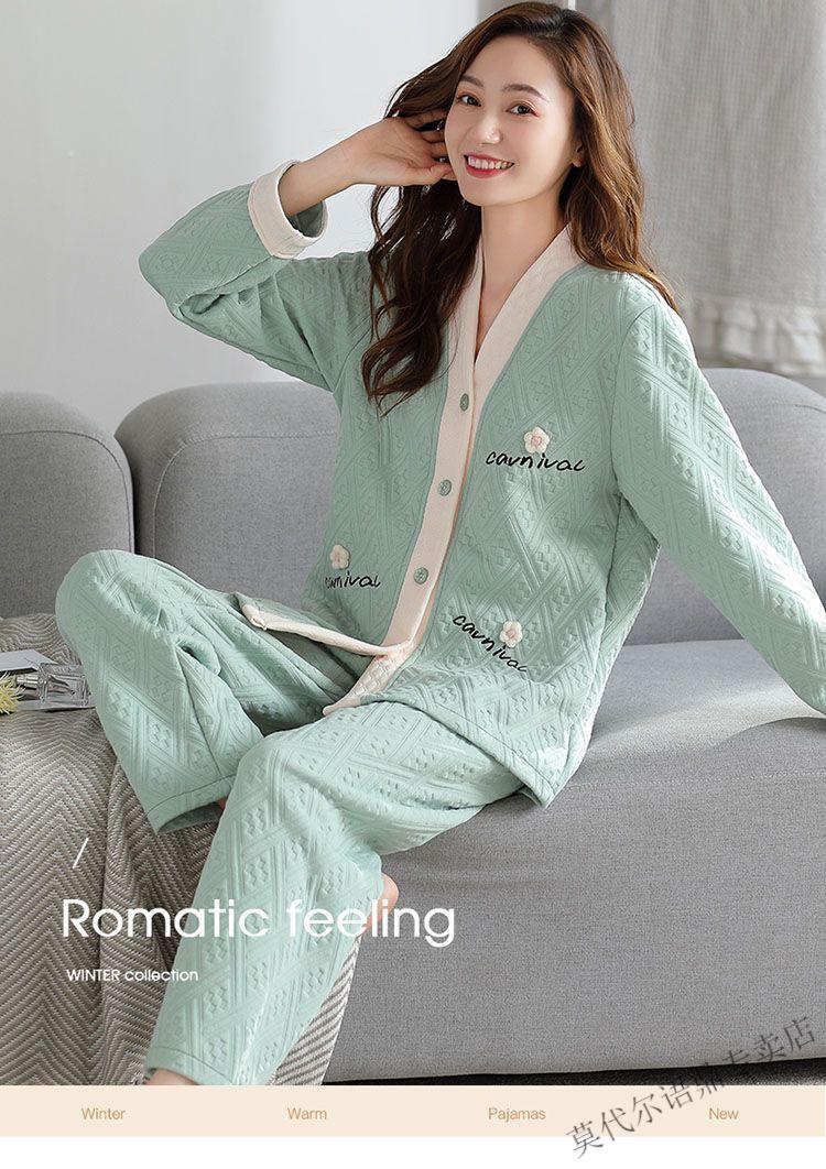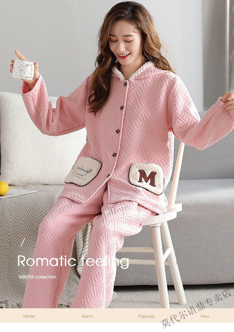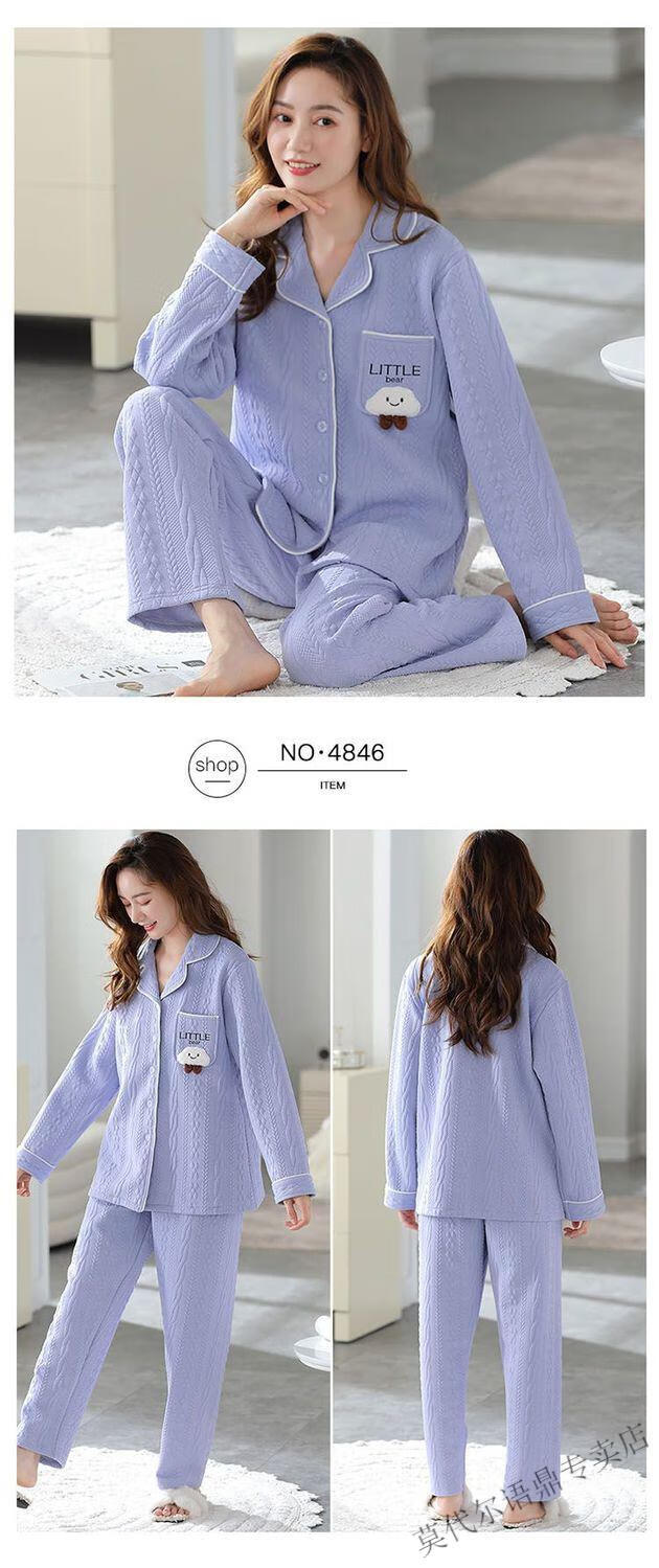 莫代尔三层空气棉夹层睡衣女士秋冬加厚纯棉保暖长袖开衫家居服两件套装 4839#西瓜粉 2XL 建议130-150斤