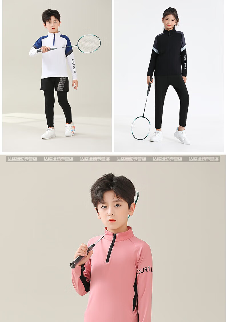 KAIRIHU football training clothes children's long-sleeved badminton suit men's and women's basketball quick-drying tights running sportswear 9793 white top + 9981 black fake two pieces 28 yards (150-155cm 70-80Jin Jin equals 0.5kg)
