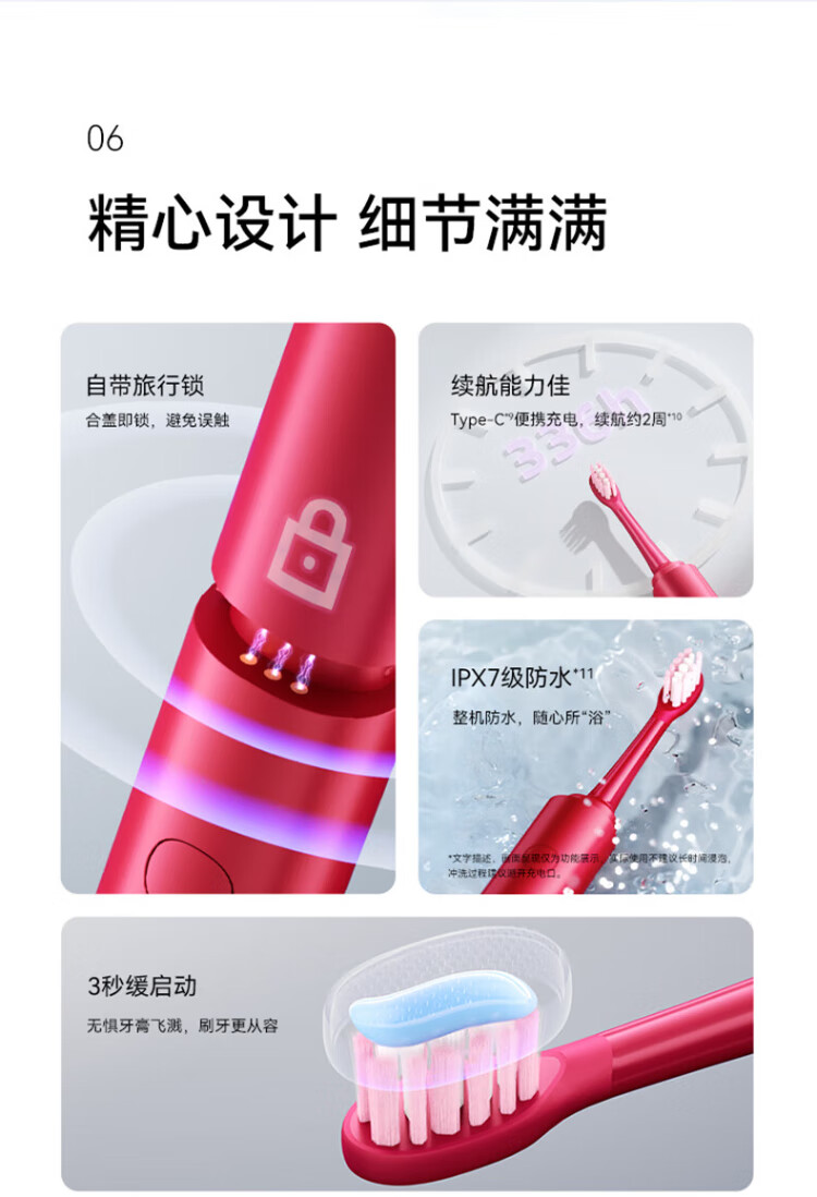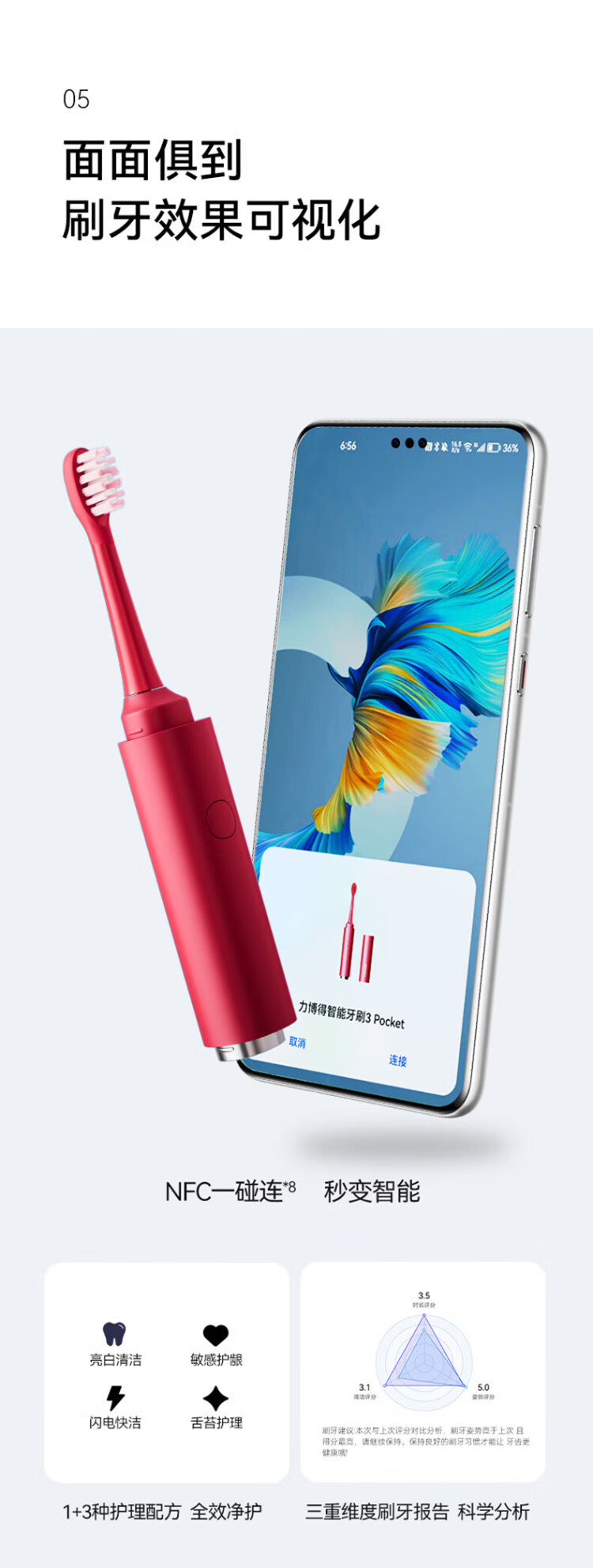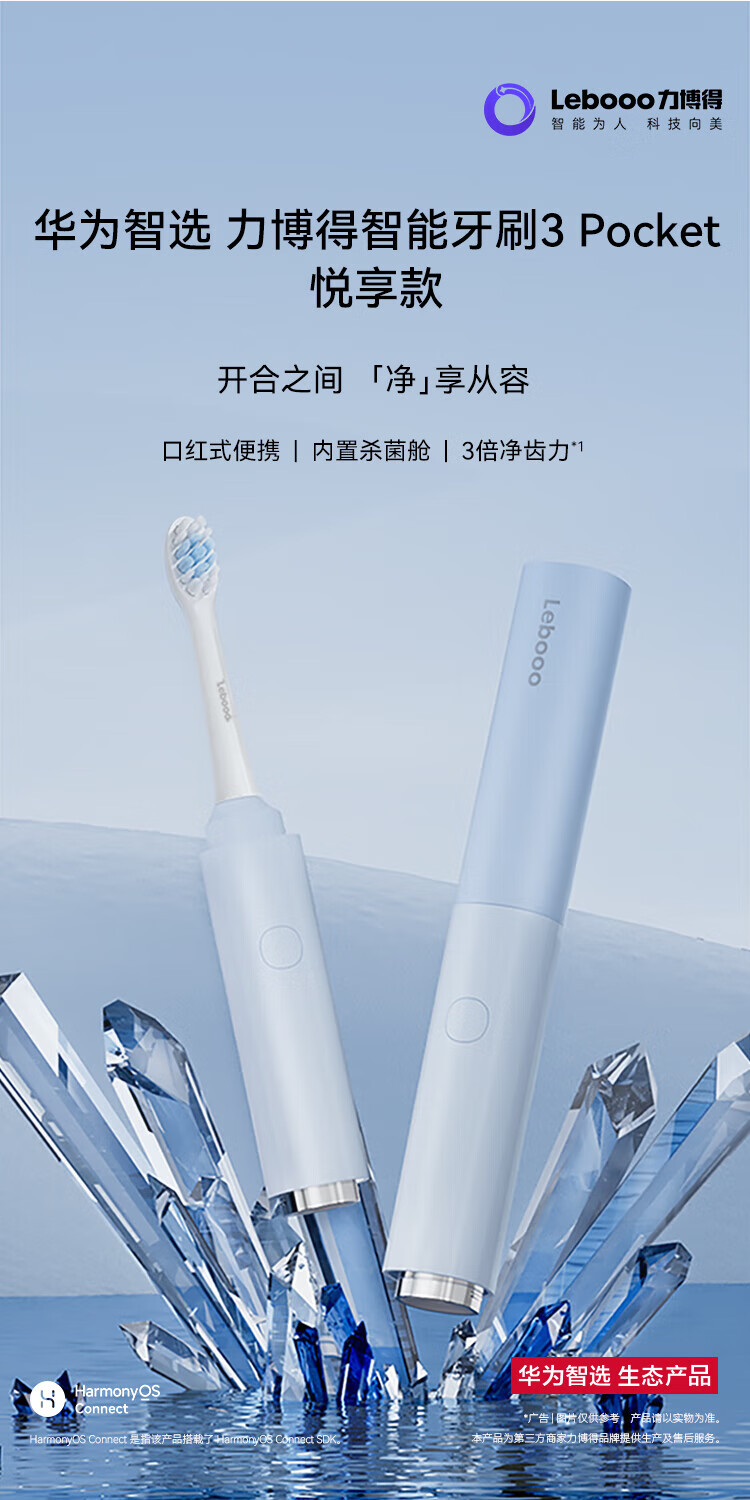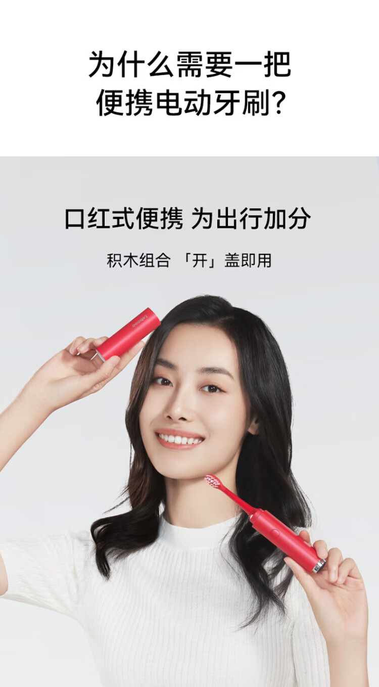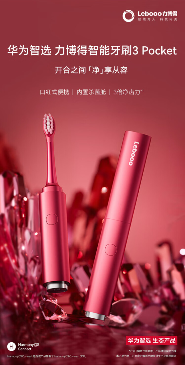 华为智选鸿蒙智选智能电动牙刷3Pocket便携出游消毒杀菌口红牙刷成人送男女生生日礼物 【尊享款】碧玺红