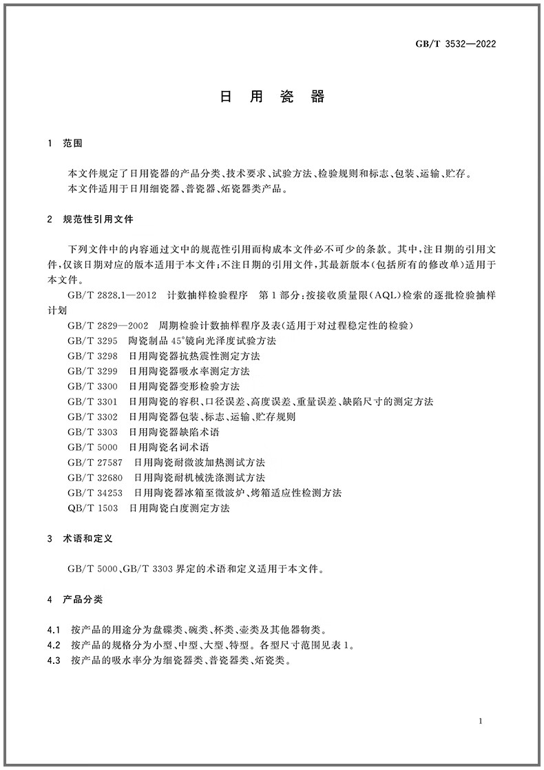 GB/T 3532-2022日用瓷器 【PDF 电子版】