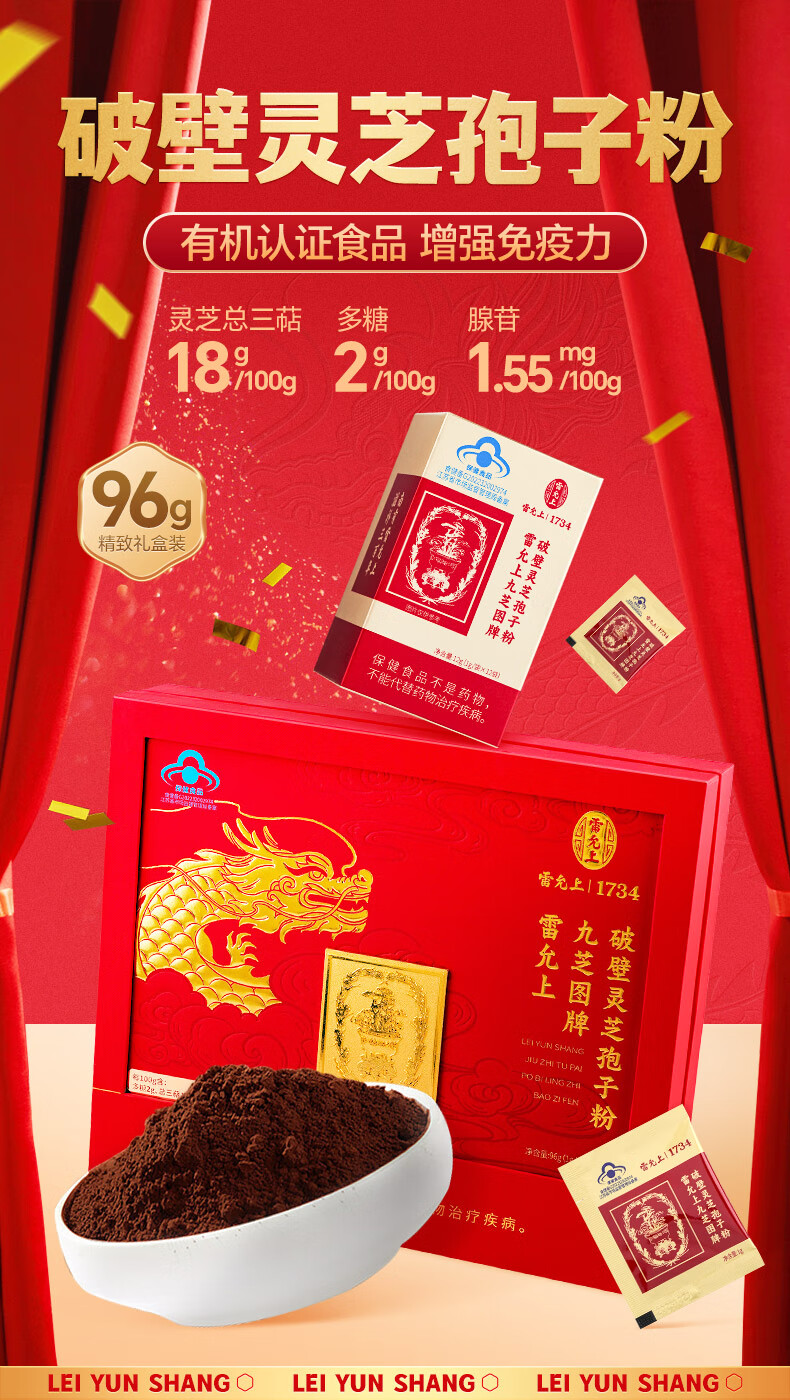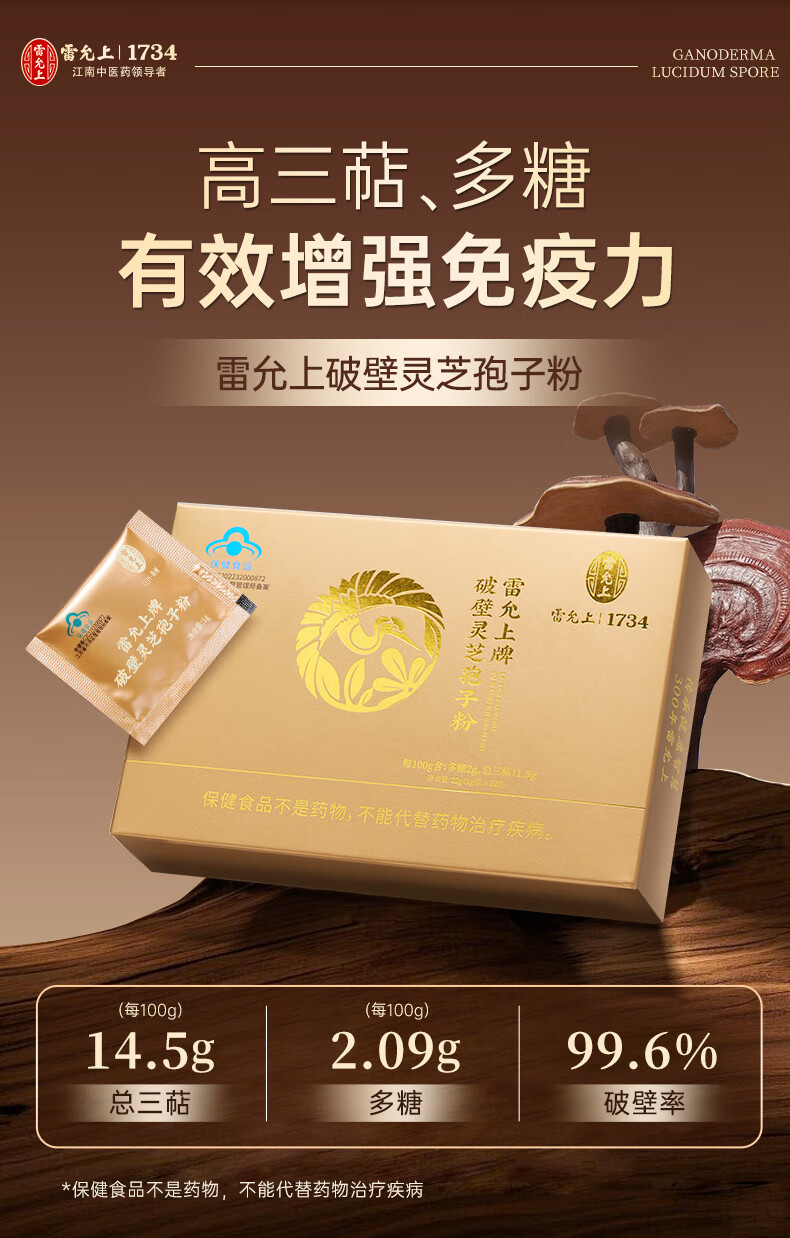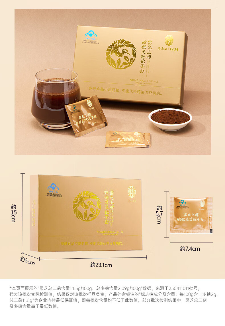 Das gebrochene Ganoderma-Sporenpulver von Lei Yunshang stärkt die Immunität von Menschen mittleren und älteren Alters, pflegt postoperative Schwäche und nährt Blue Hat-Zertifizierung gebrochenes Ganoderma-Sporenpulver, 22 Beutel/3 Schachteln/Changbai Mountain Ganoderma