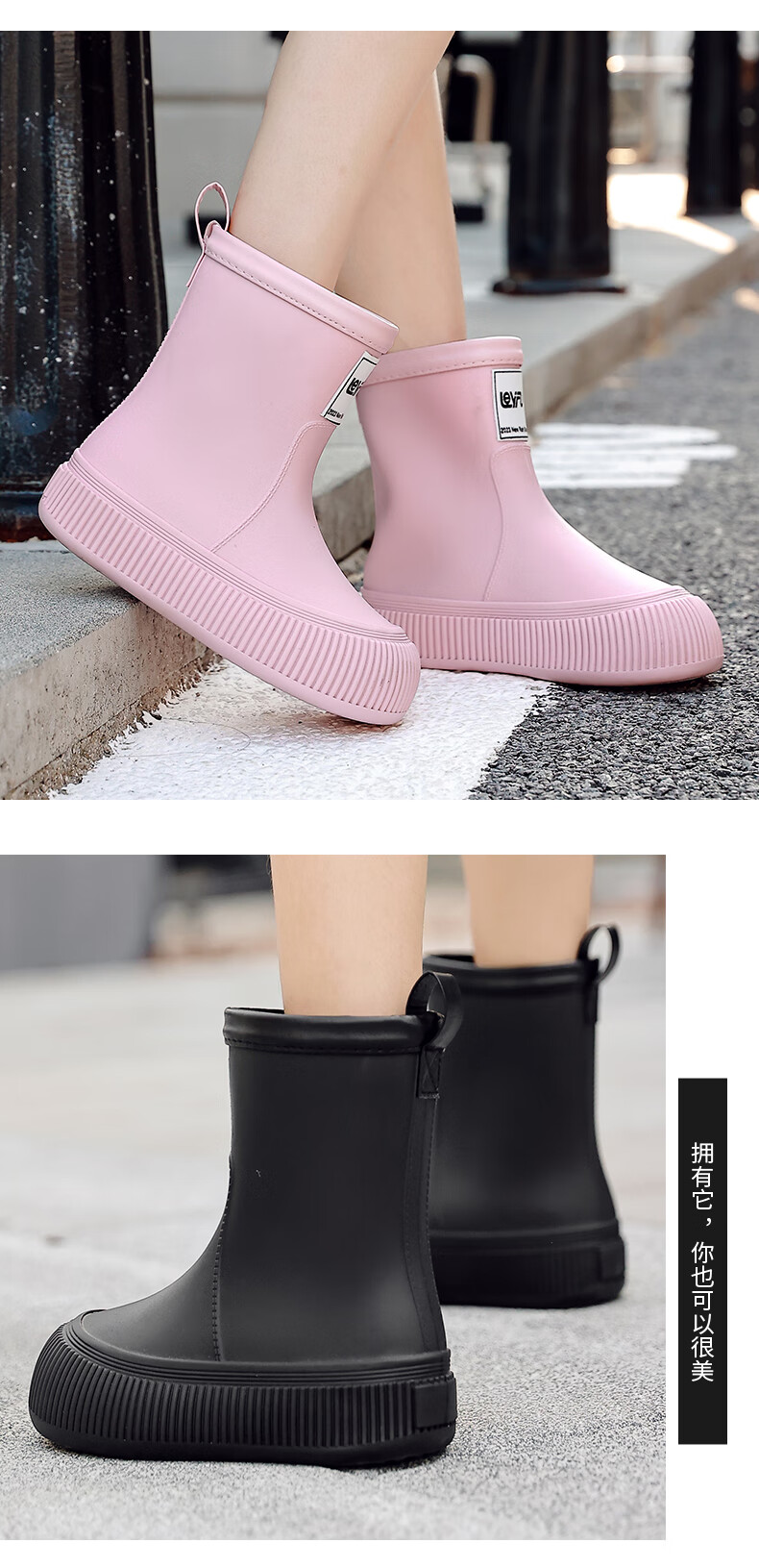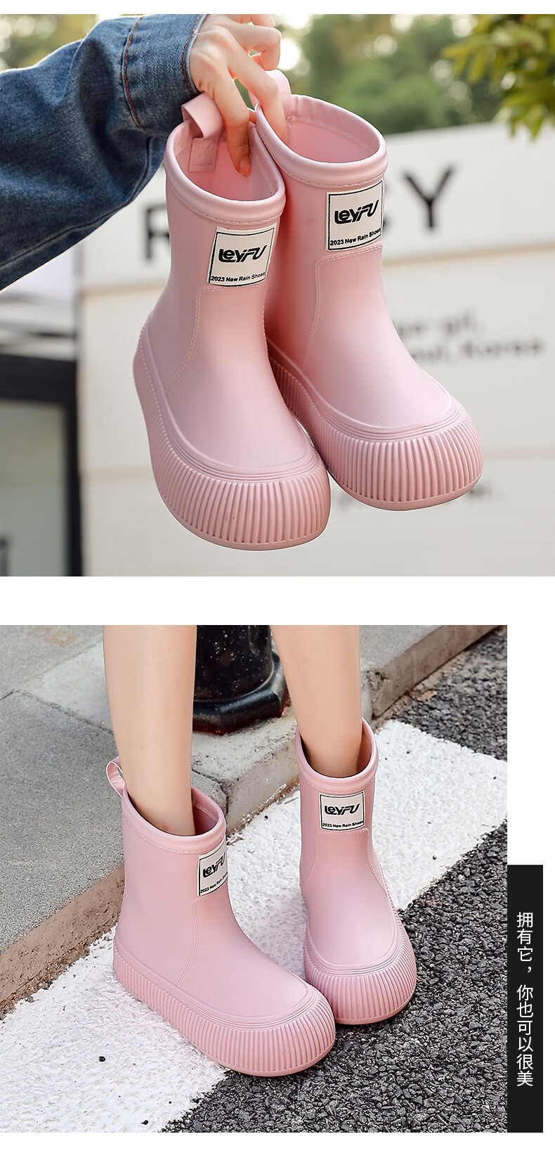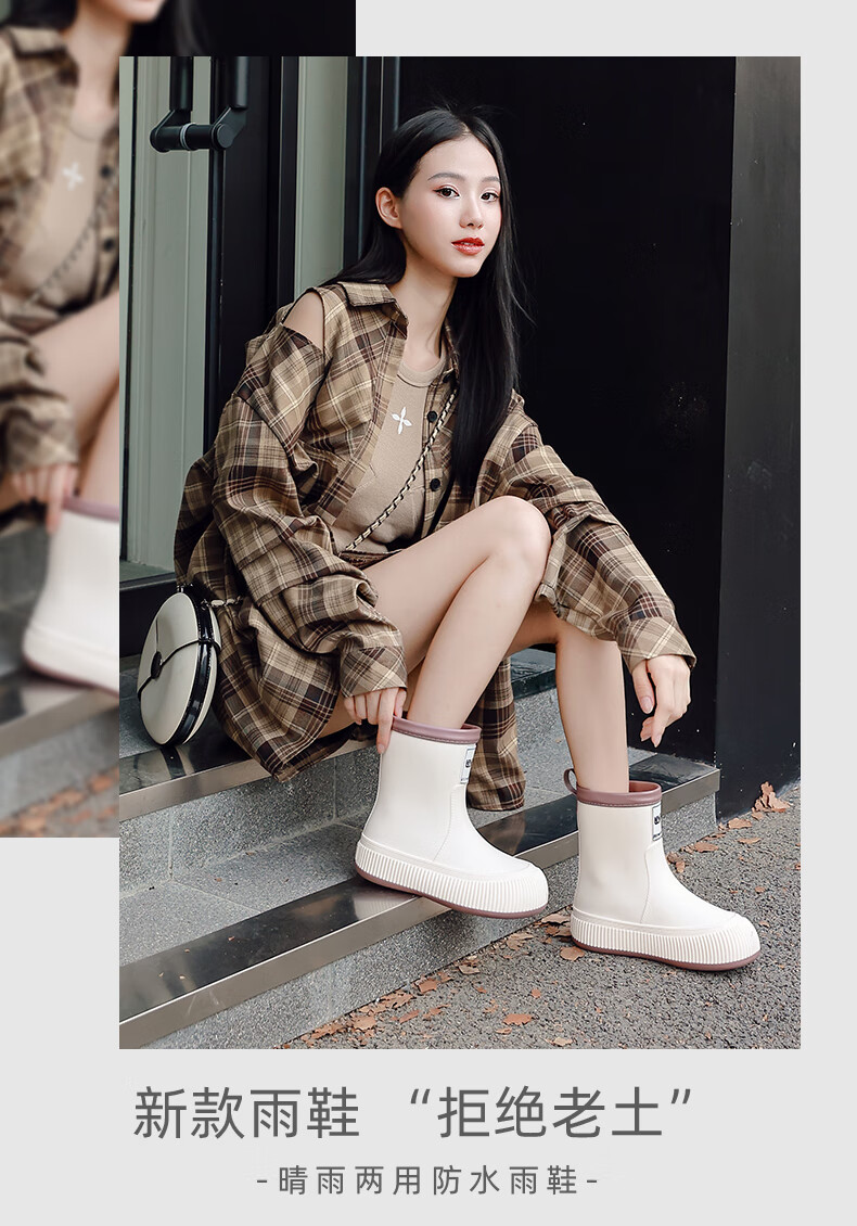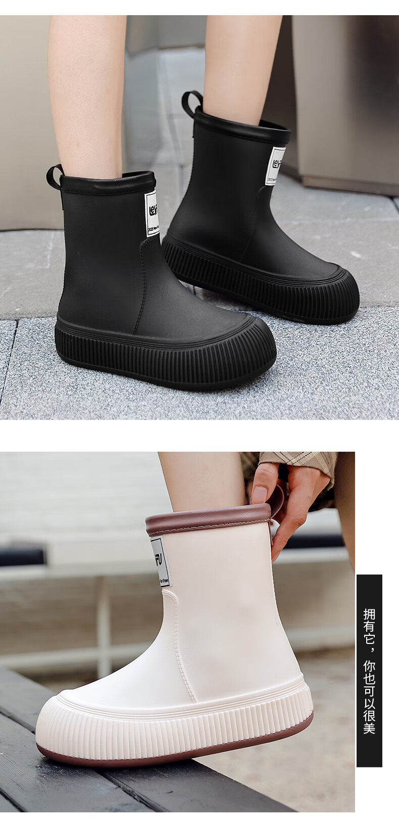 DG&DU雨鞋女款时尚外穿中筒防水鞋防滑网红雨靴加绒胶鞋新款水鞋厨房鞋 防水口款-白色(偏小一码) 38/39