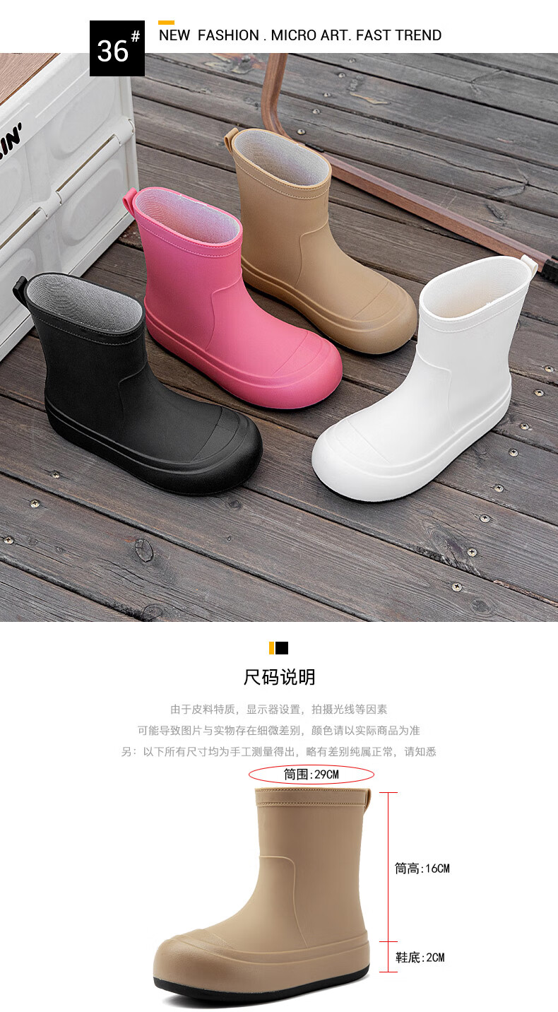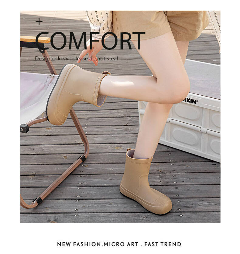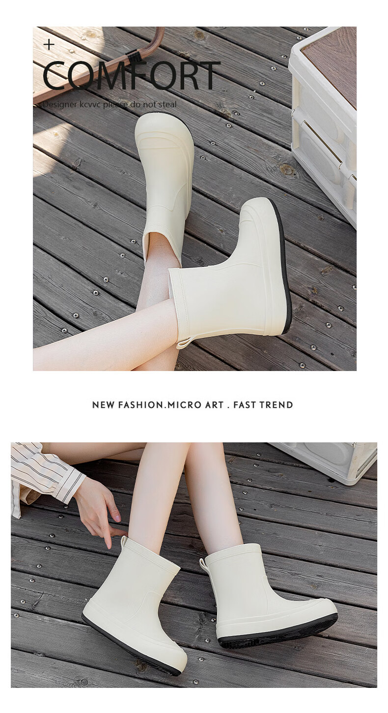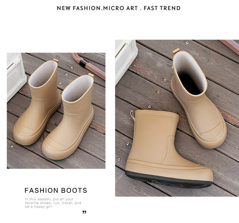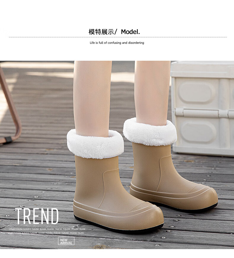 Xili Internet celebrity fashion rain boots for women new mid-tube waterproof shoes plus velvet non-slip soft sole rain boots for adults lightweight rubber shoes Khaki 38 37-38 size