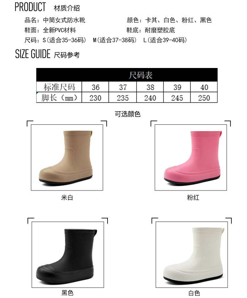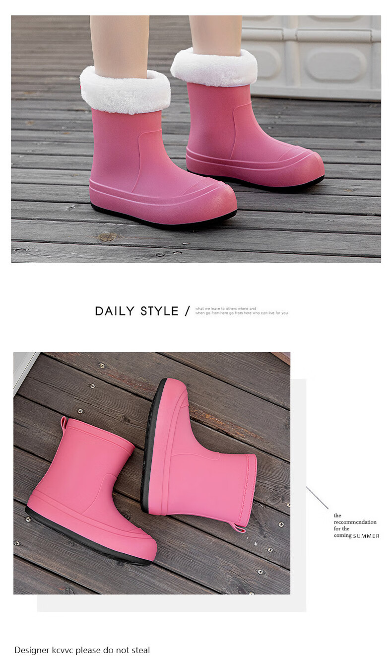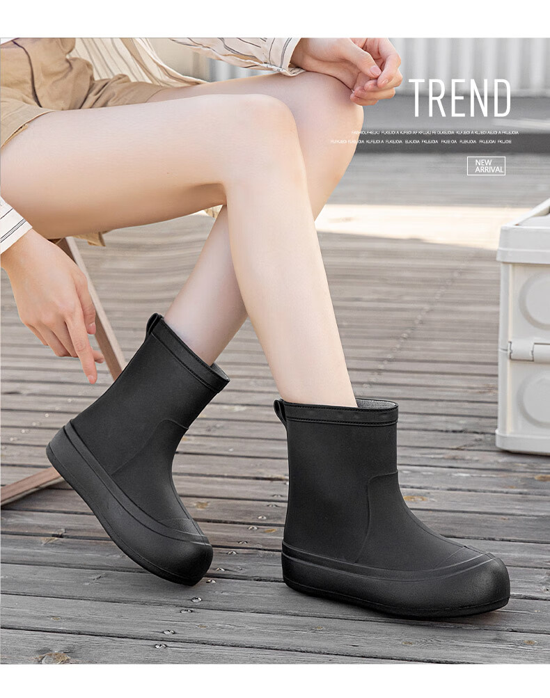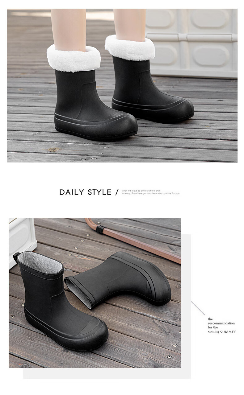 Xili Internet celebrity fashion rain boots for women new mid-tube waterproof shoes plus velvet non-slip soft sole rain boots for adults lightweight rubber shoes Khaki 38 37-38 size