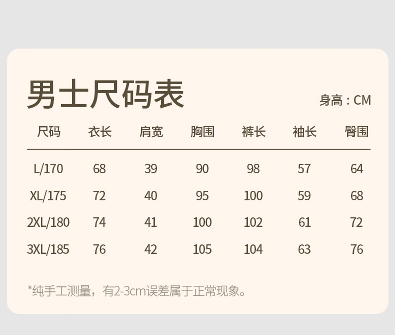 China (cm) 165 / 88-90 170 / 96-98 175 / 108-110 180 / 118-122 185 / 126-130