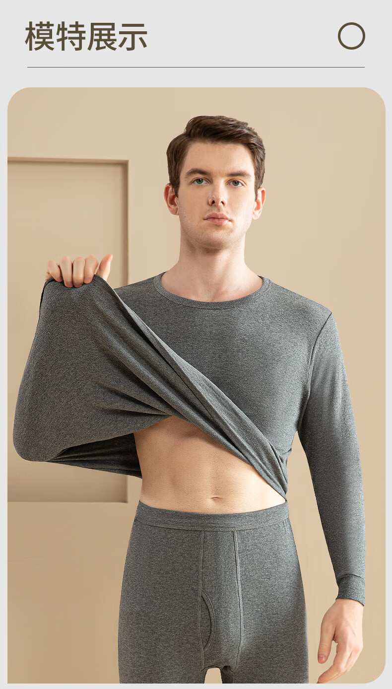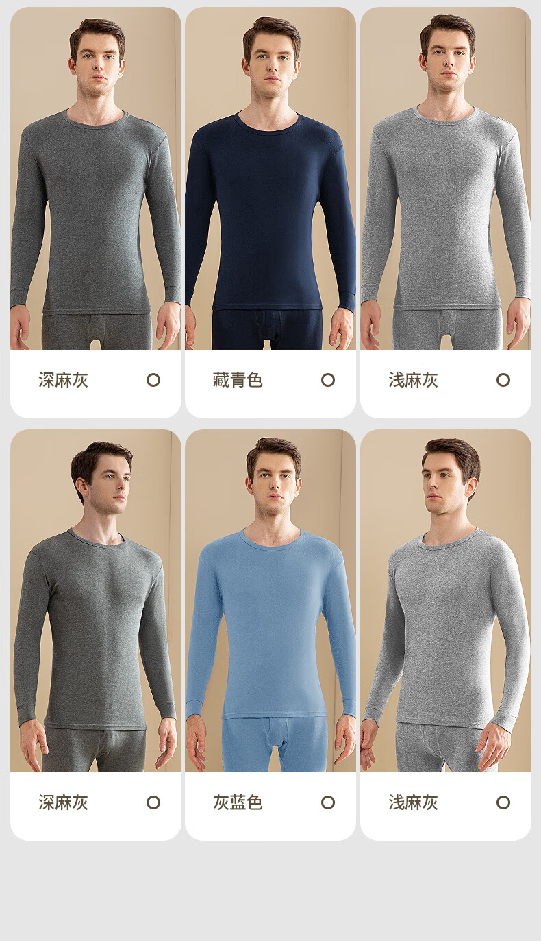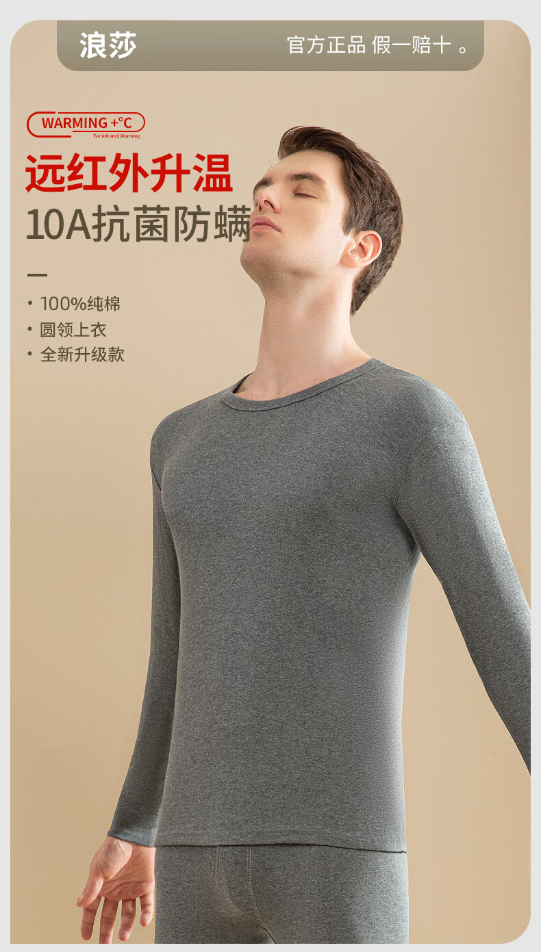 浪莎男士秋衣上衣单件内衣高端纯棉毛衫中老年人薄款保暖全棉线衣打底 【深灰+藏青】·2件上衣 XL /175