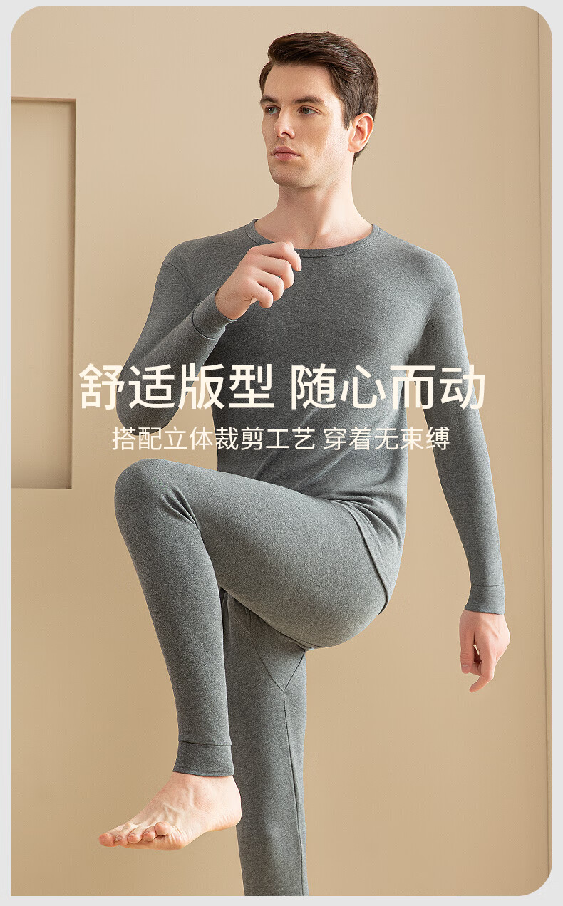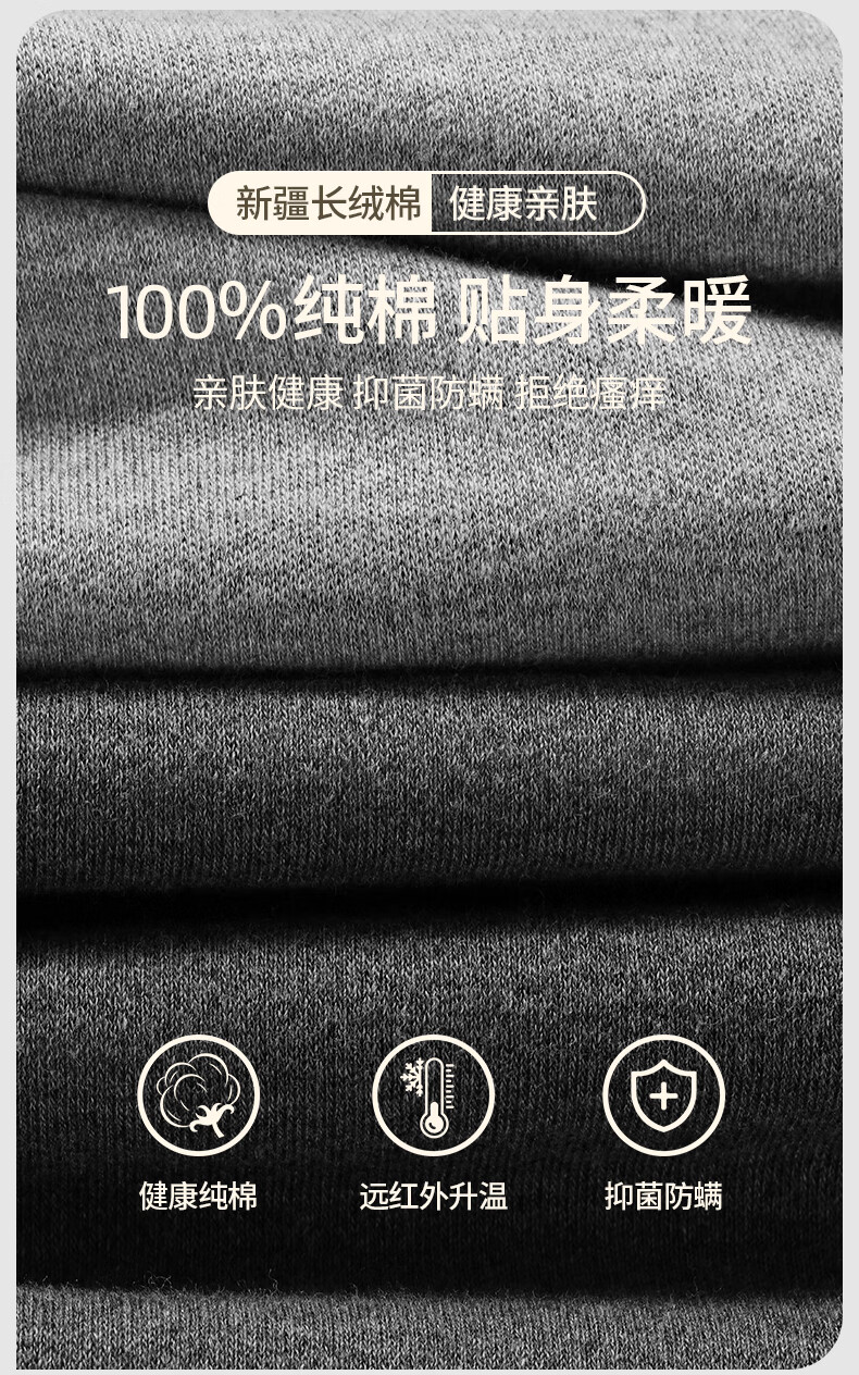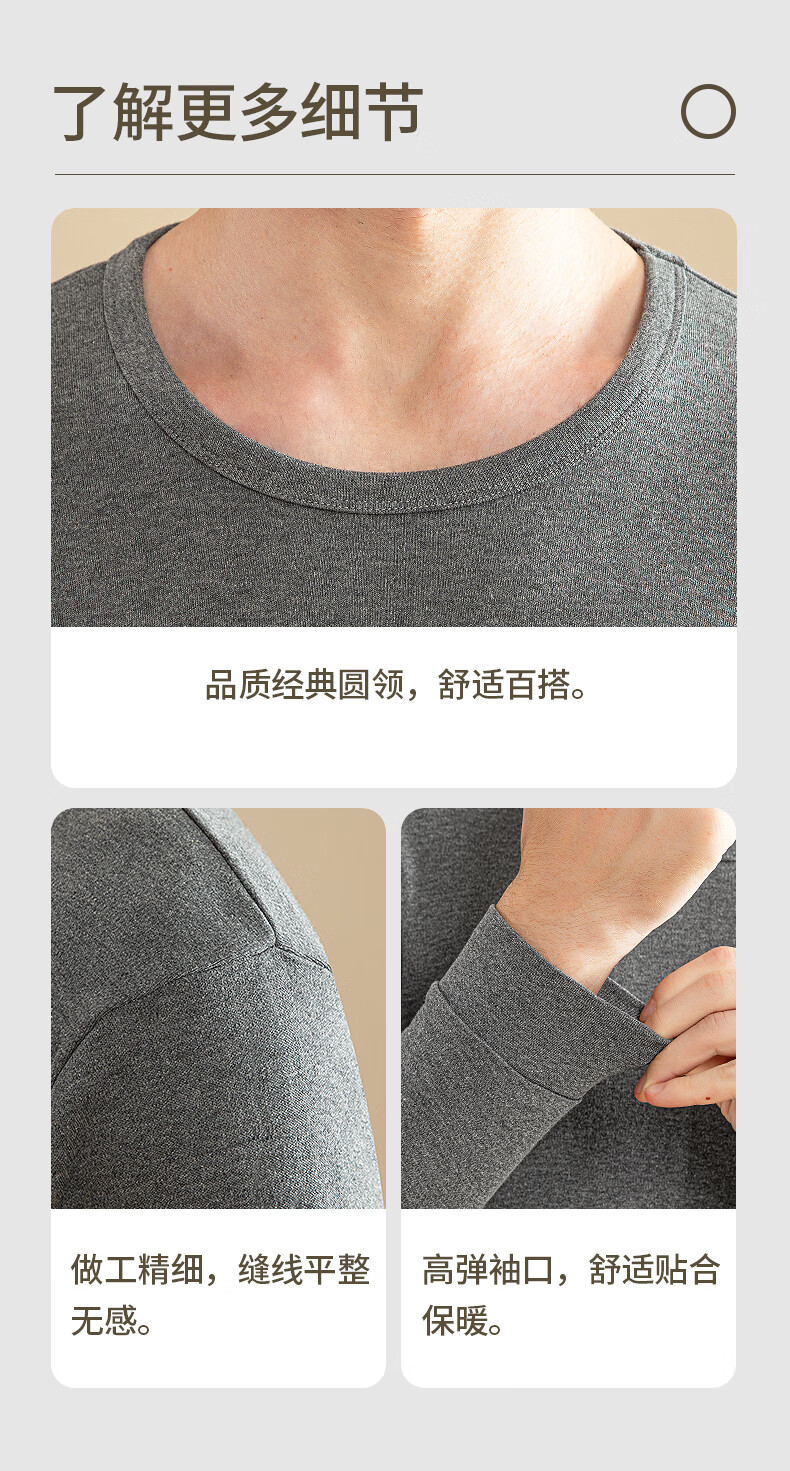 浪莎男士秋衣上衣单件内衣高端纯棉毛衫中老年人薄款保暖全棉线衣打底 【深灰+藏青】·2件上衣 XL /175
