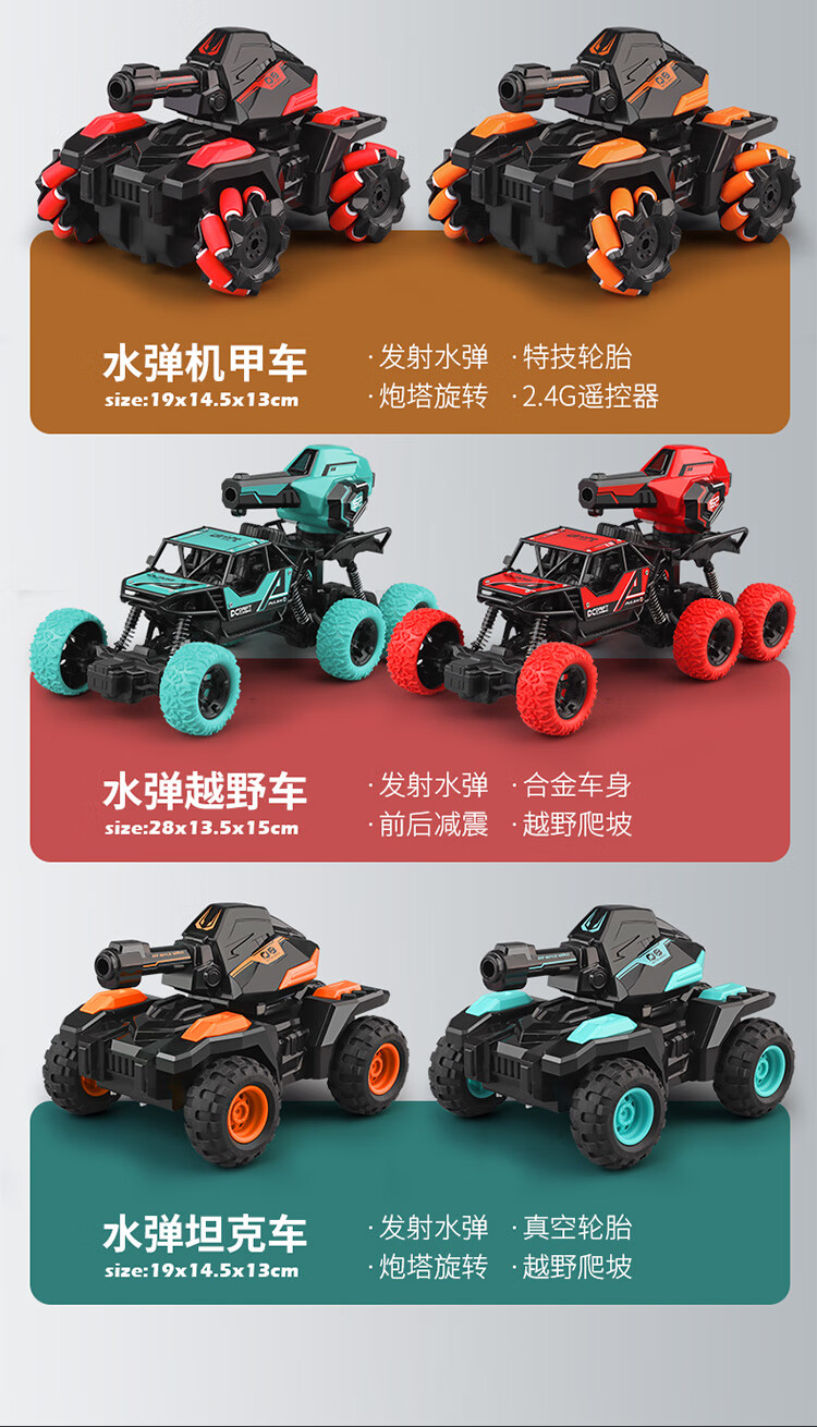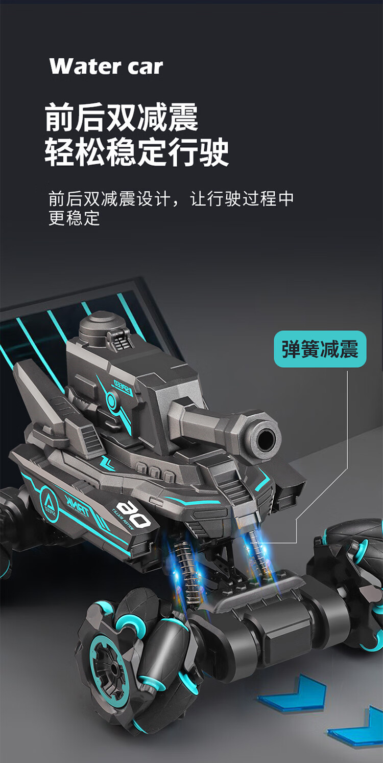 Chuangjingyi chooses water bomb car Xingpo children's remote control car can launch water bombs tank crawler battle toy racing boy hand black blue A style handle remote control / can launch water bombs standard dual power exquisite gift box / 80,000 water bombs /