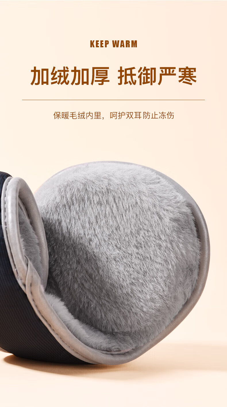 花花公子(PLAYBOY)保暖耳罩男士护耳冬季加绒加厚女耳套骑车防寒耳包防冻耳捂骑行 黑色
