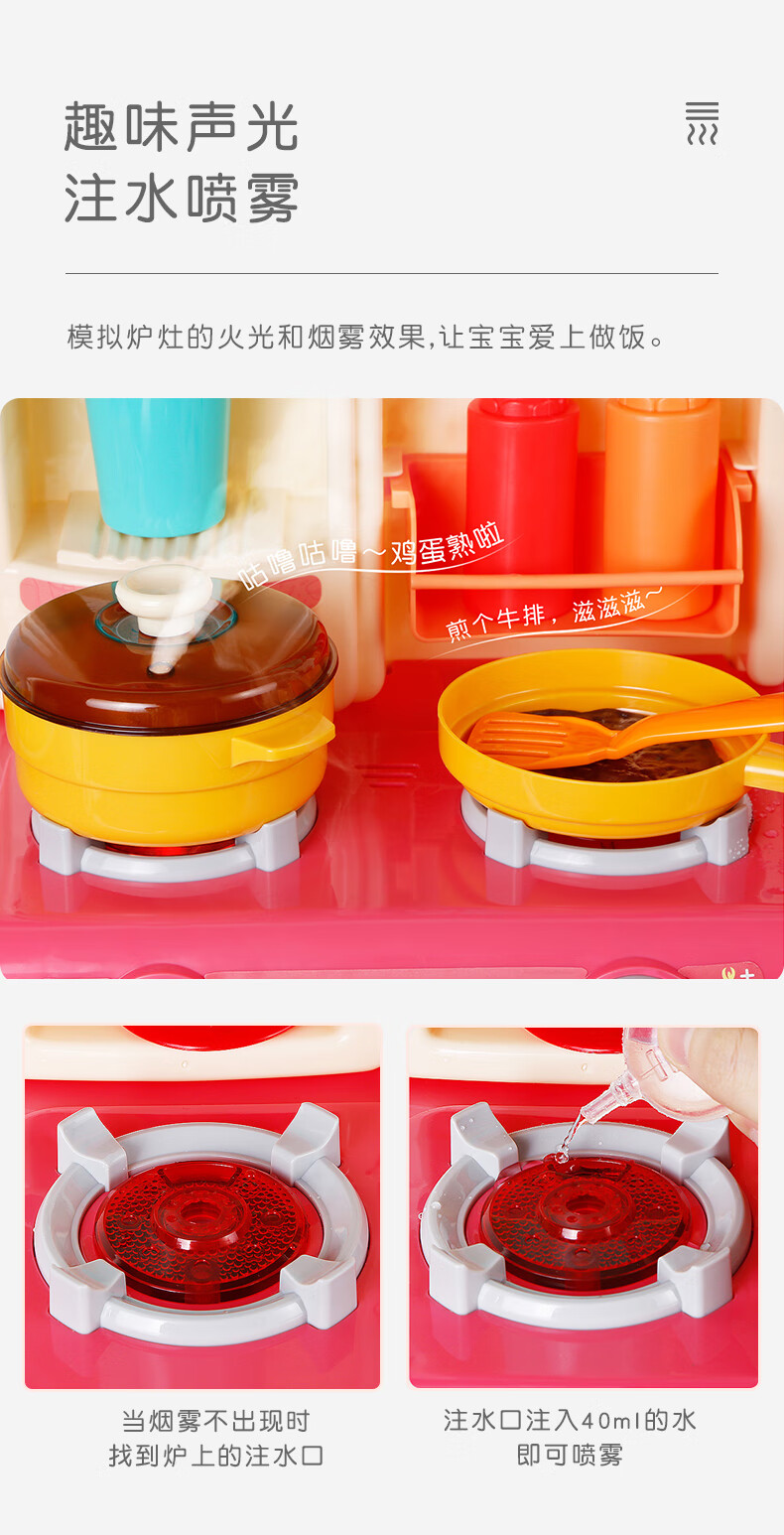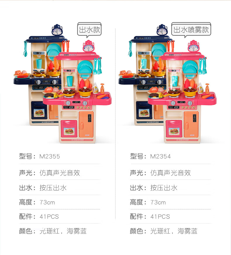 Knowledge Garden Children's Play House Simulation Spray Kitchen Cooking Toy Set Toy DIY Bracelet Ring Toy Set Water + Spray Type-41 Piece Set-Blue