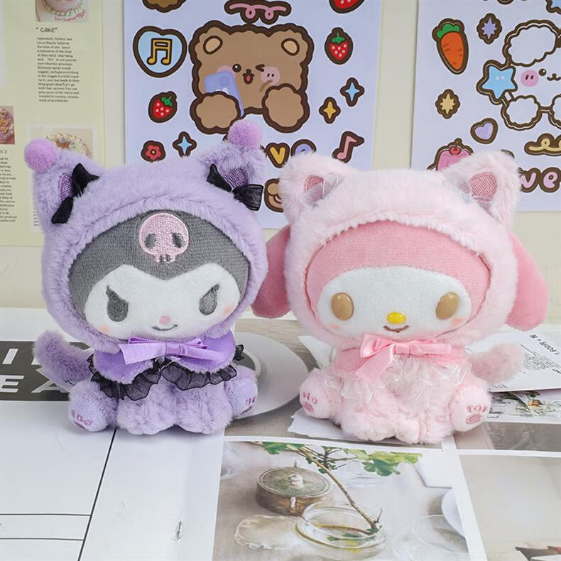 SunToMoon Cute Kuromi Cat Plush Doll Keychain Melody KT Cute Pet Doll School Bag Pendant Creative Gift Melody Kitten