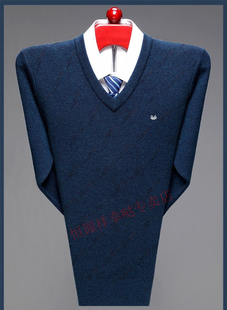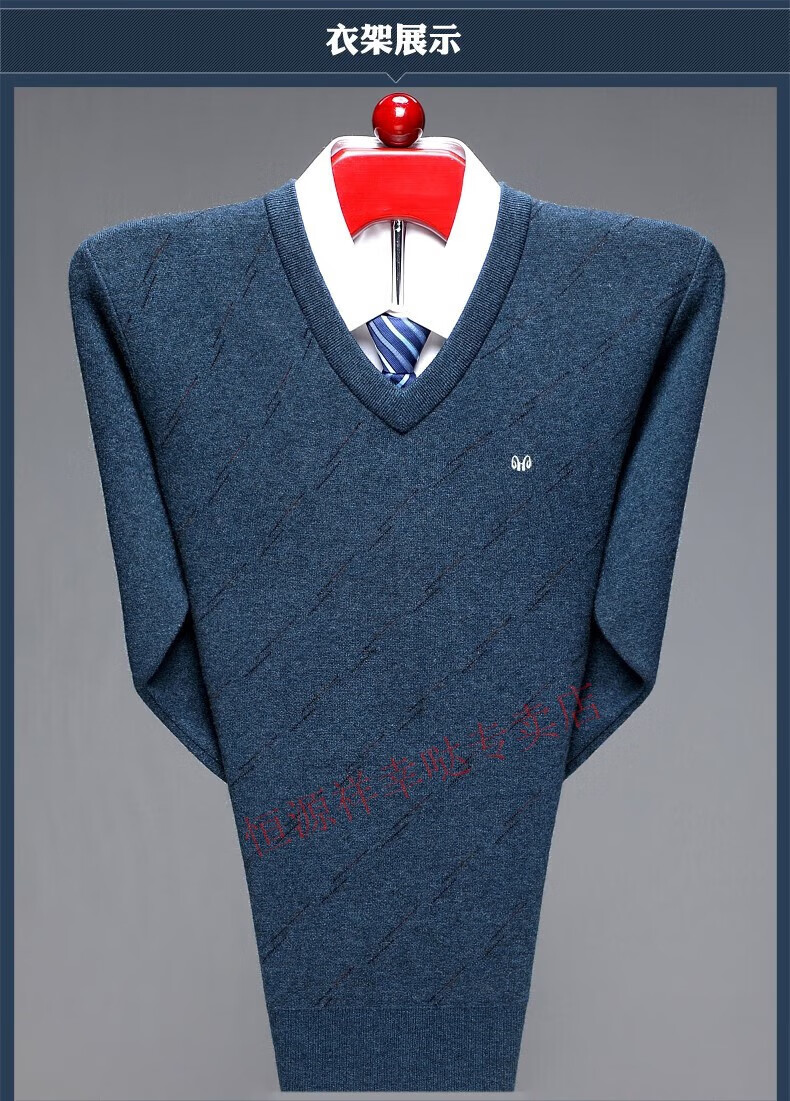 恒源祥羊毛衫男士V领加厚中老年鸡心领羊.绒衫爸爸装宽松打底针织毛衣男 6625浅中灰 175/92A建议140-160斤