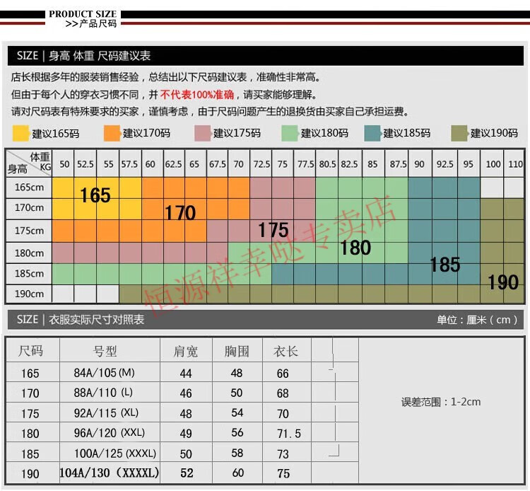 China (cm) 160-165/84-86 165-170 / 88-90 167-172 / 92-96 168-173 / 98-102 170-176 / 106-110