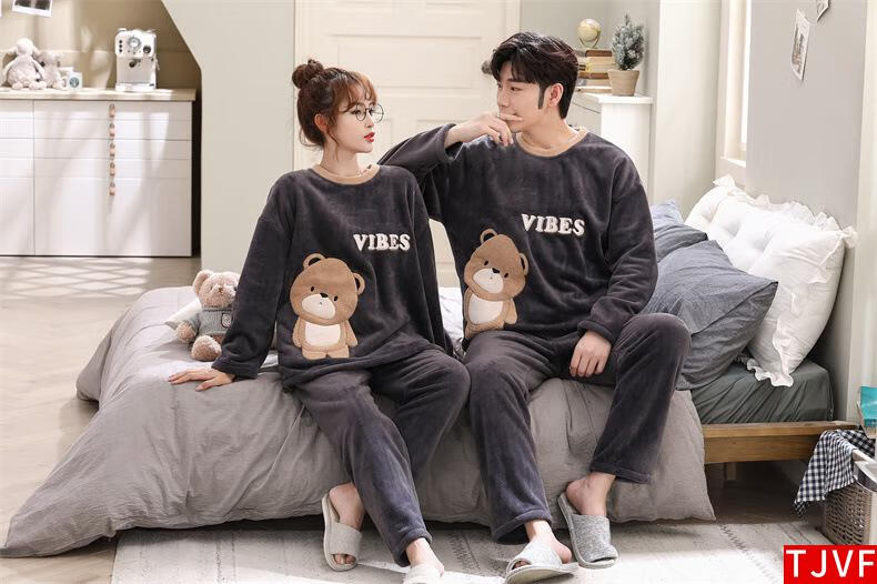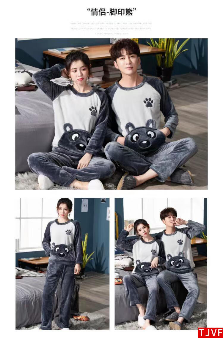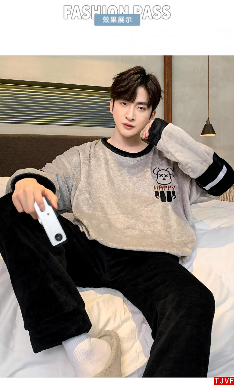 TJVF Pijamas para Hombre Otoño e Invierno Franela Fina Jersey de Dibujos Animados para Estudiantes Conjunto de Ropa para el hogar de Lana Coral de Manga Larga 3883-Bnave Bear 2XL Hombre